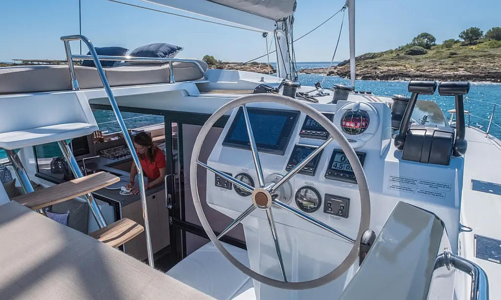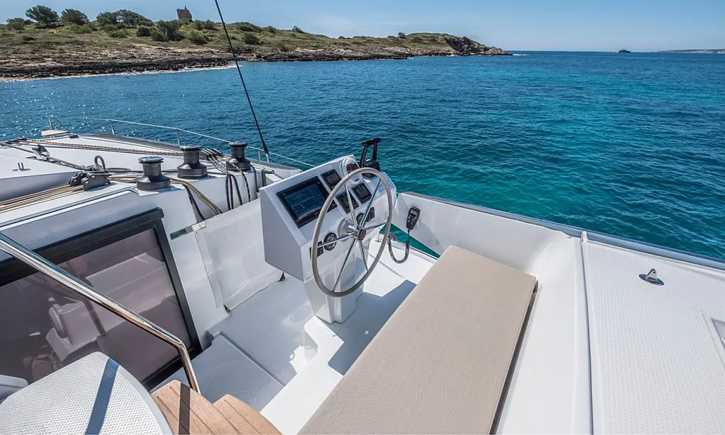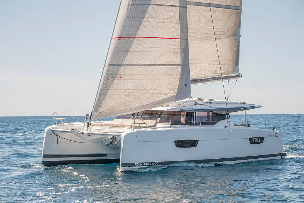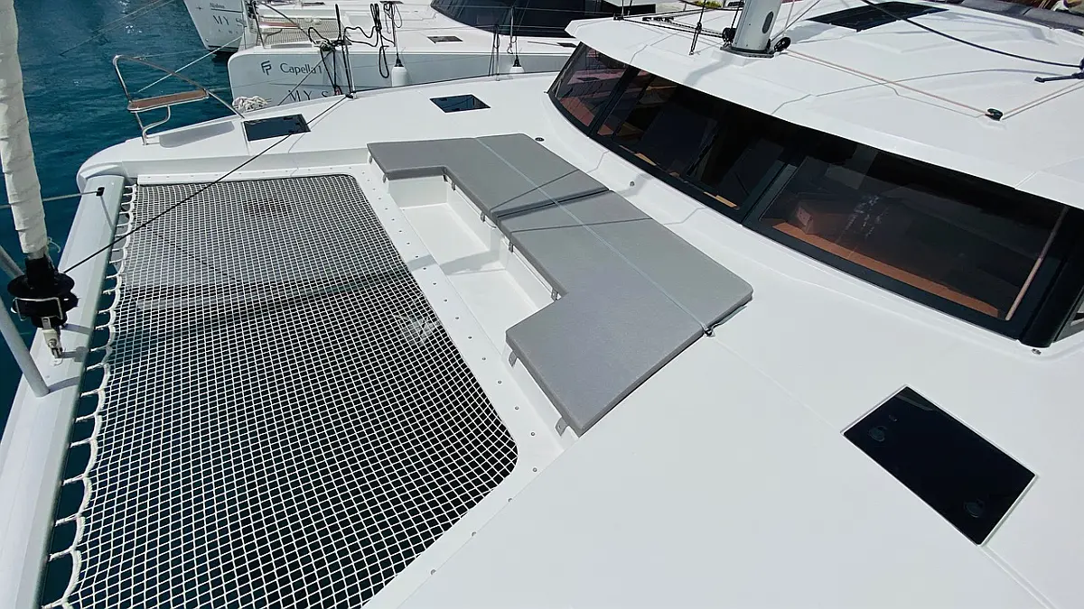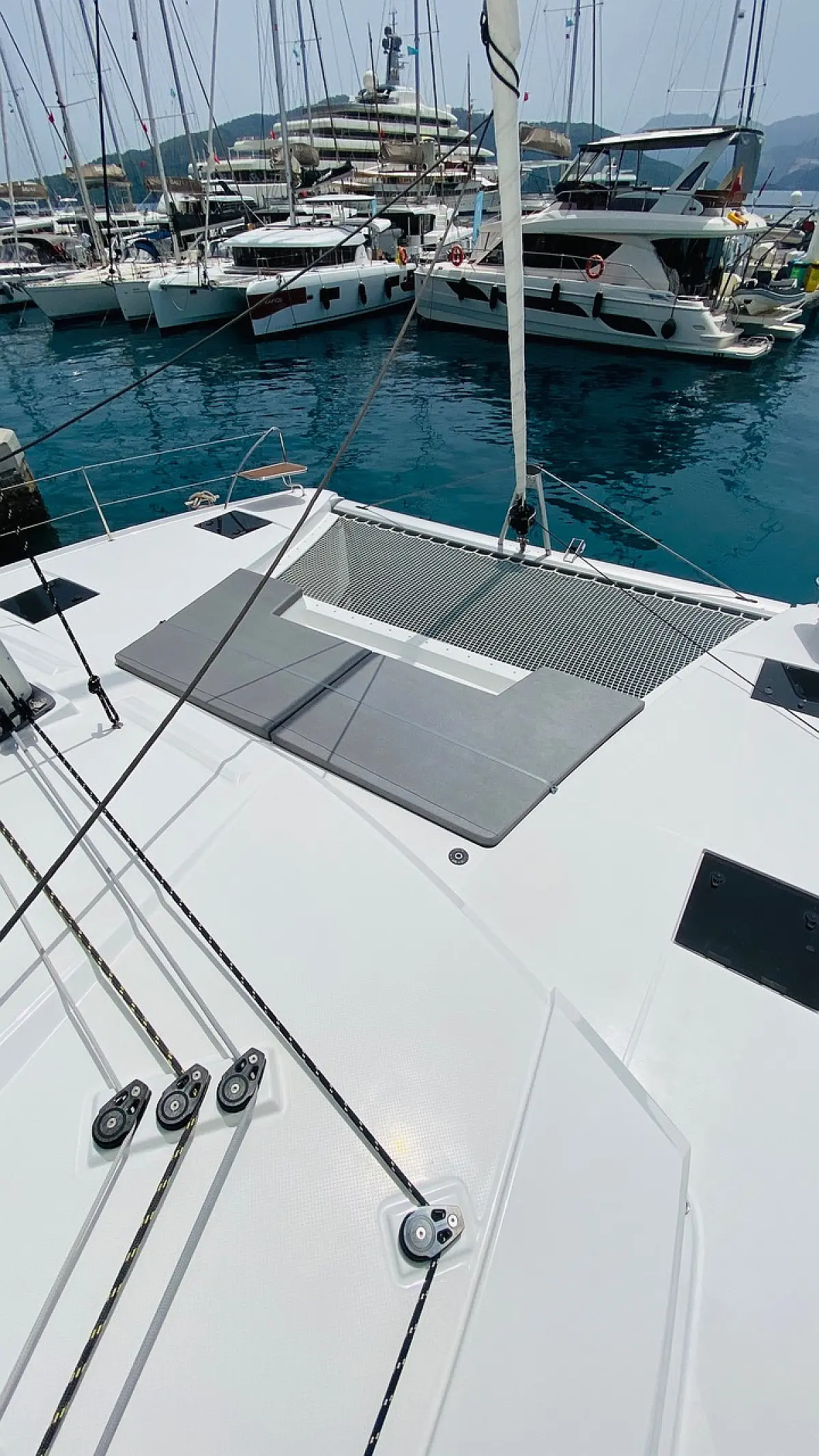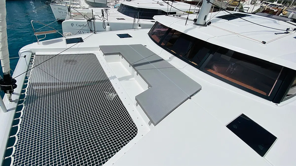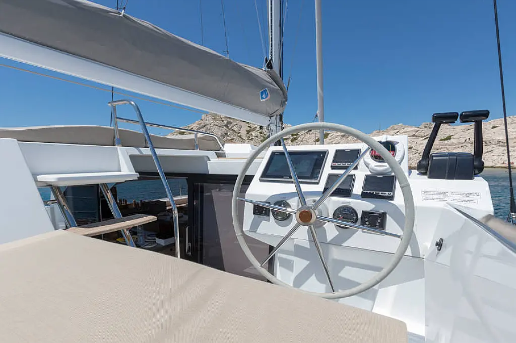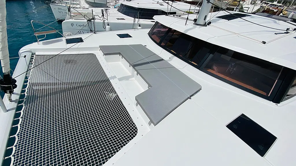 Solar-Panele, Klimaanlage, Inverter, Kühlschrank, Beiboot, Cockpit-Kissen, Außenbordmotor, Elektrische Winch (Segel), Generator, Wassermacher