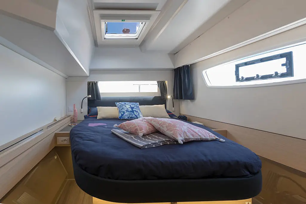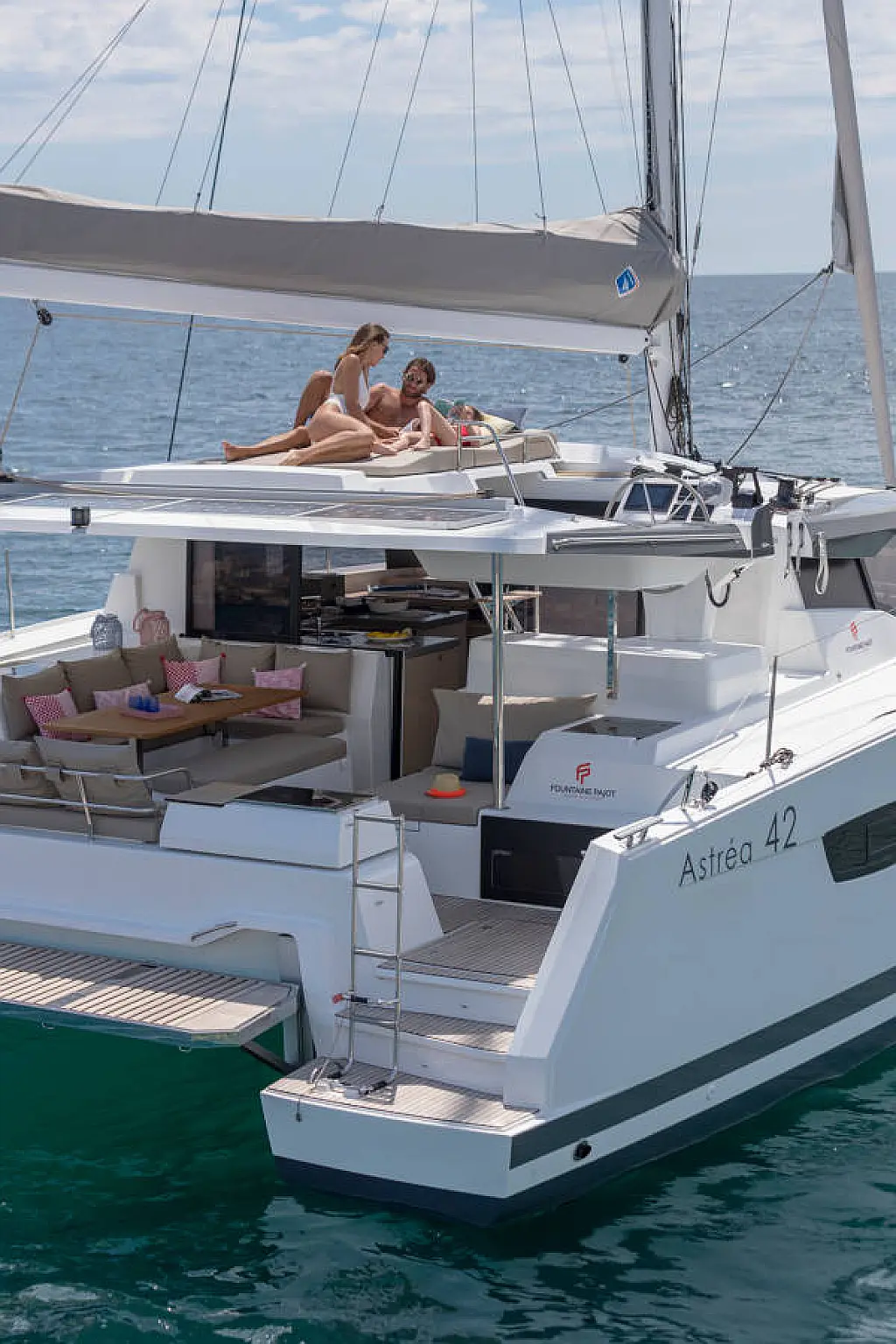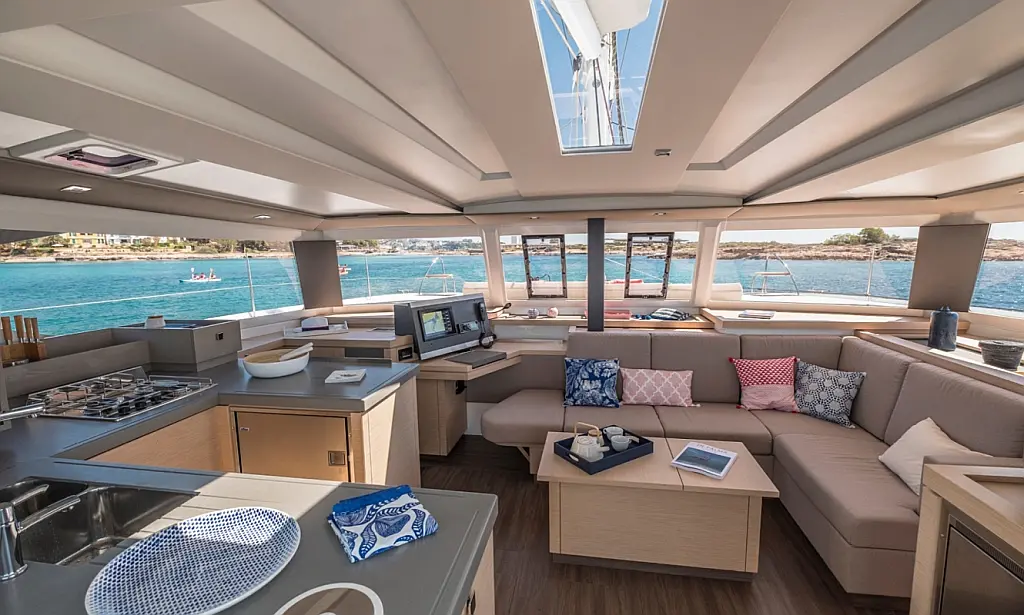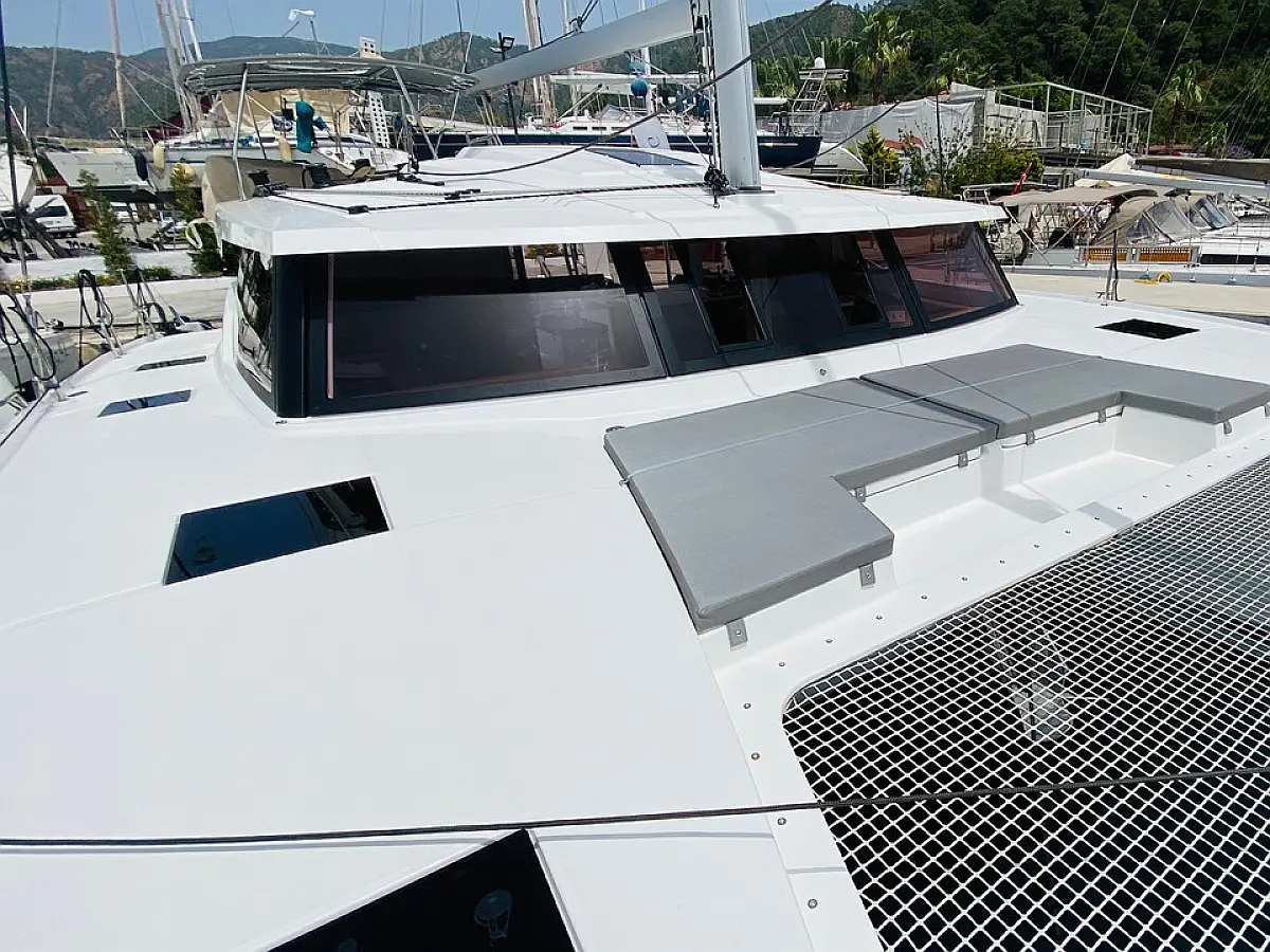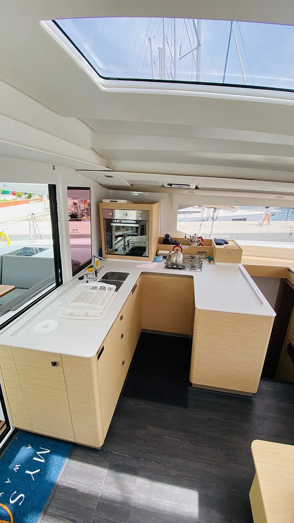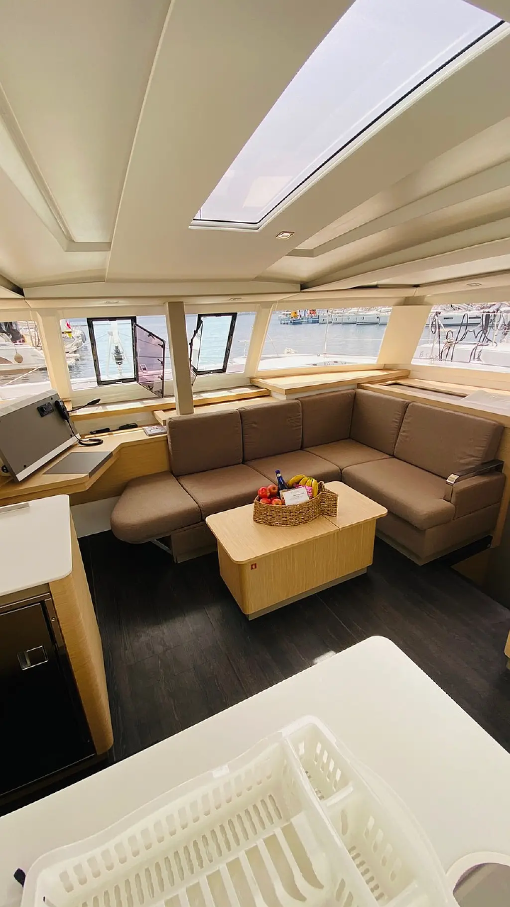 Solar-Panele, Klimaanlage, Inverter, Kühlschrank, Beiboot, Cockpit-Kissen, Außenbordmotor, Elektrische Winch (Segel), Generator, Wassermacher