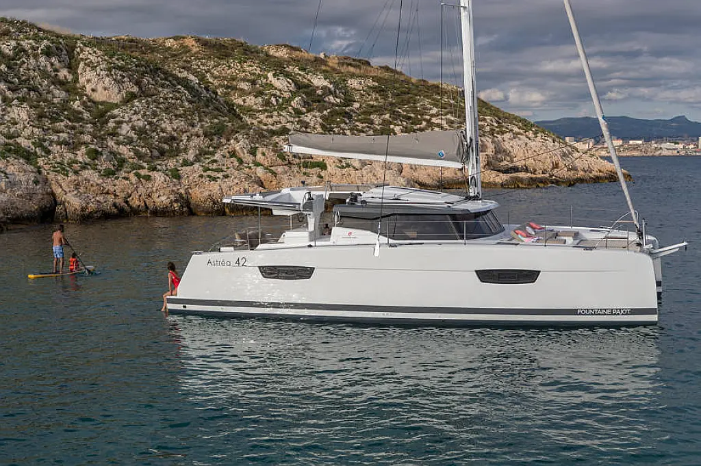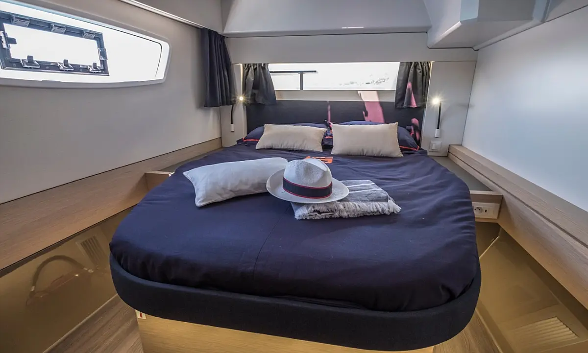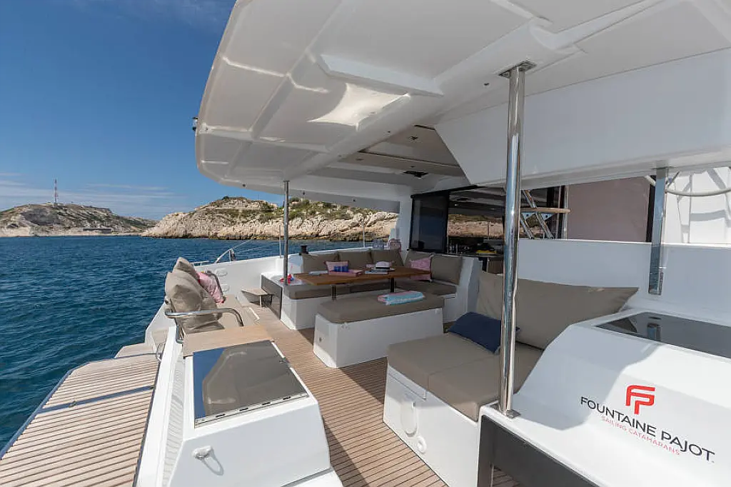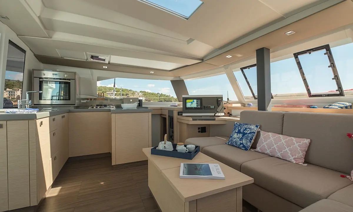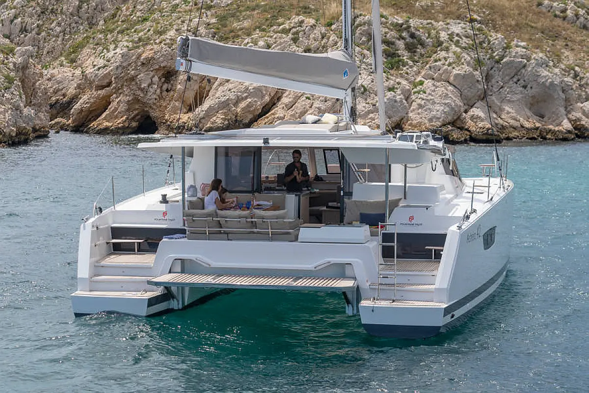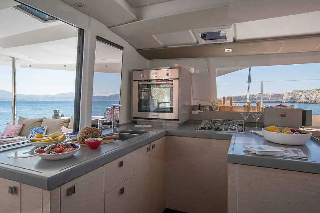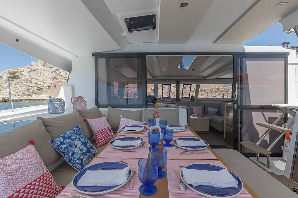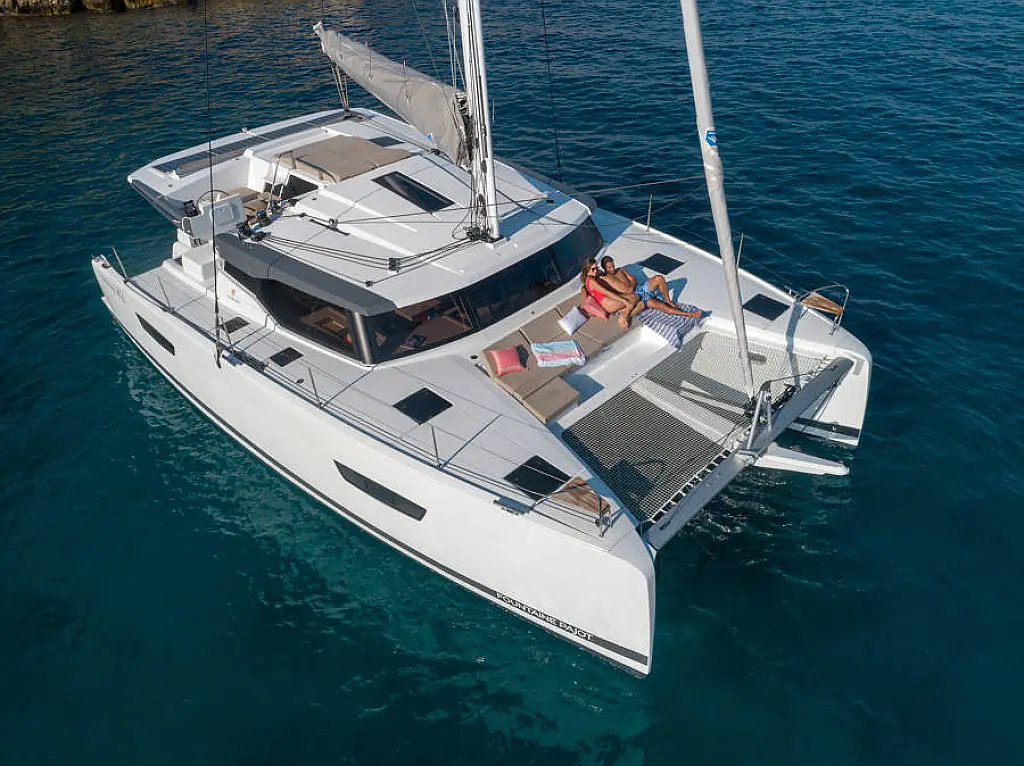 Solar-Panele, Klimaanlage, Inverter, Kühlschrank, Beiboot, Cockpit-Kissen, Außenbordmotor, Elektrische Winch (Segel), Generator, Wassermacher