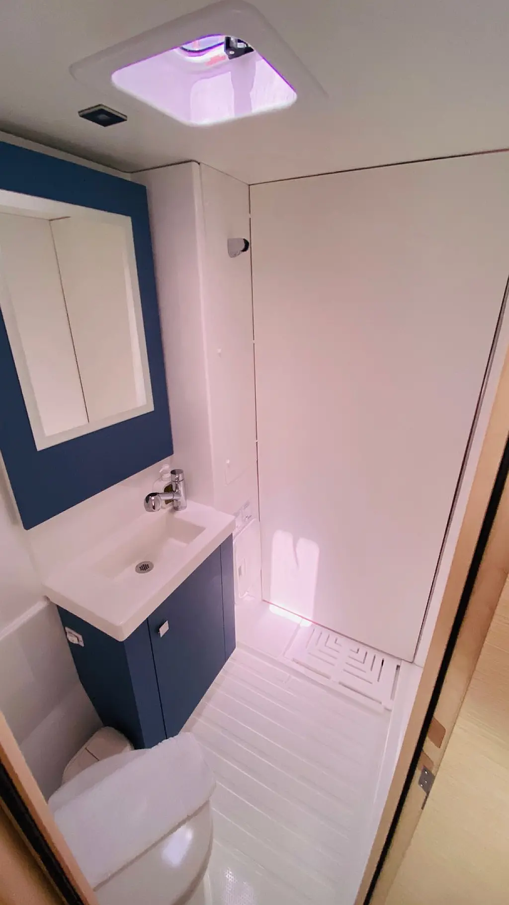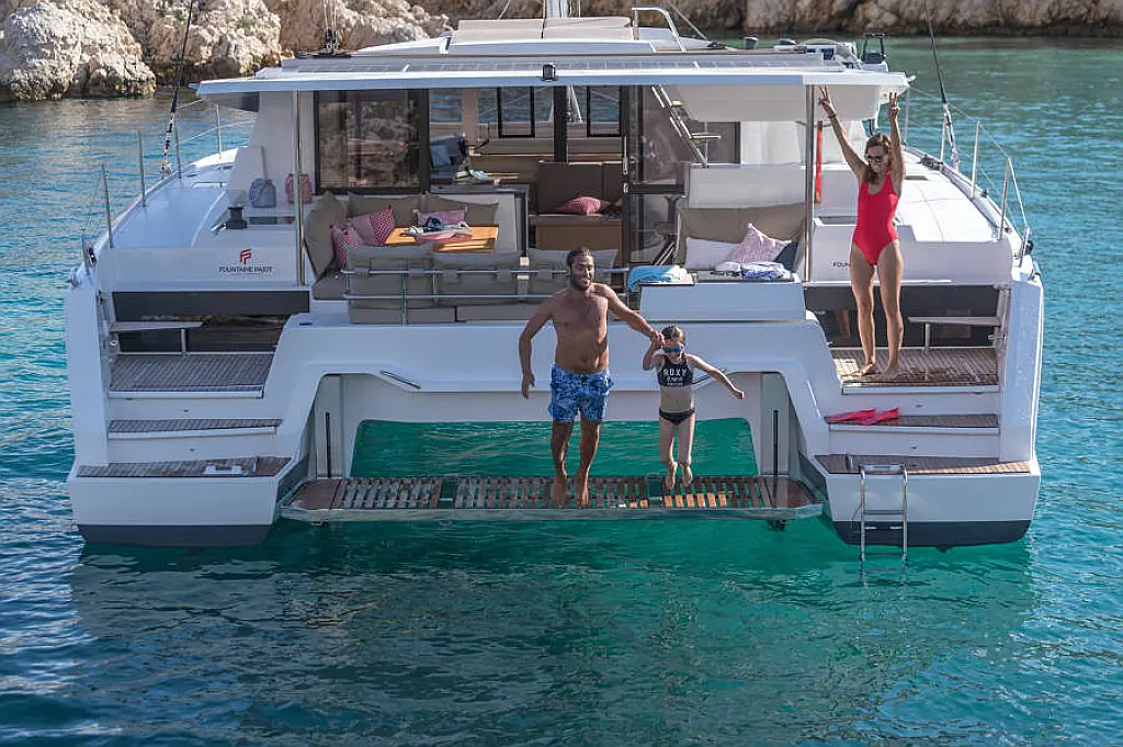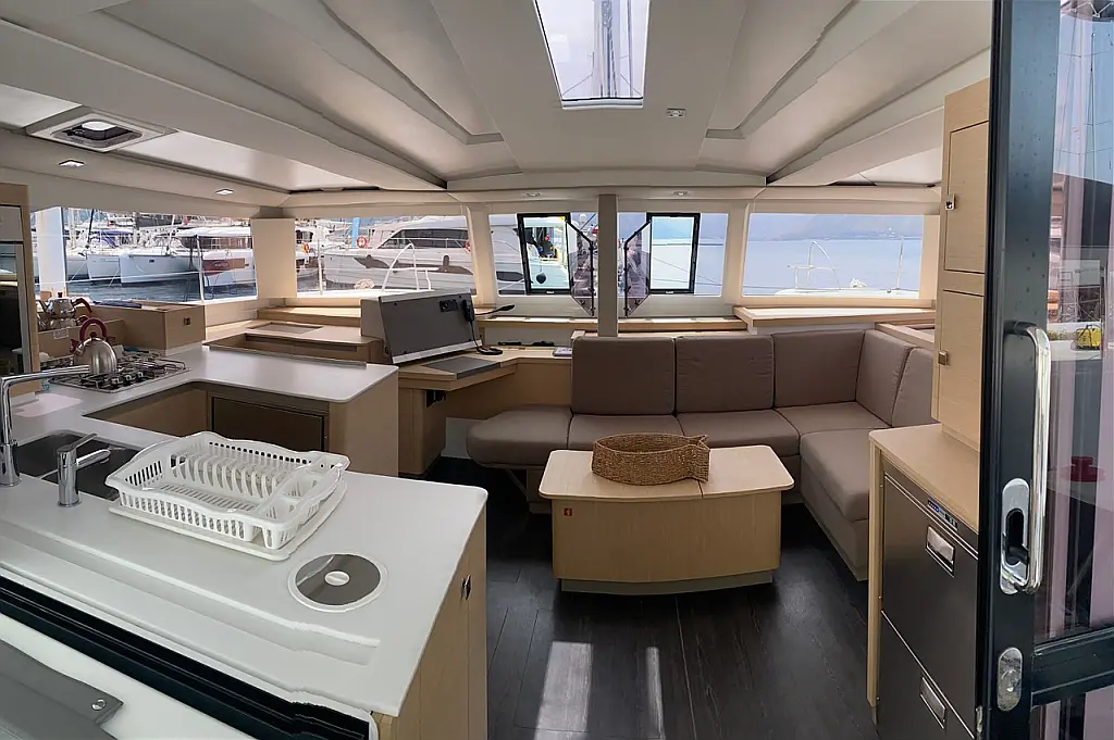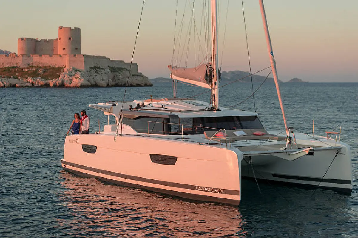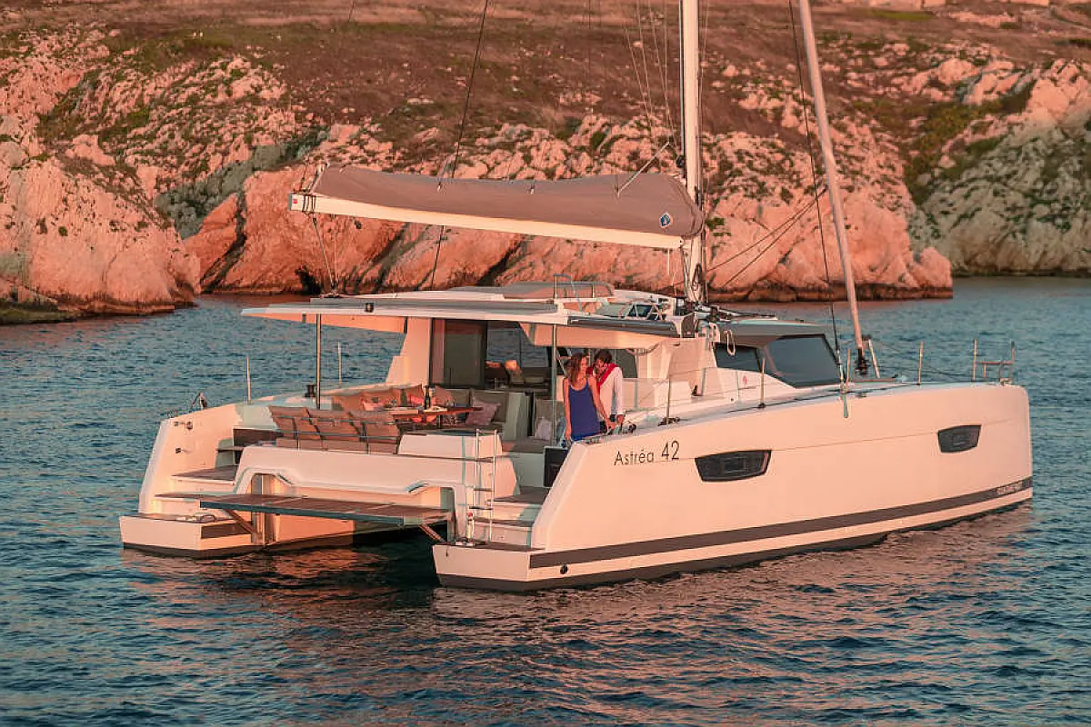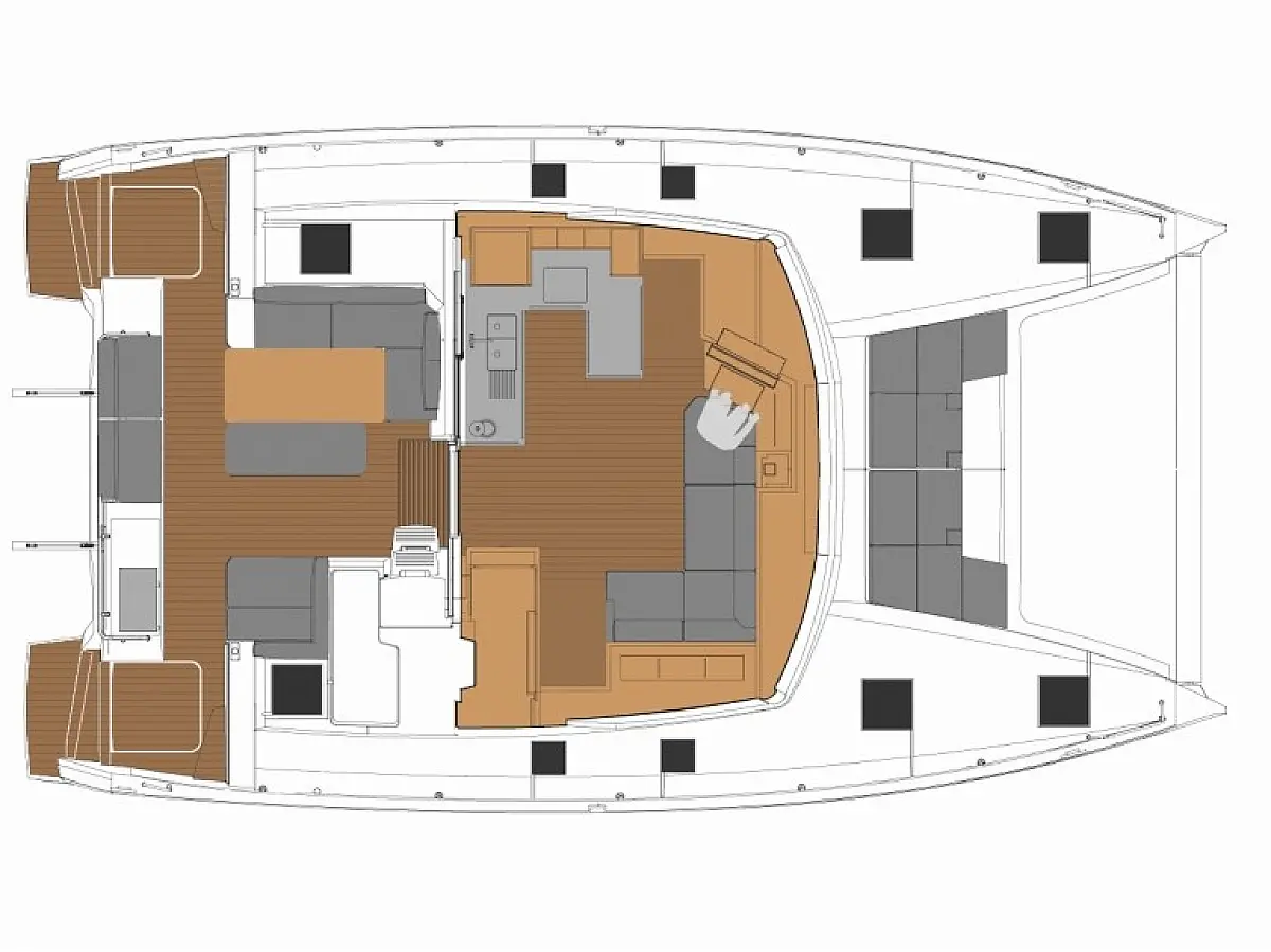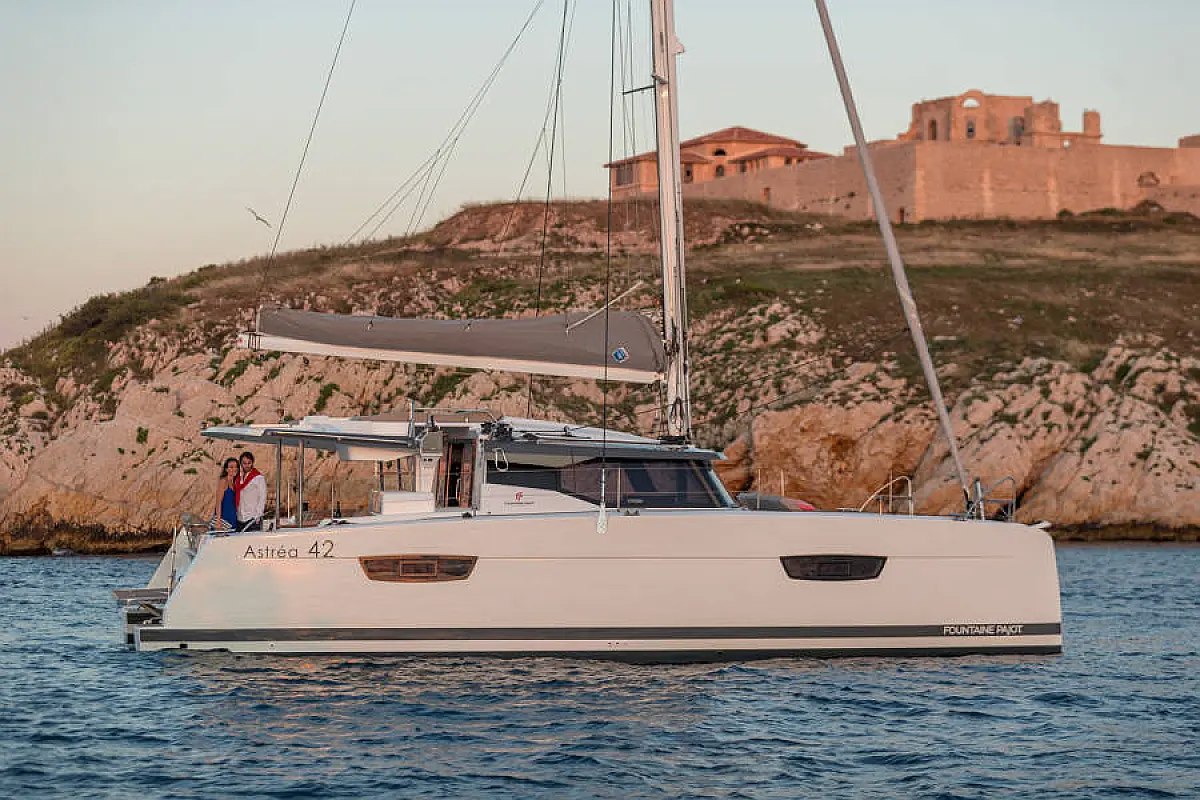 Solar-Panele, Klimaanlage, Inverter, Kühlschrank, Beiboot, Cockpit-Kissen, Außenbordmotor, Elektrische Winch (Segel), Generator, Wassermacher