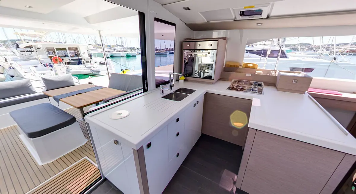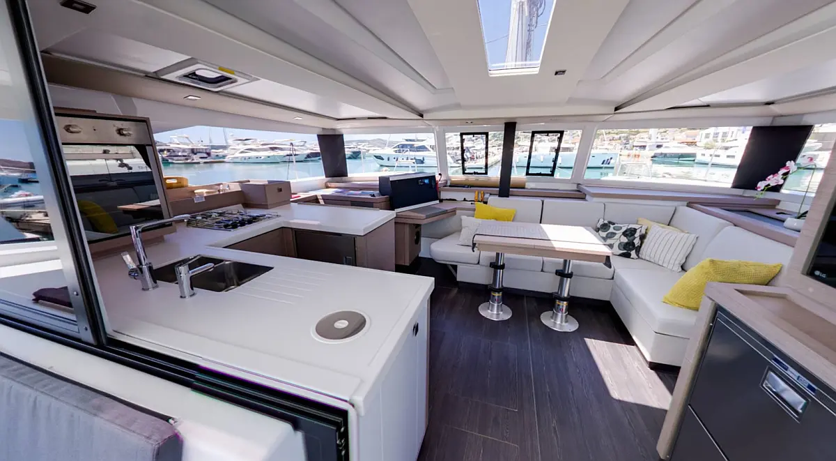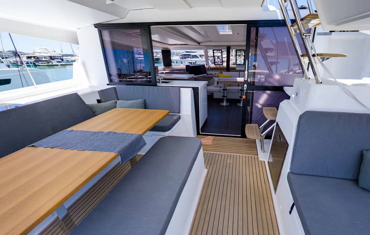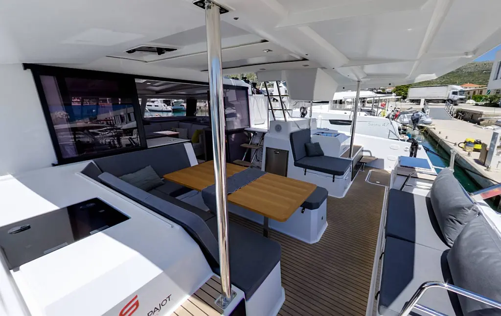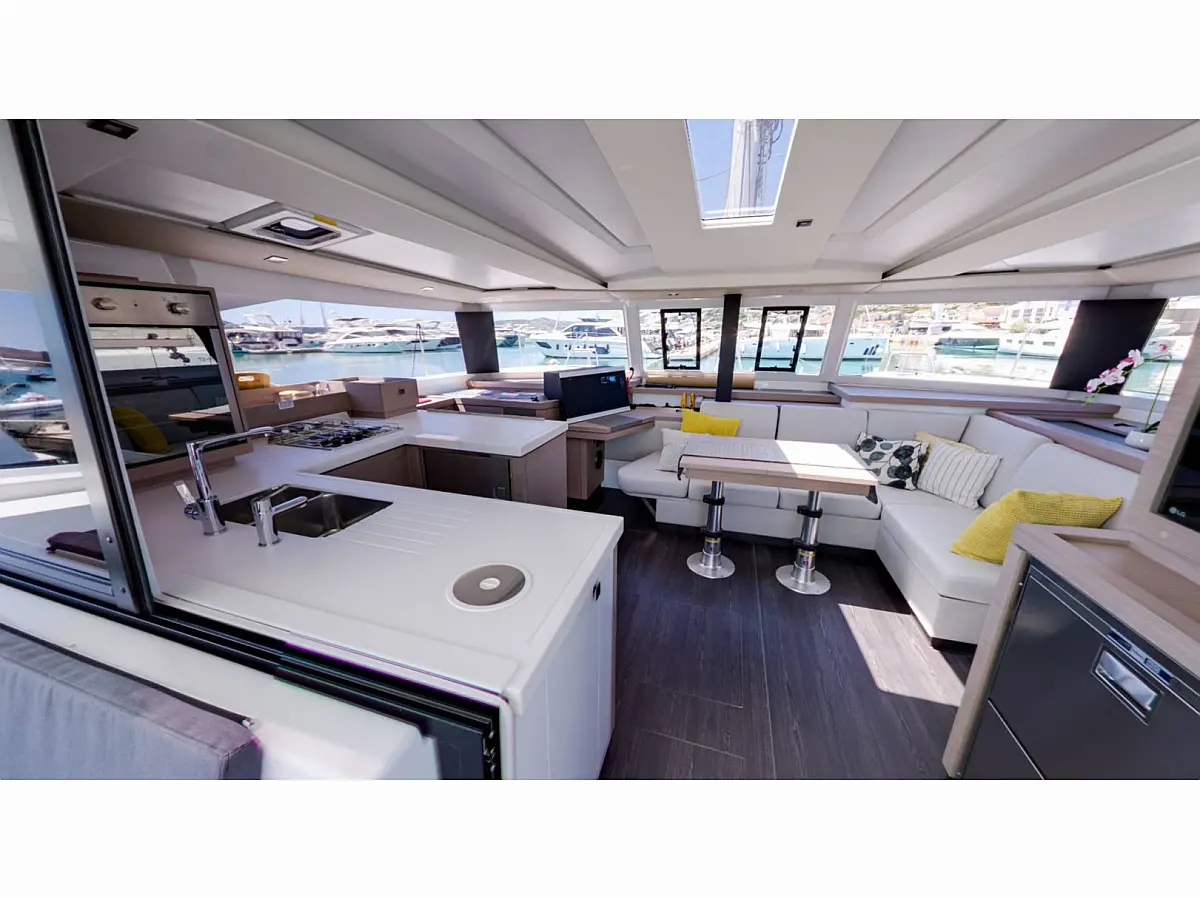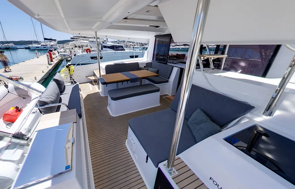 Fäkalientank, Klimaanlage, Heizung, Kaffeemaschine, Beiboot, Inverter, Generator, Bimini, Lautsprecher im Cockpit, Teak Cockpit, Cockpit-Kissen, Kühlschrank, Grill im Cockpit