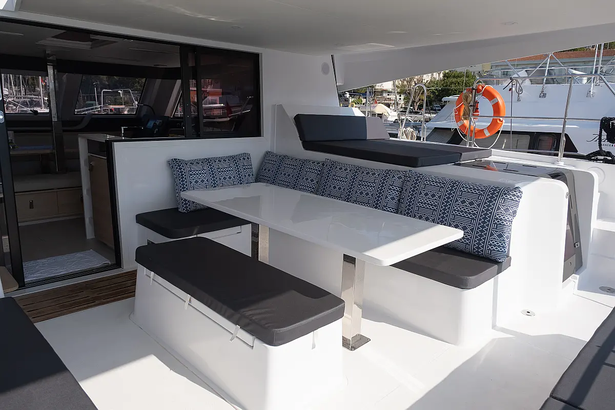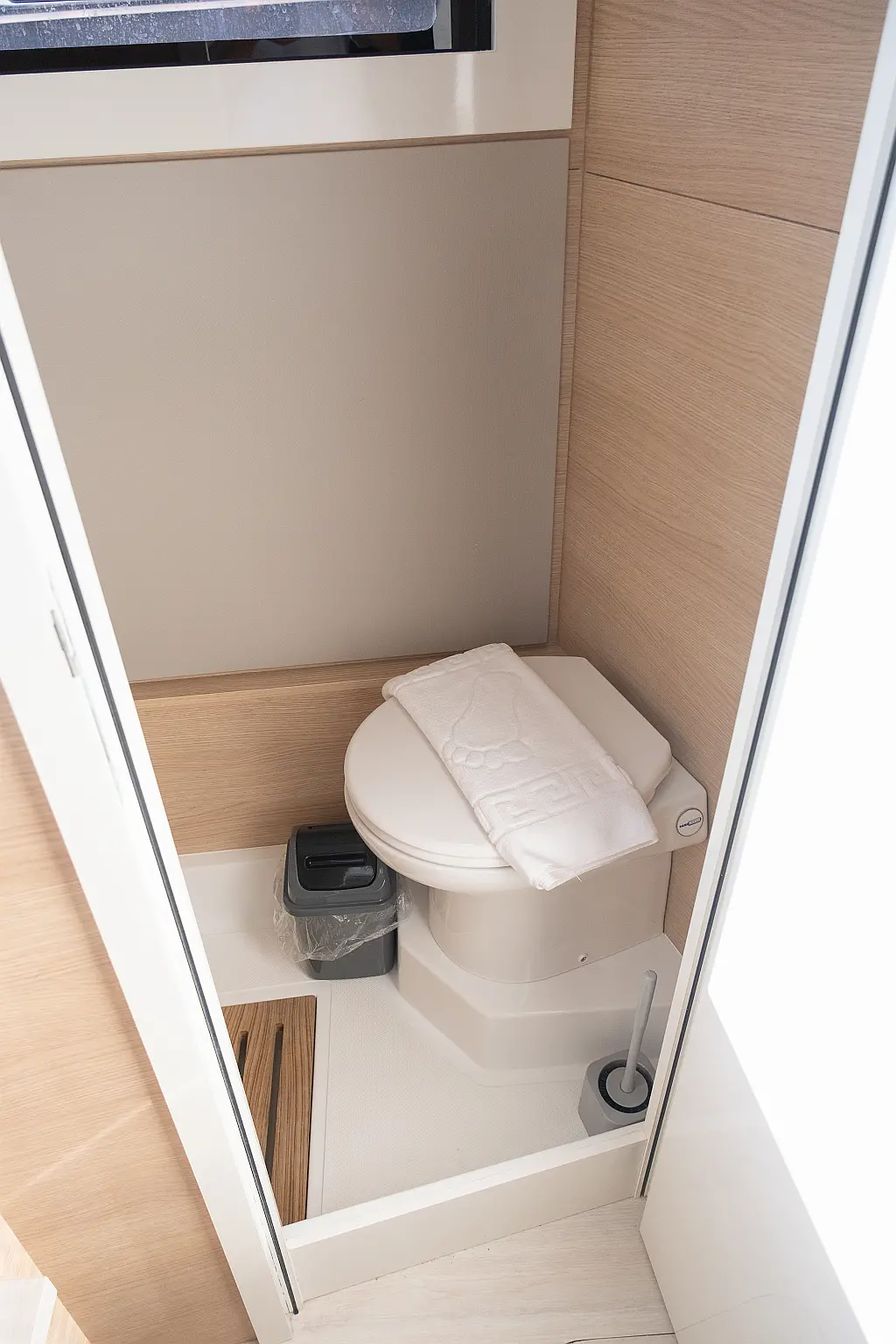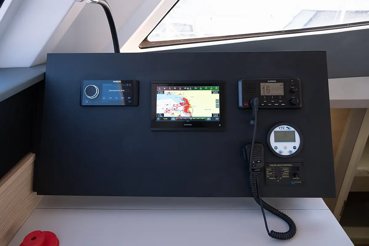 Elektrische Toilette, Kaffeemaschine, Solar-Panele, Generator, Klimaanlage, Wassermacher, Inverter, Kühlschrank, Außenbordmotor, Beiboot, Bimini, Cockpit-Kissen