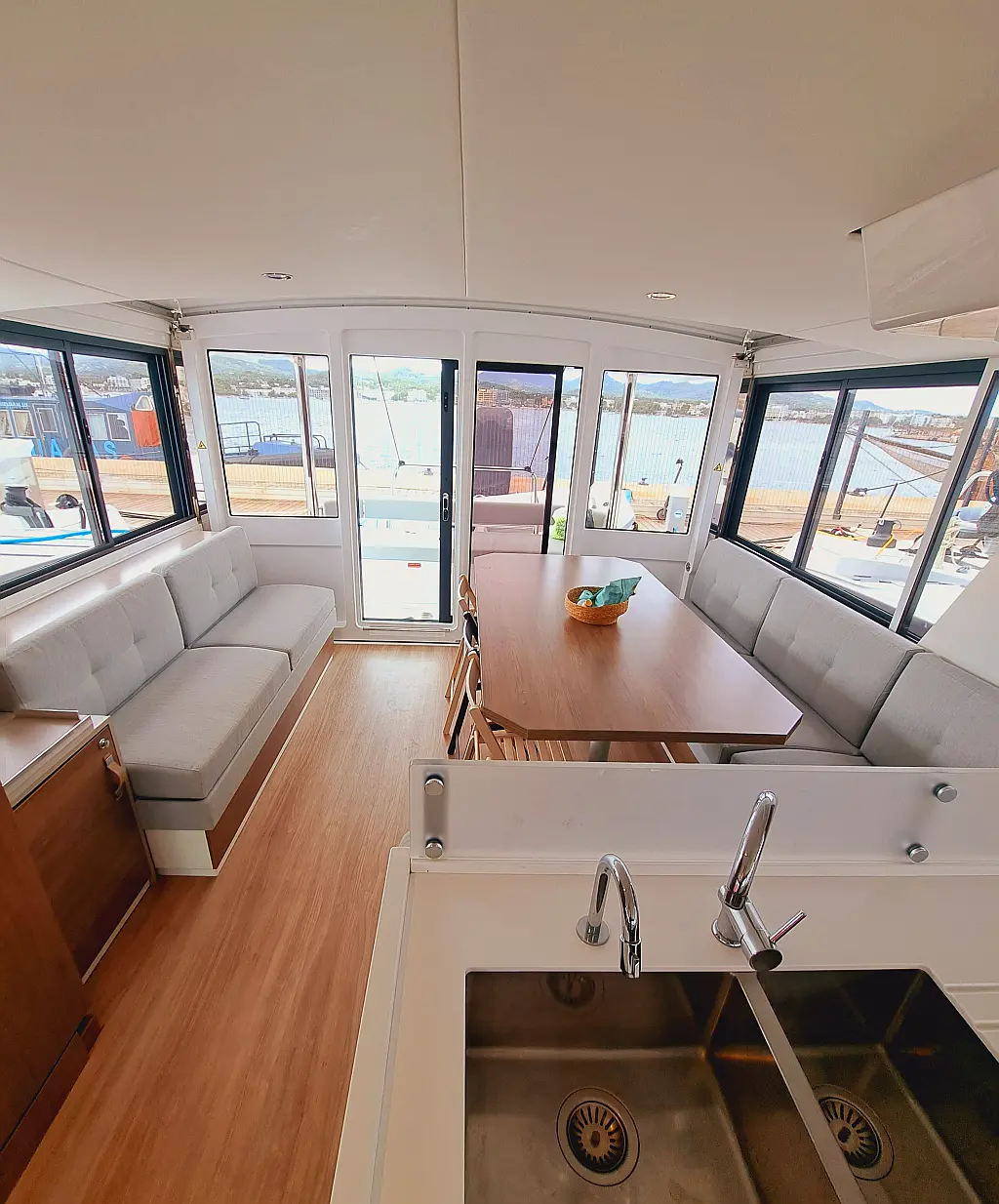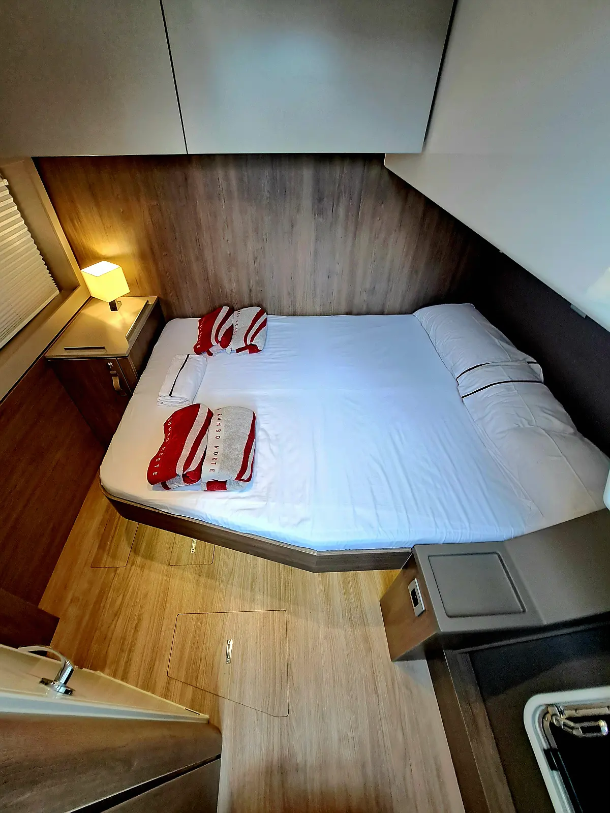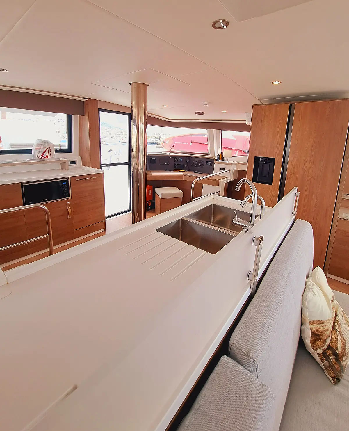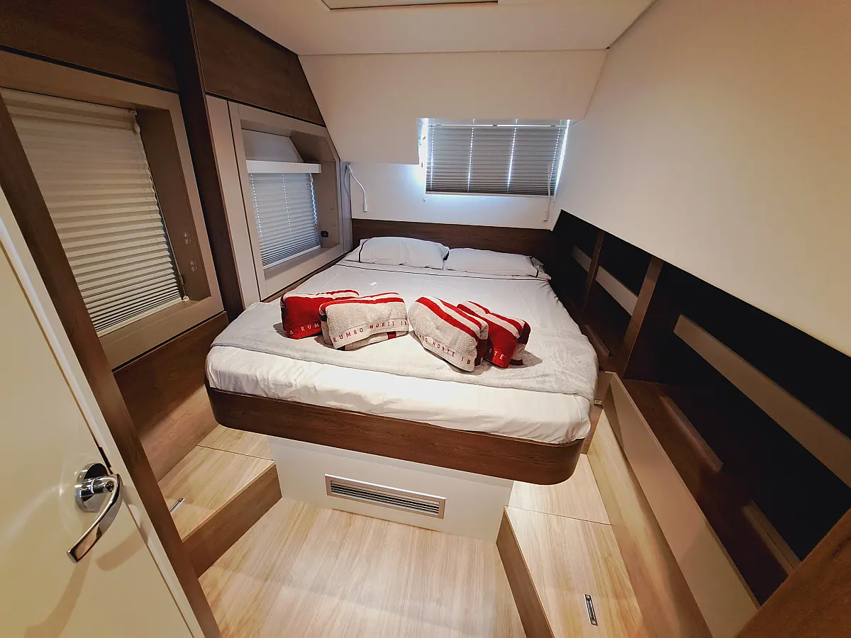 Generator, Wi-Fi und Internet, Wassermacher, Elektrische Winch (Segel), Inverter, Klimaanlage, Lautsprecher im Cockpit, Sprayhood, Cockpit-Kissen, Elektrische Toilette, Beiboot, Kühlschrank, Solar-Panele