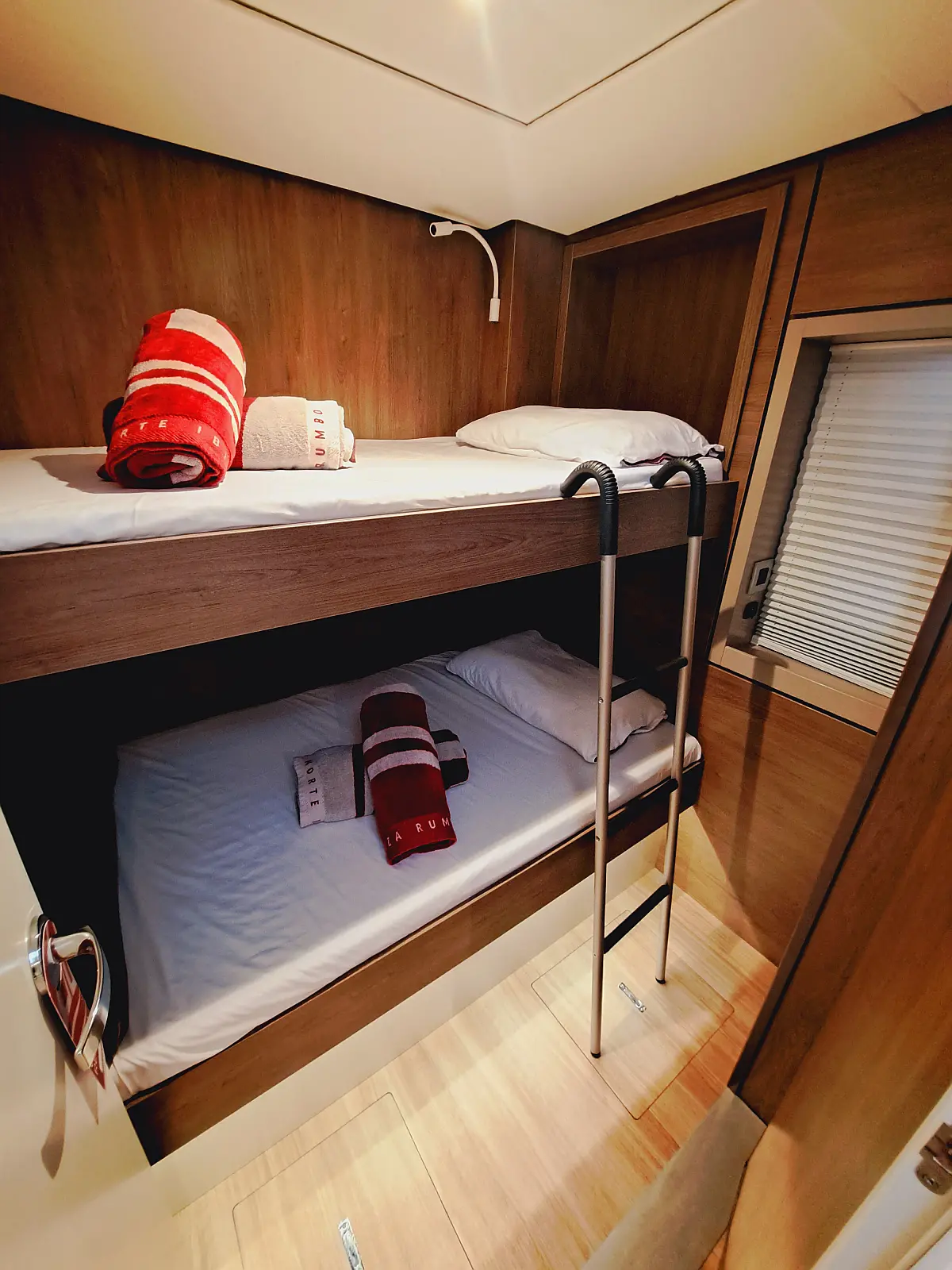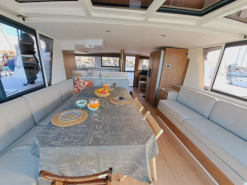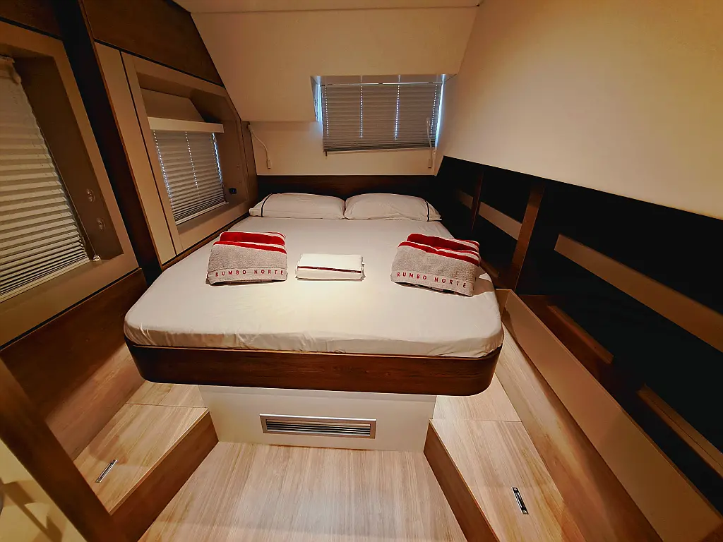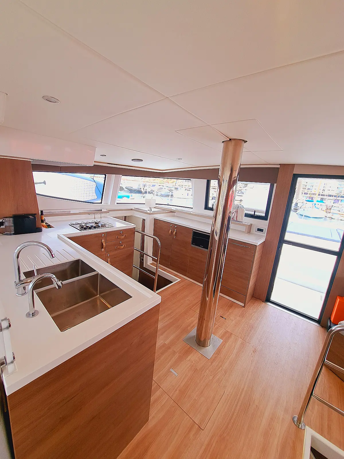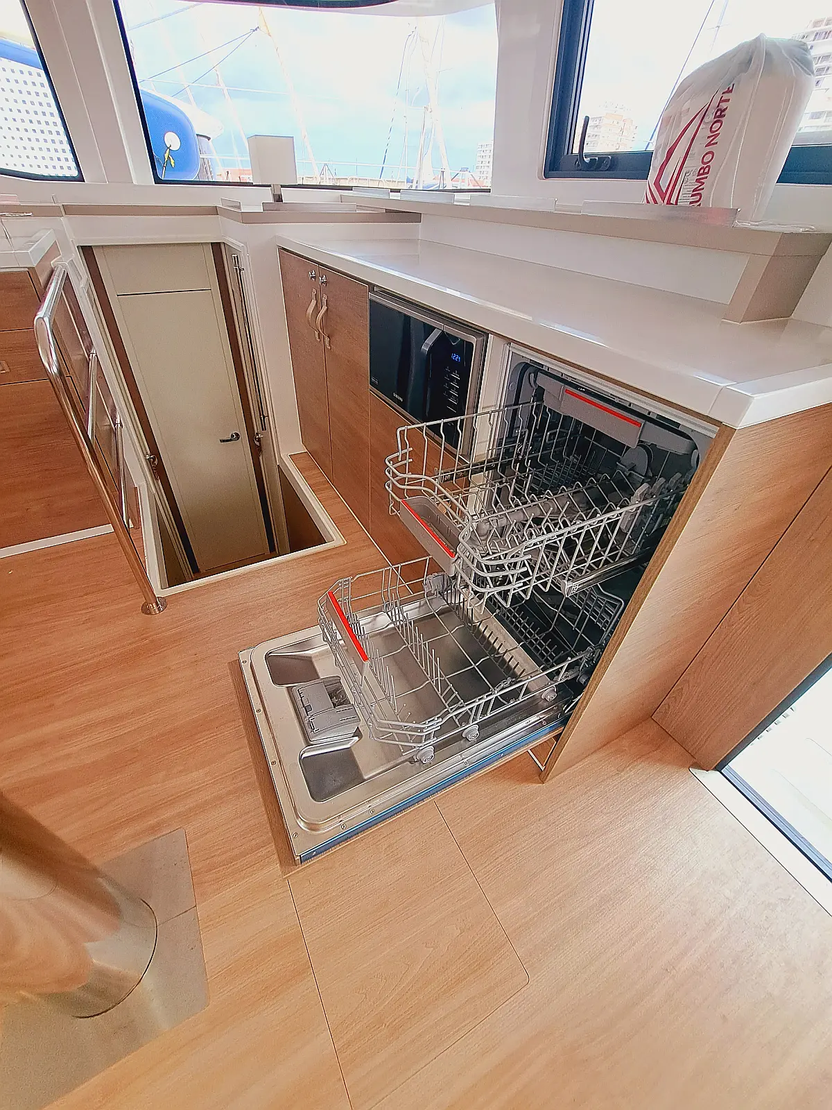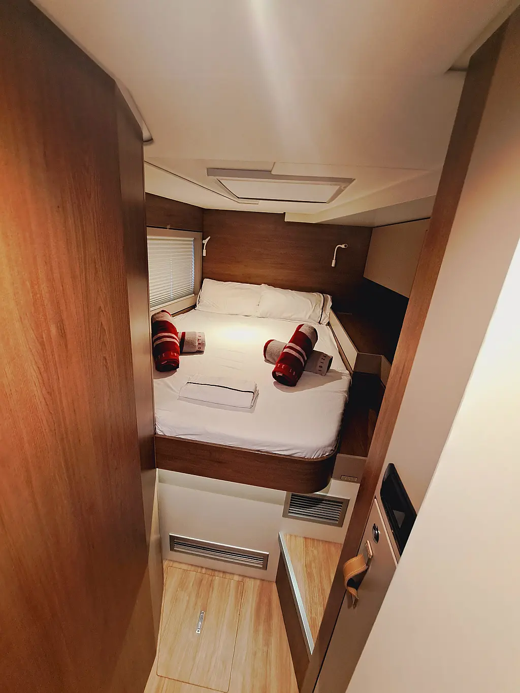 Generator, Wi-Fi und Internet, Wassermacher, Elektrische Winch (Segel), Inverter, Klimaanlage, Lautsprecher im Cockpit, Sprayhood, Cockpit-Kissen, Elektrische Toilette, Beiboot, Kühlschrank, Solar-Panele