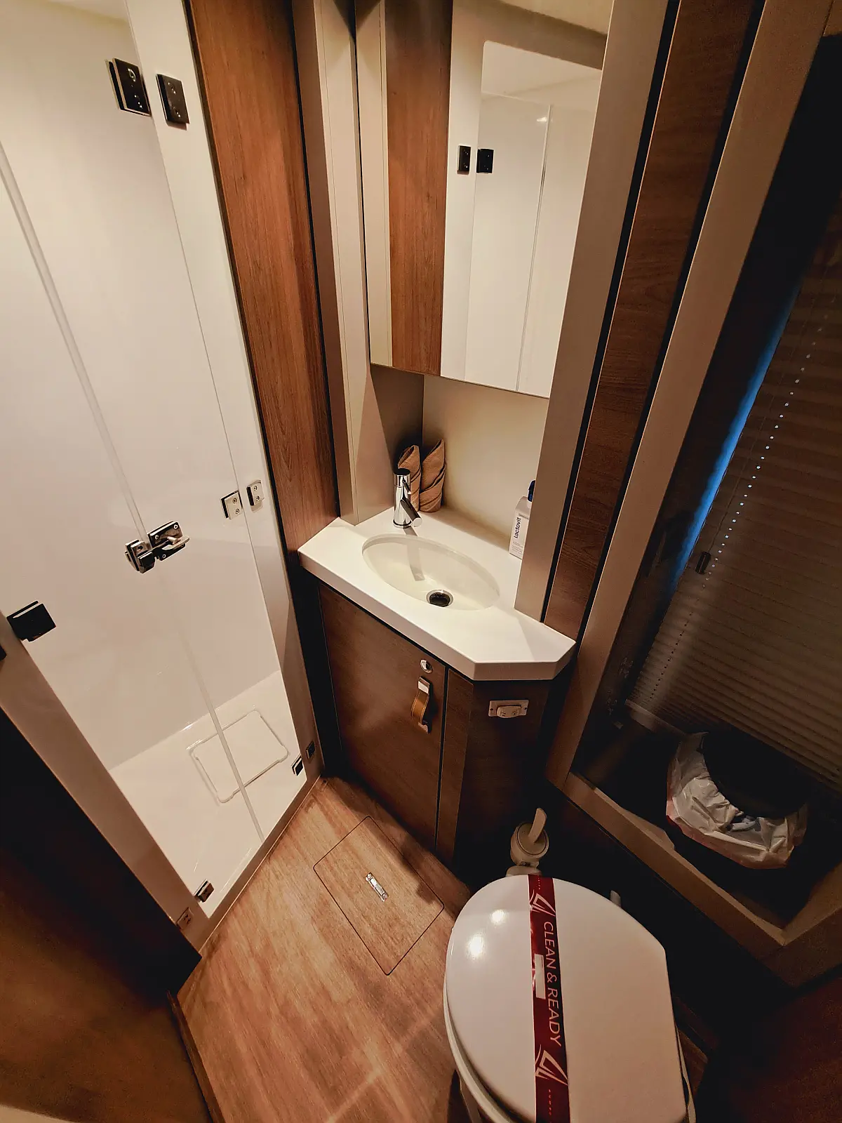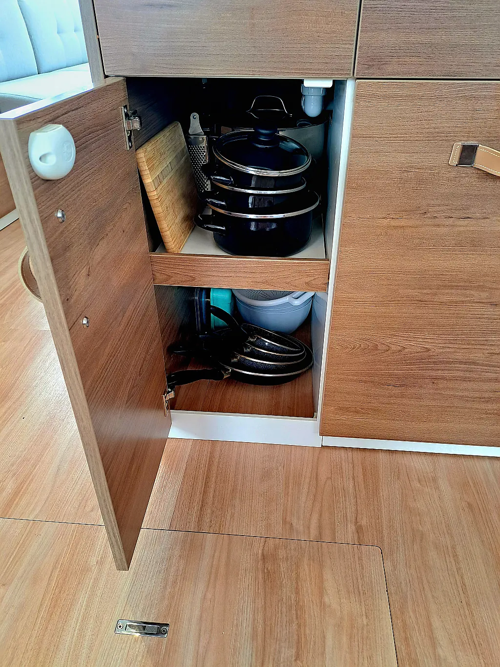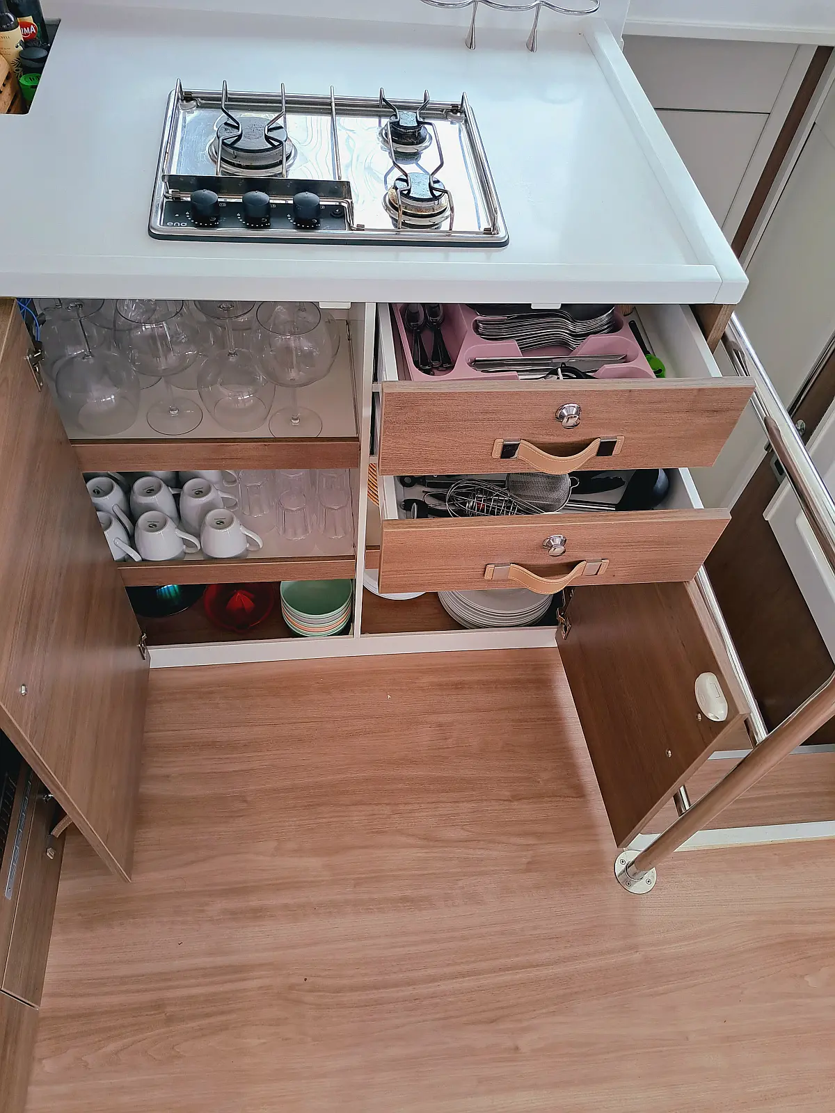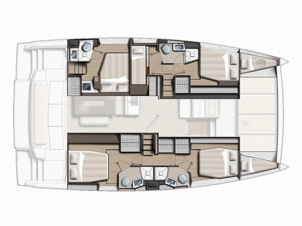 Generator, Wi-Fi und Internet, Wassermacher, Elektrische Winch (Segel), Inverter, Klimaanlage, Lautsprecher im Cockpit, Sprayhood, Cockpit-Kissen, Elektrische Toilette, Beiboot, Kühlschrank, Solar-Panele