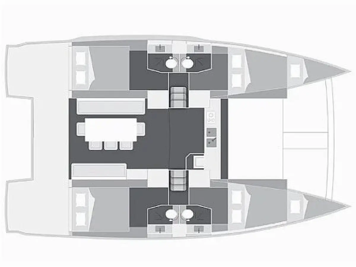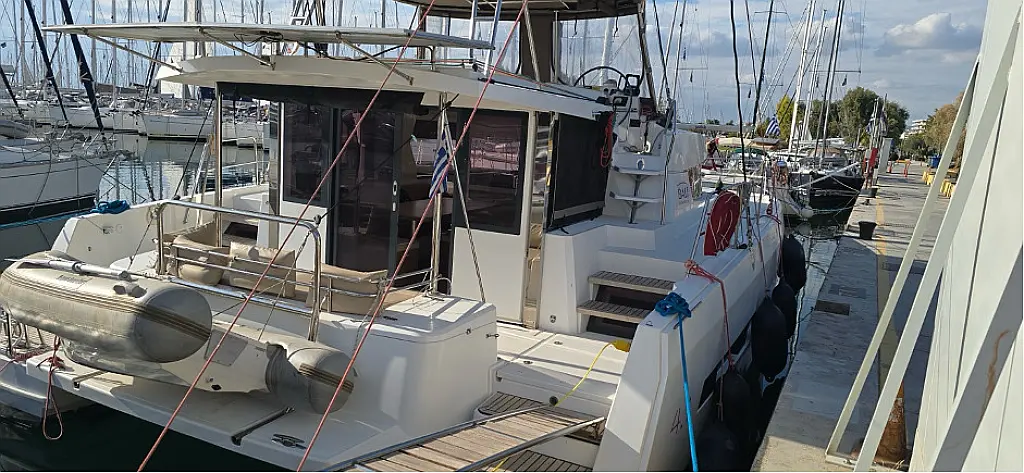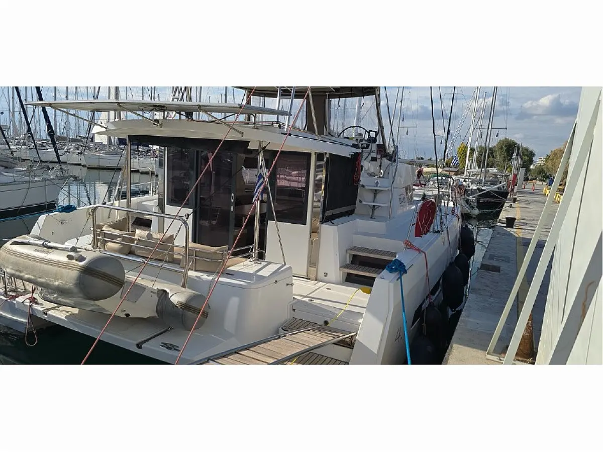 Fäkalientank, Elektrische Winch (Segel), Generator, Kühlschrank, Elektrische Toilette, Klimaanlage, Wassermacher, Cockpit-Kissen, Beiboot, Sprayhood, Badeplattform, Solar-Panele