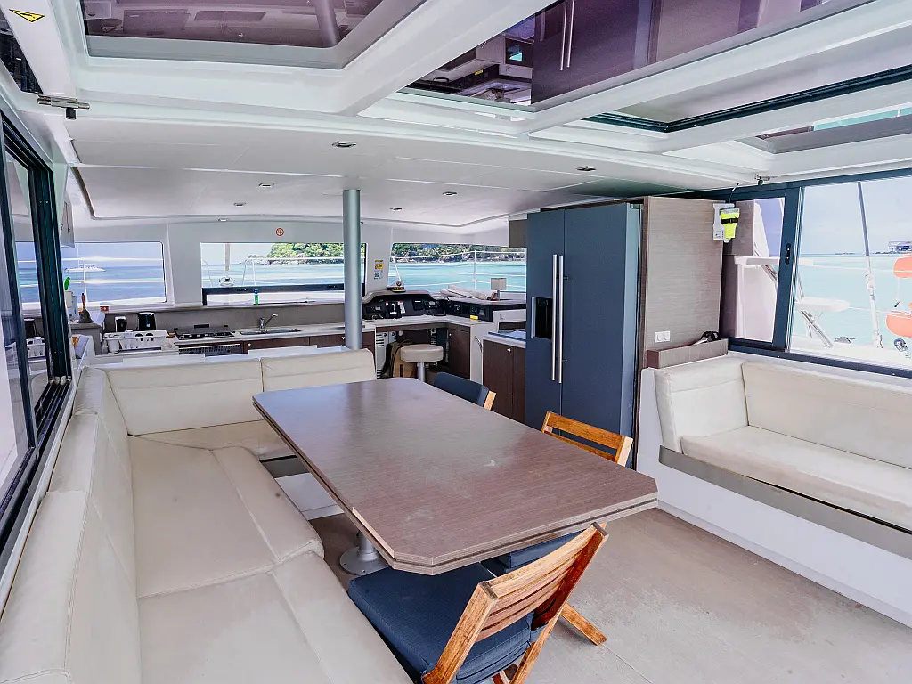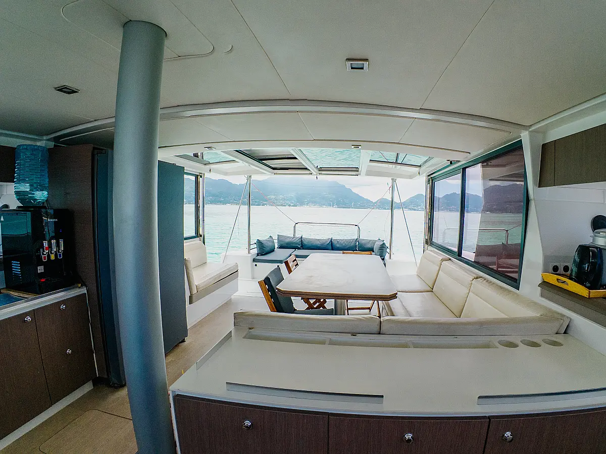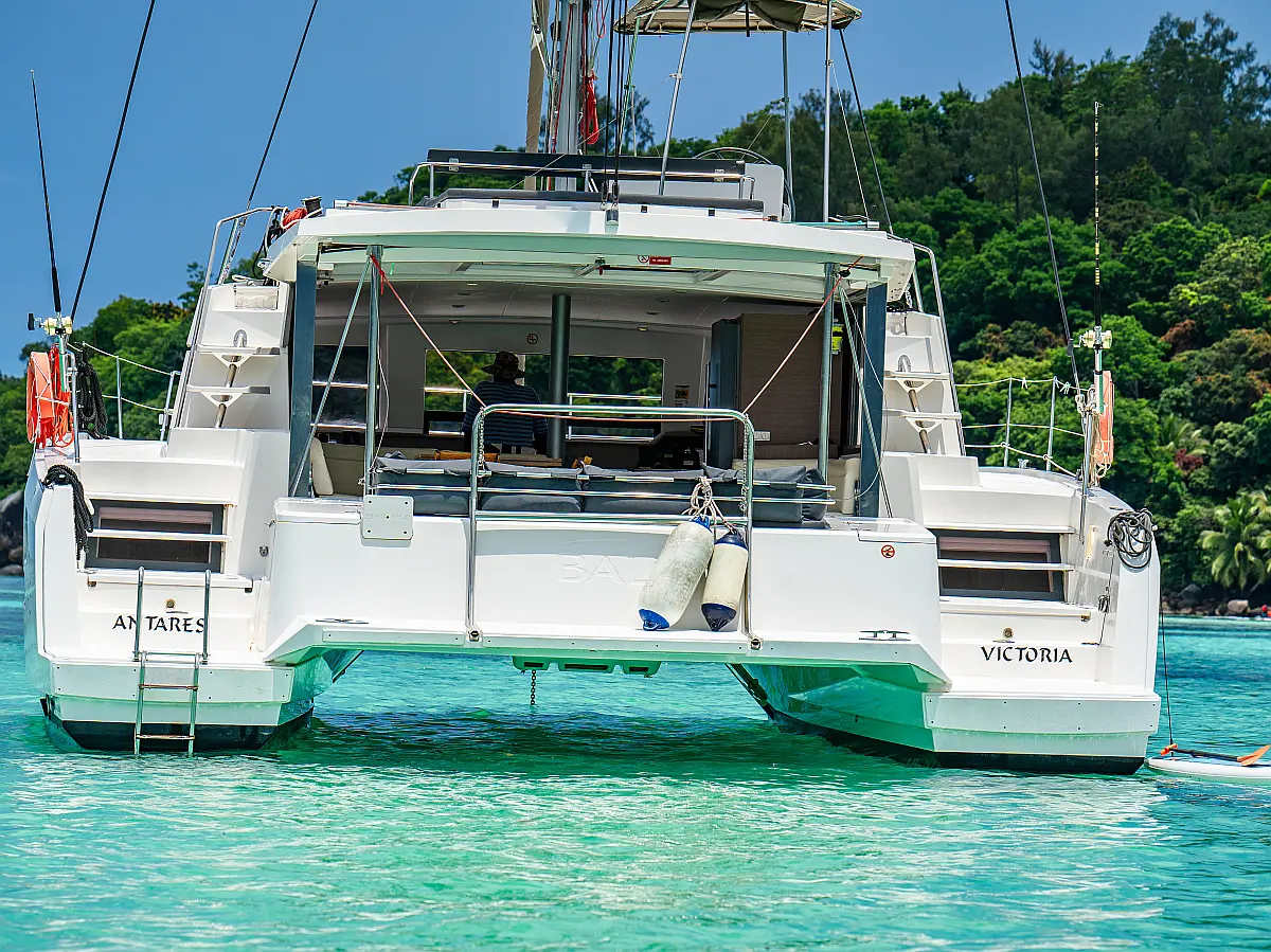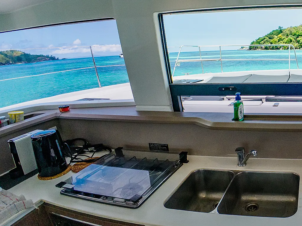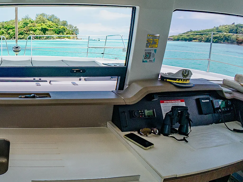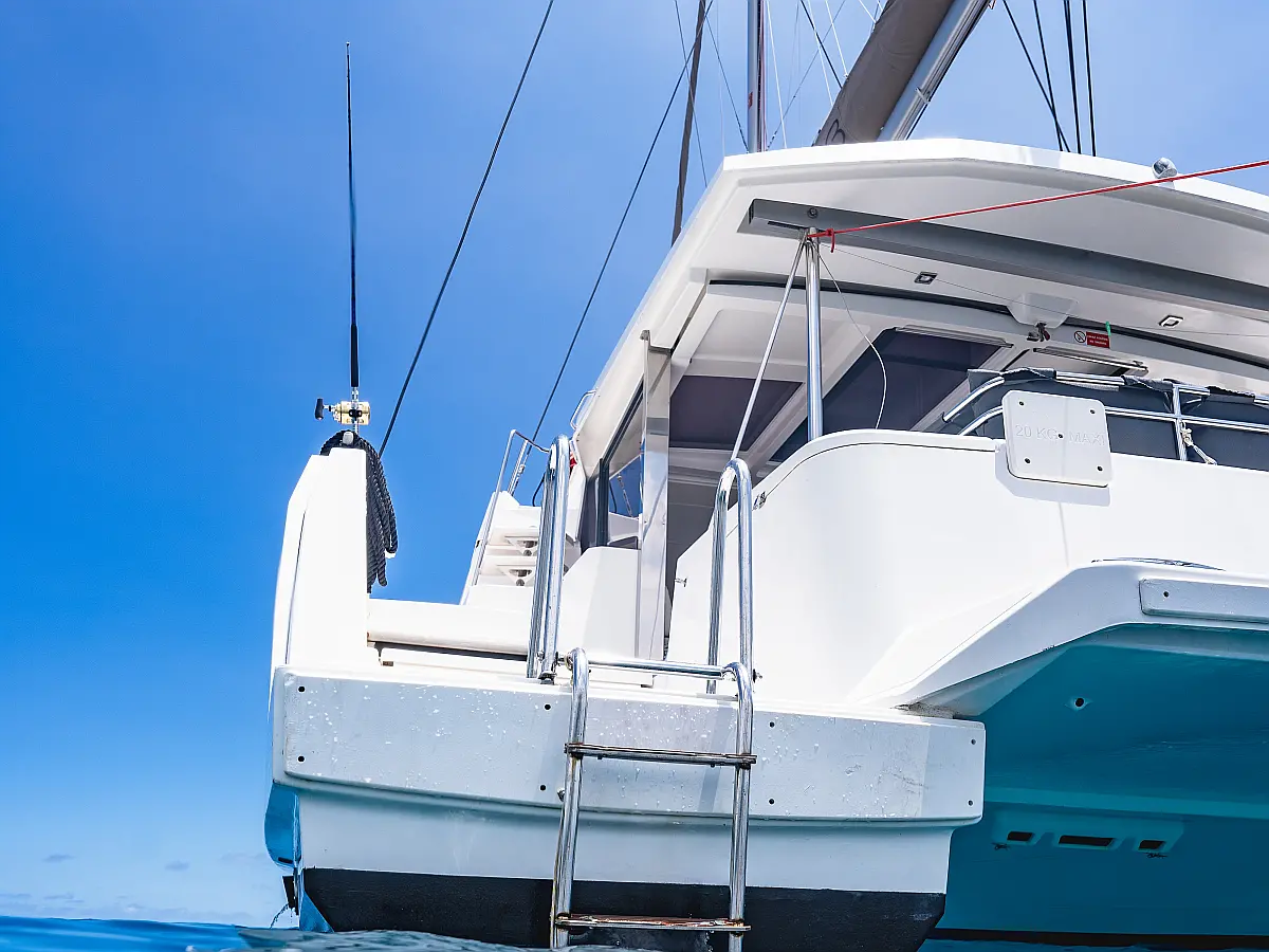 Elektrische Winch (Segel), Klimaanlage, Generator, Wassermacher, Bimini, Beiboot, Außenbordmotor, Eismaschine, Kaffeemaschine, Kühlschrank
