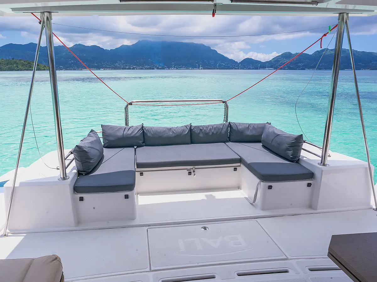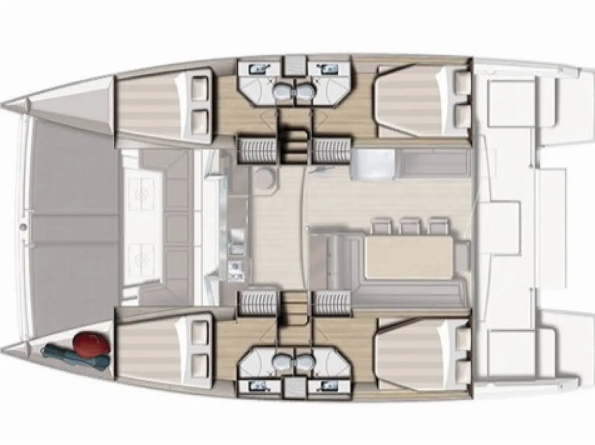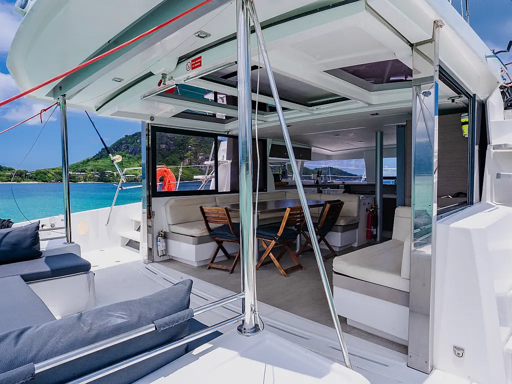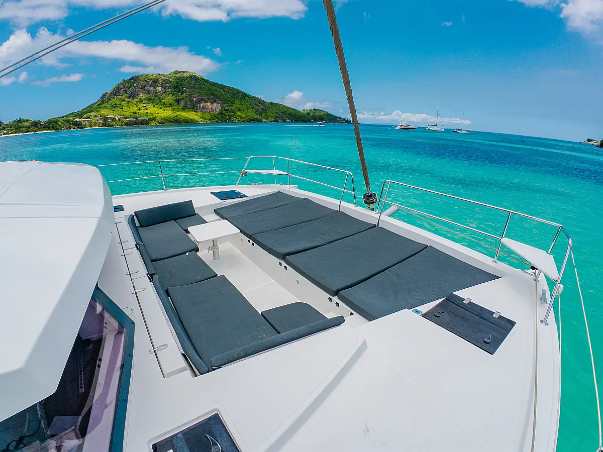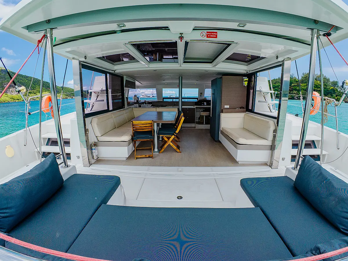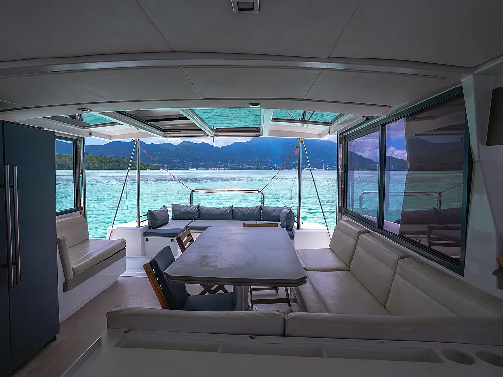 Elektrische Winch (Segel), Klimaanlage, Generator, Wassermacher, Bimini, Beiboot, Außenbordmotor, Eismaschine, Kaffeemaschine, Kühlschrank
