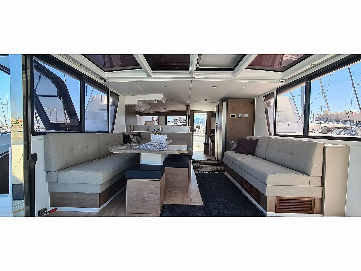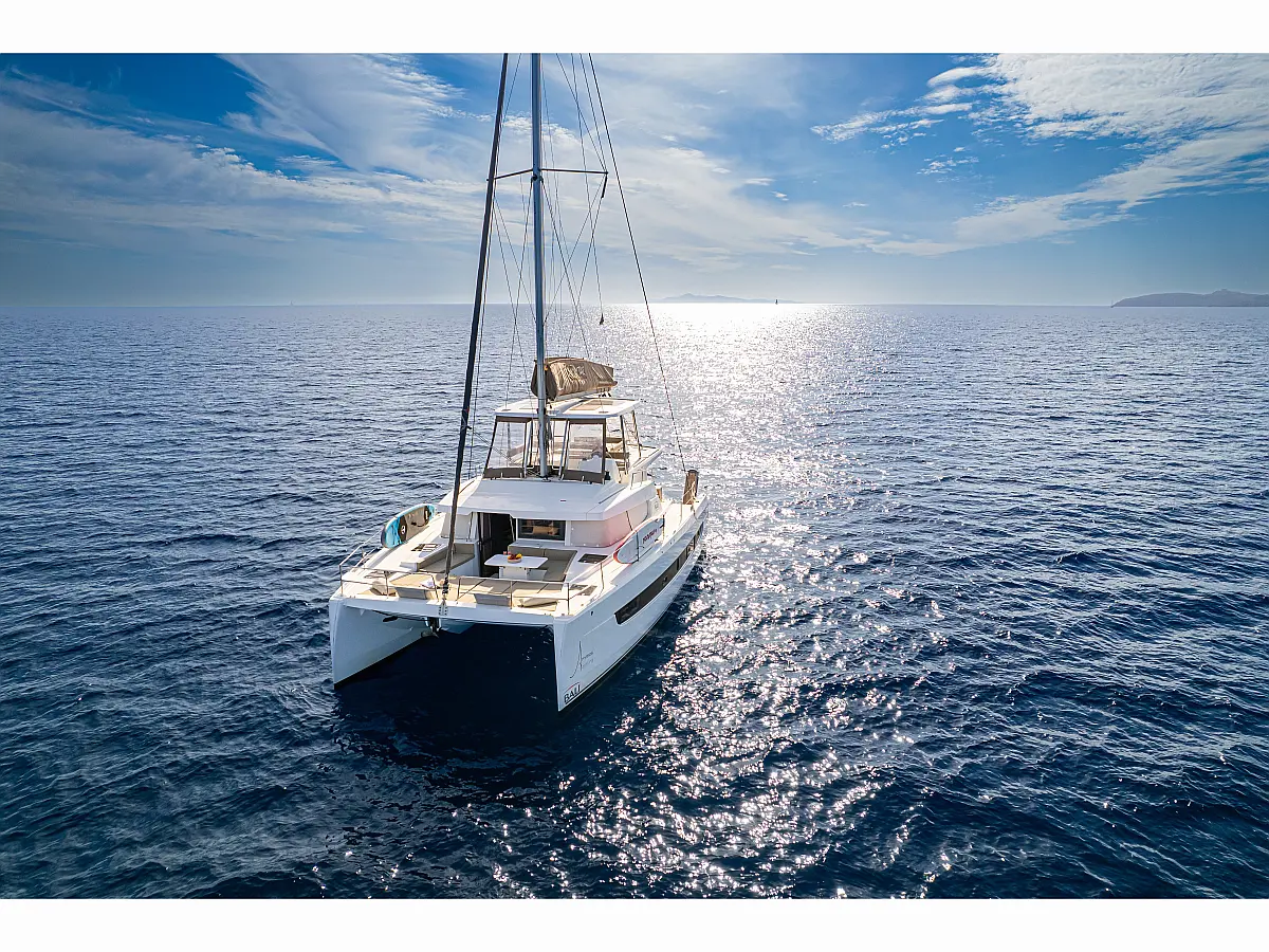 Bimini, Grill im Cockpit, Elektrische Toilette, Beiboot, Elektrische Winch (Segel), Kühlschrank, Inverter, Generator, Lautsprecher im Cockpit, Solar-Panele
