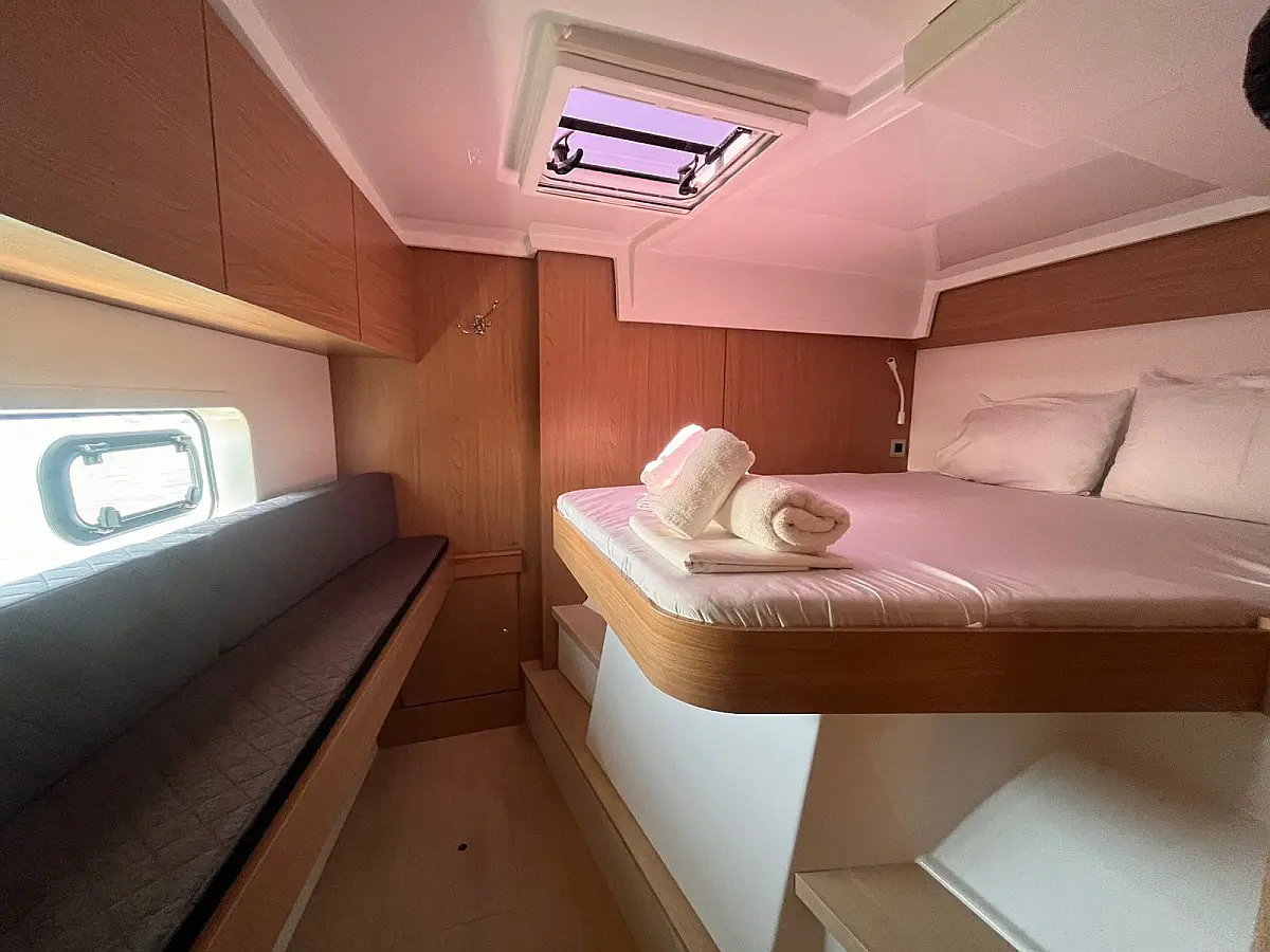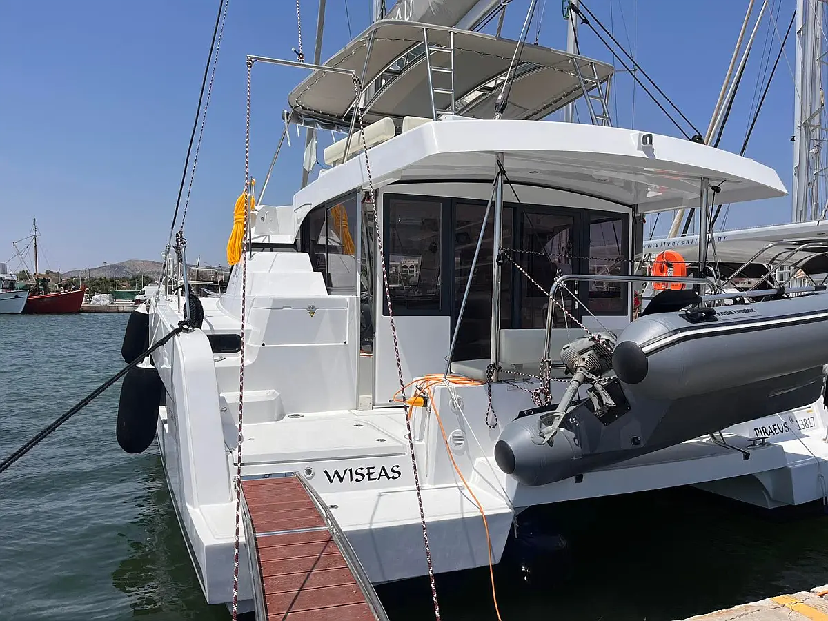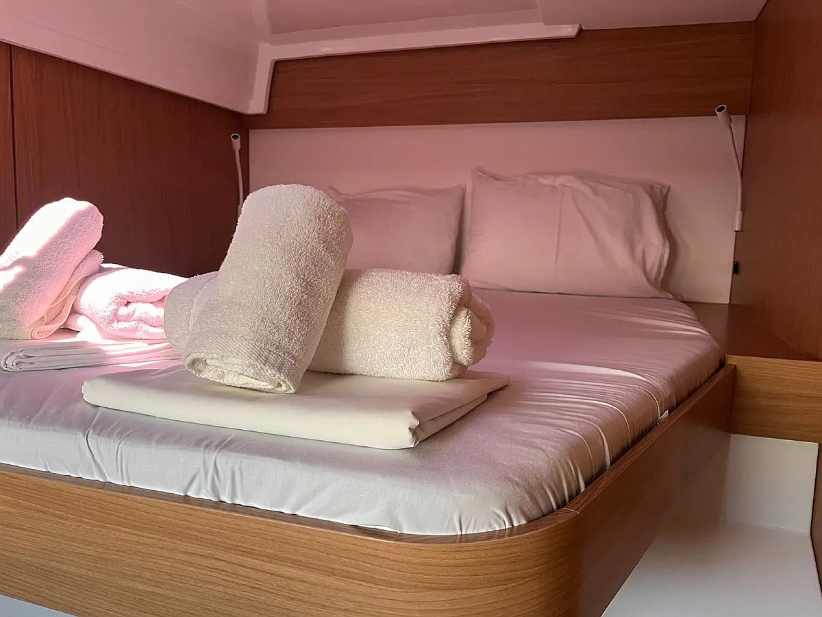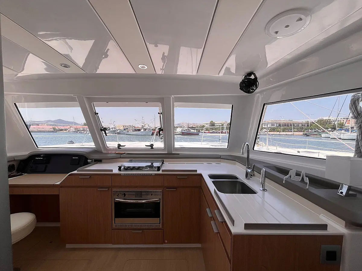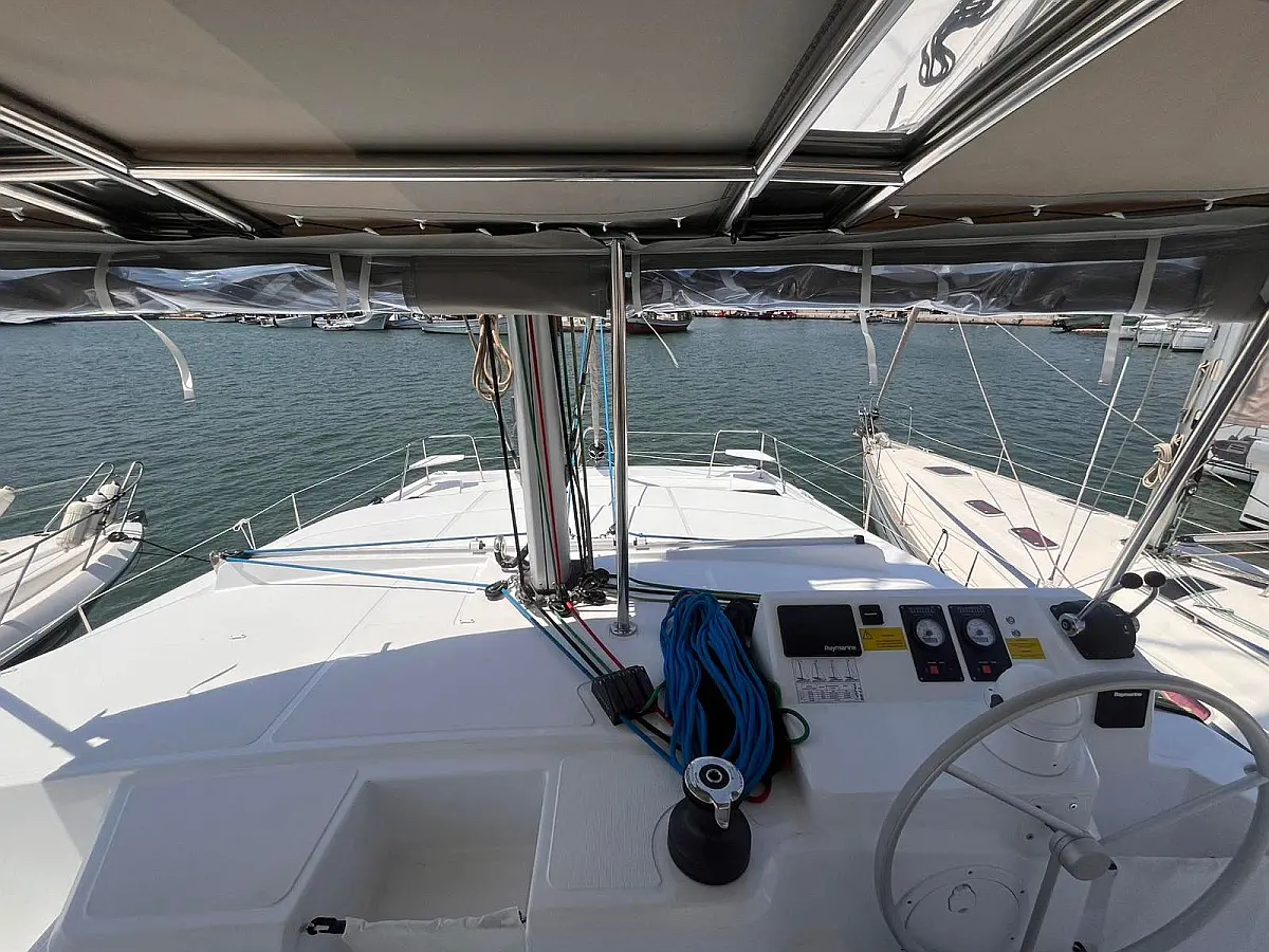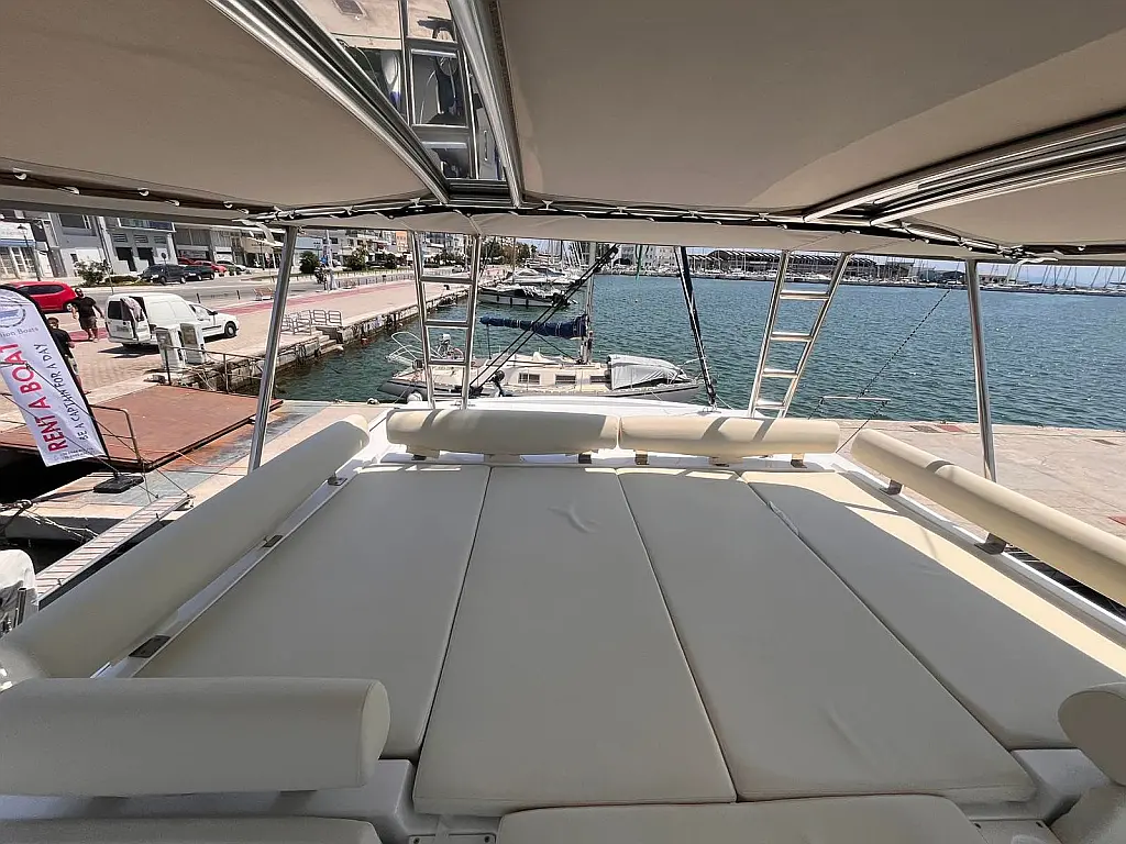 Bimini, Sprayhood, Lautsprecher im Cockpit, Beiboot, Eismaschine, Fäkalientank, Cockpit-Kissen, Badeplattform, Flybridge, Kaffeemaschine, Kühlschrank, Inverter