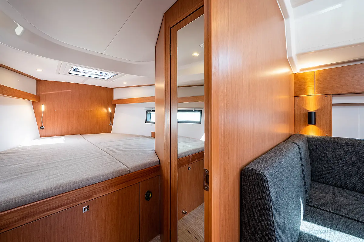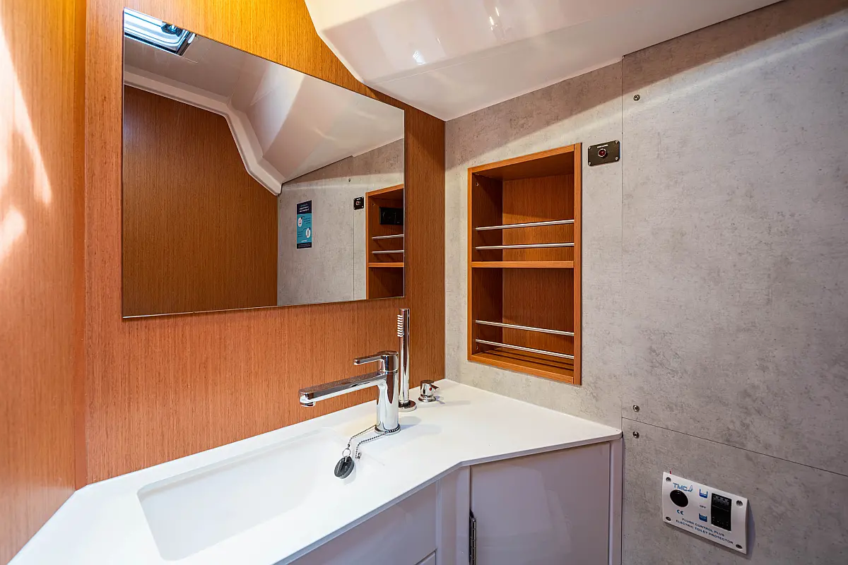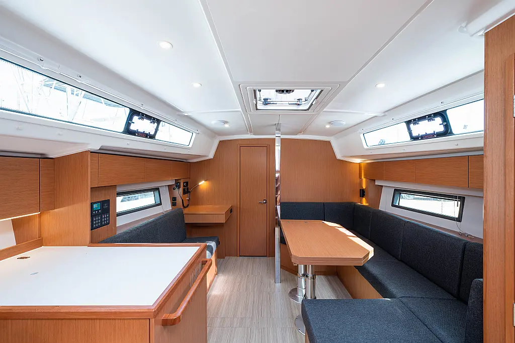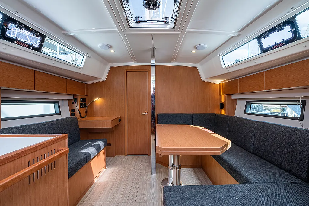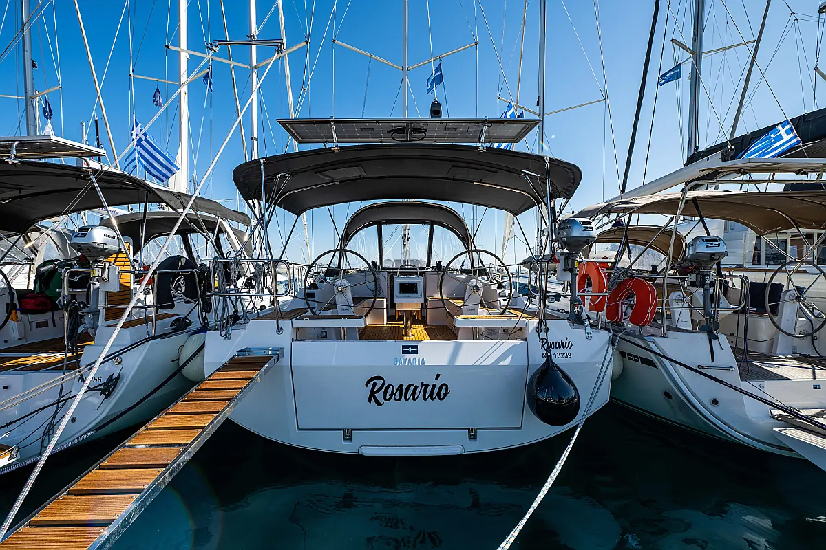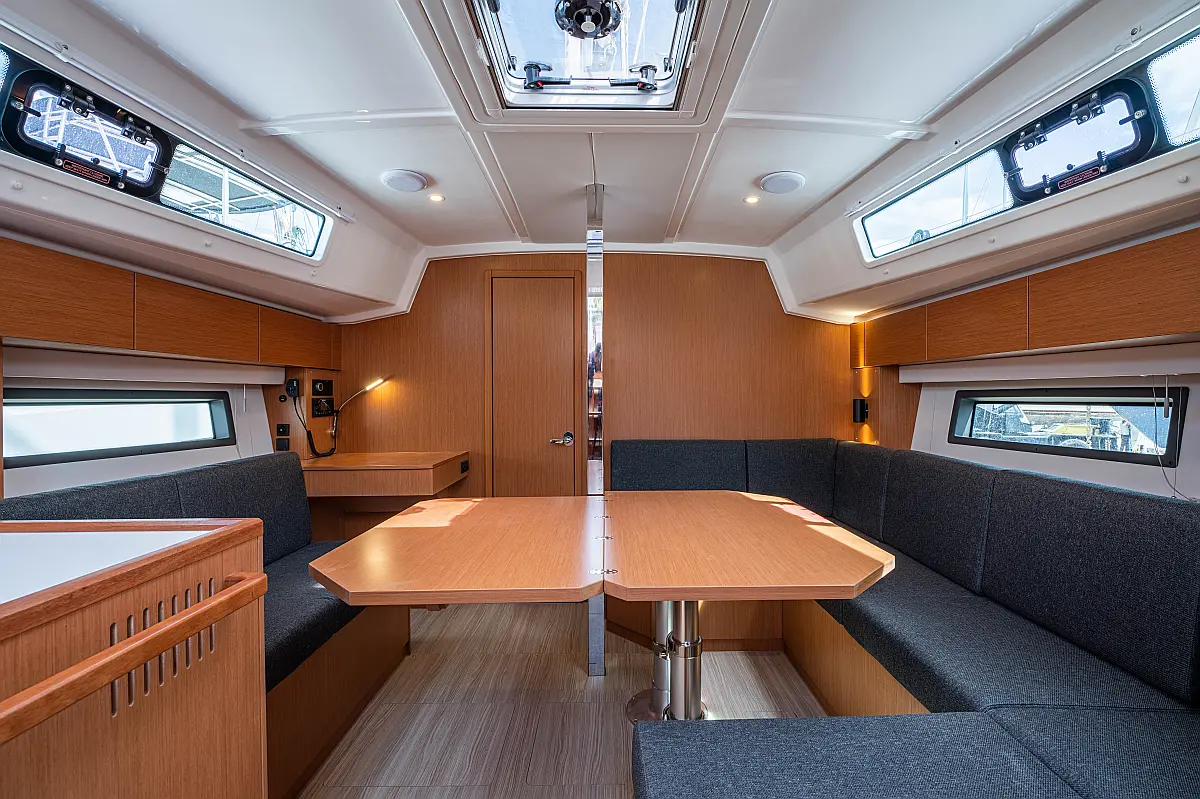 Sprayhood, Beiboot, Lautsprecher im Cockpit, Elektrische Winch (Segel), Elektrische Toilette, Solar-Panele, Cockpit-Kissen, Teak Cockpit