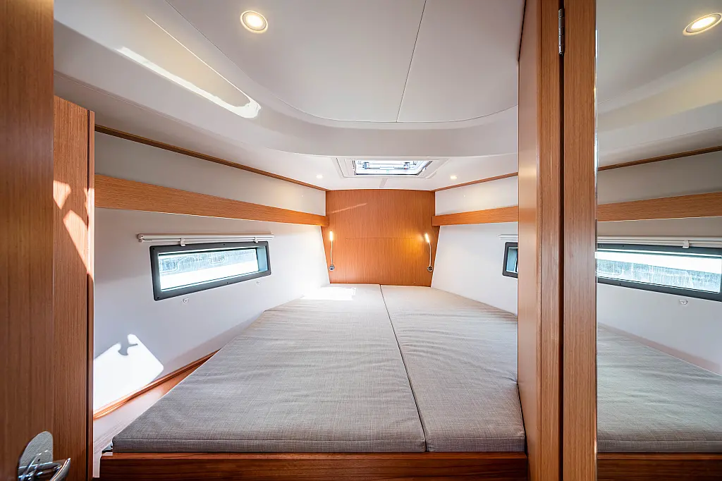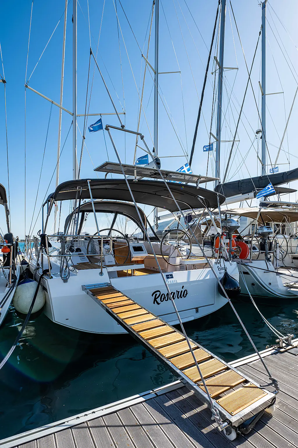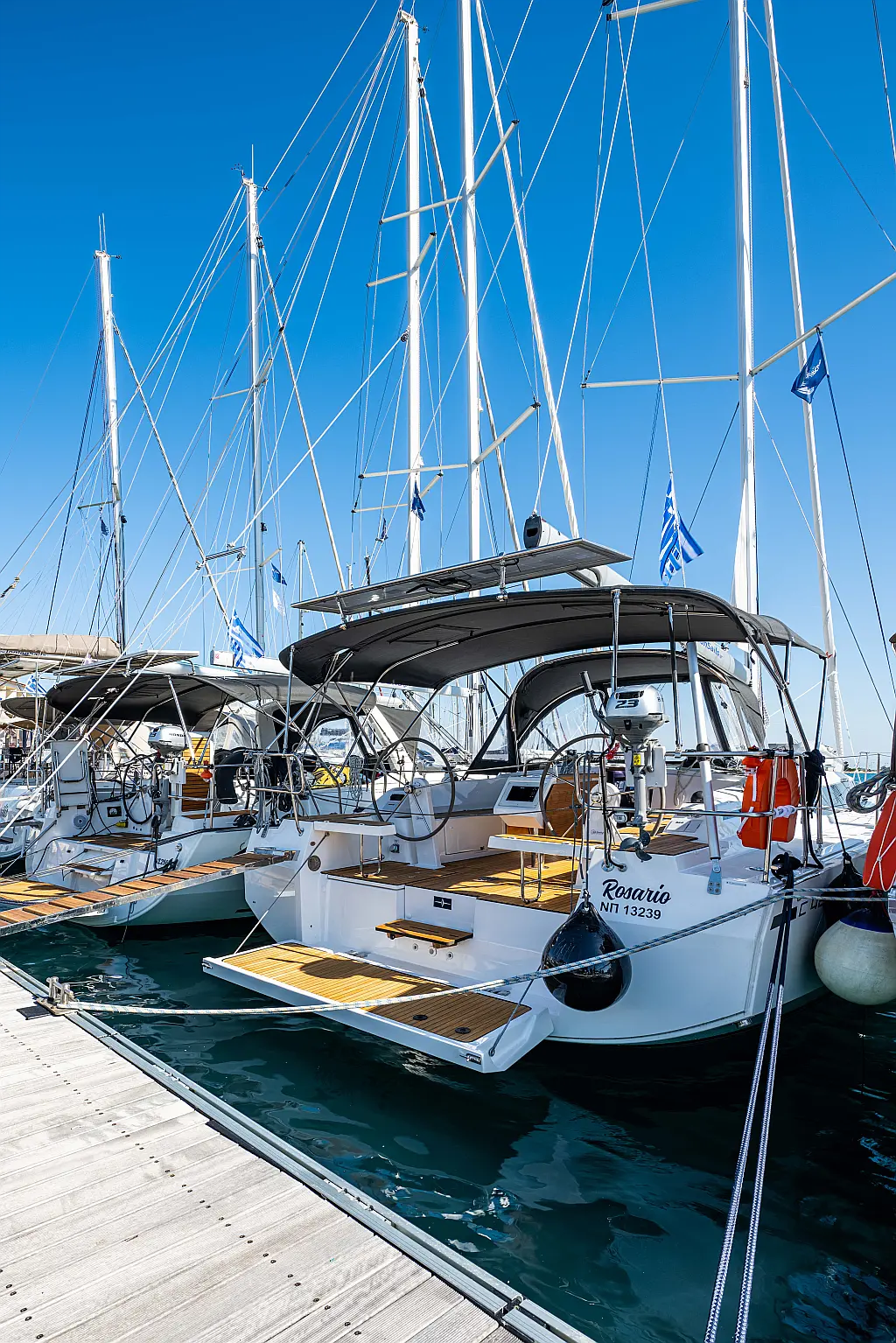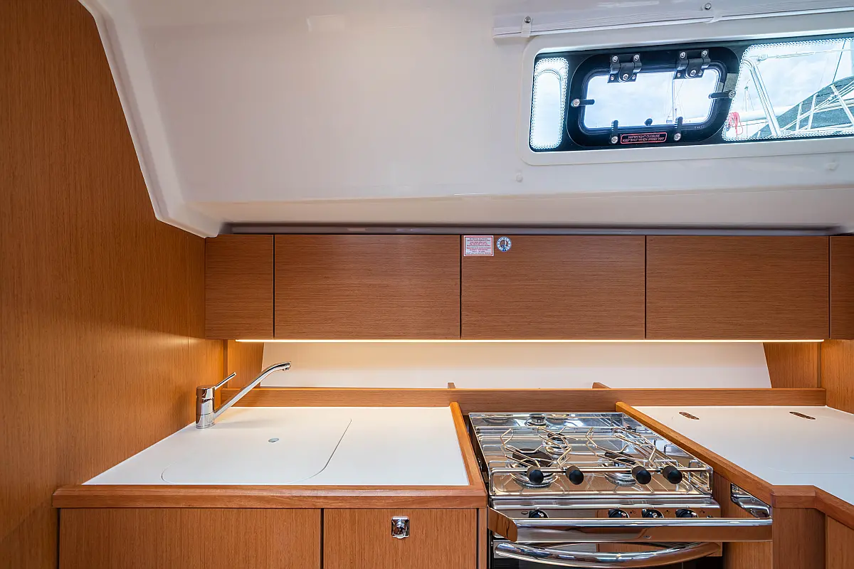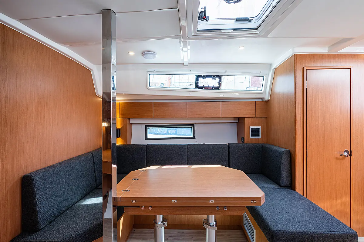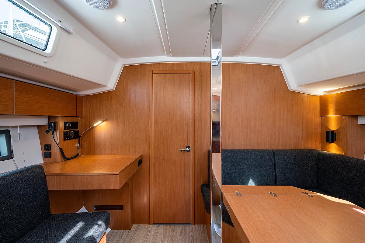 Sprayhood, Beiboot, Lautsprecher im Cockpit, Elektrische Winch (Segel), Elektrische Toilette, Solar-Panele, Cockpit-Kissen, Teak Cockpit