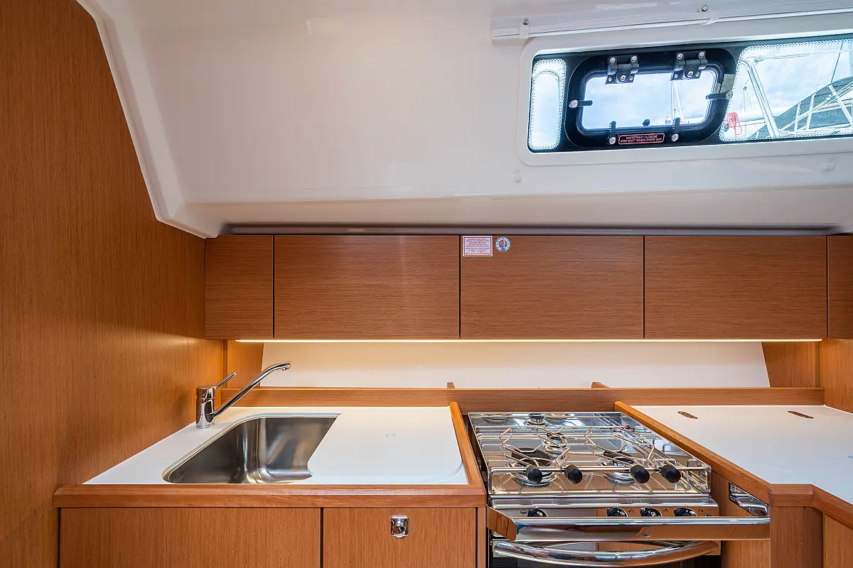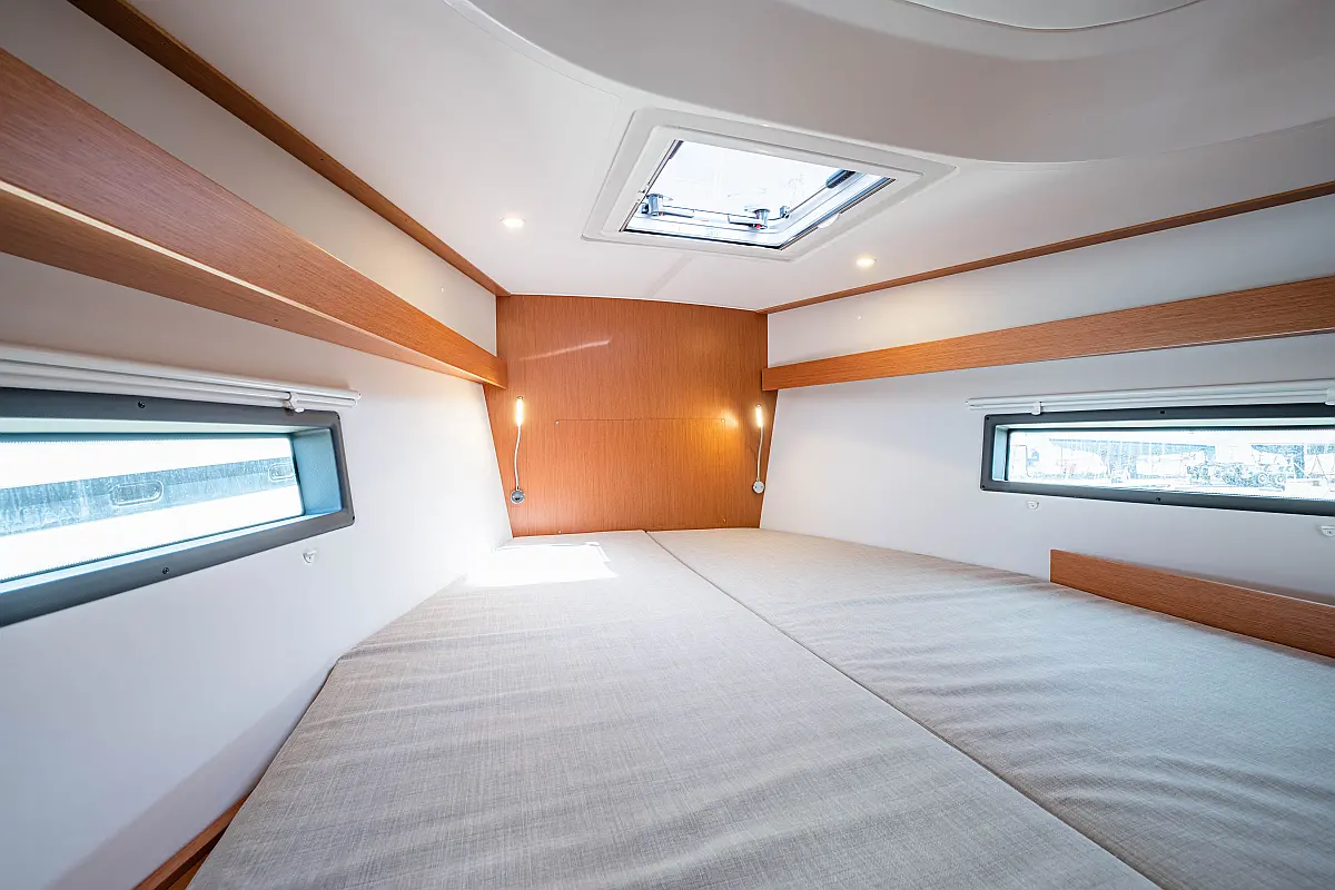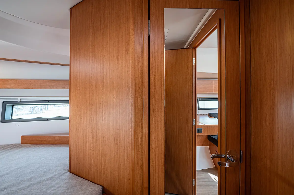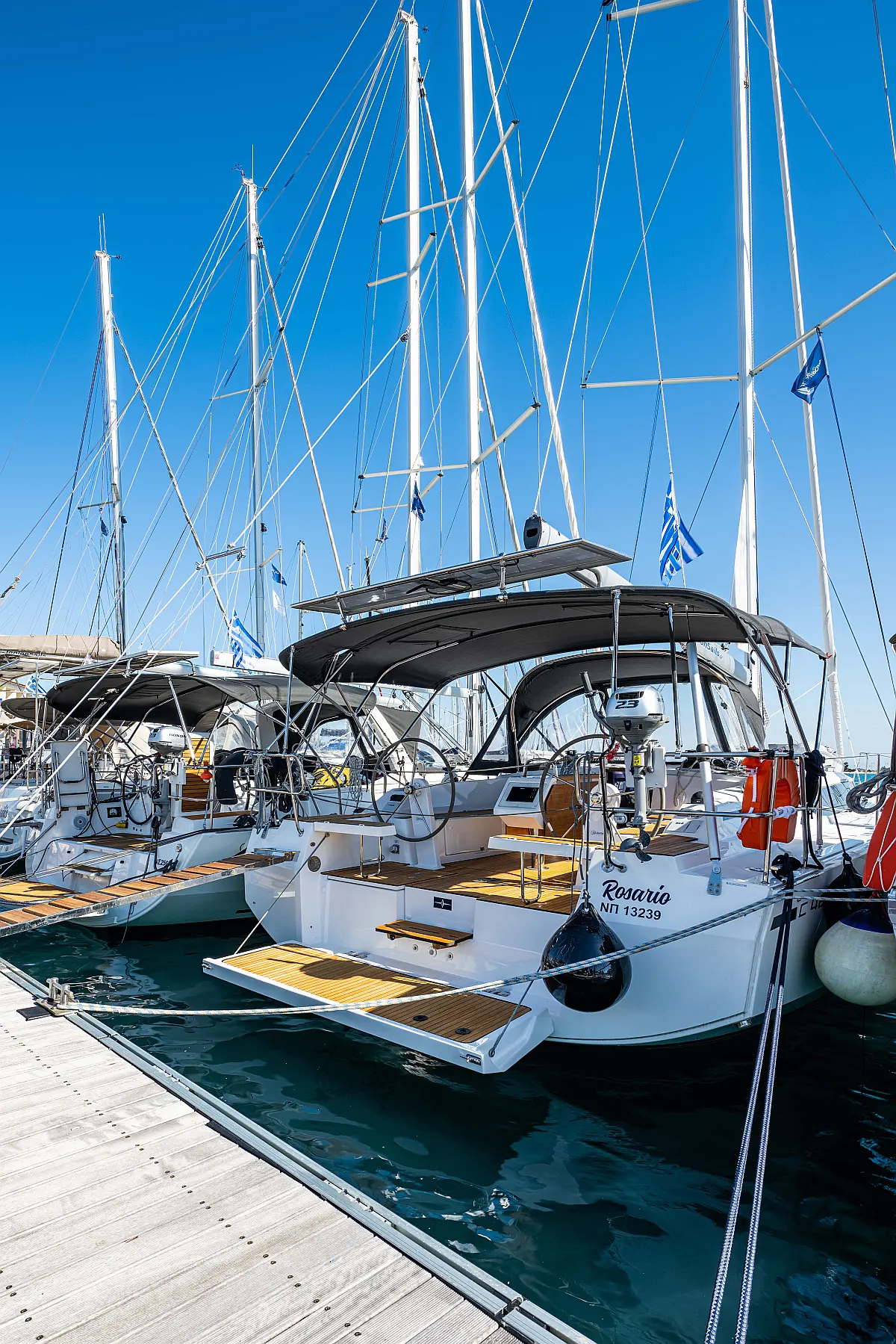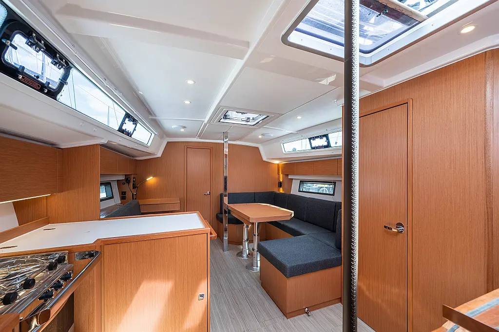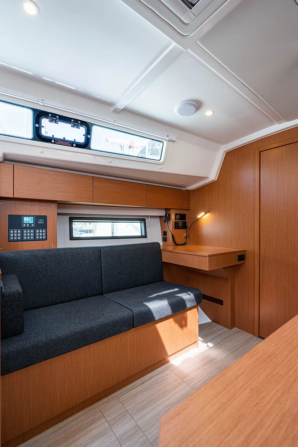 Sprayhood, Beiboot, Lautsprecher im Cockpit, Elektrische Winch (Segel), Elektrische Toilette, Solar-Panele, Cockpit-Kissen, Teak Cockpit