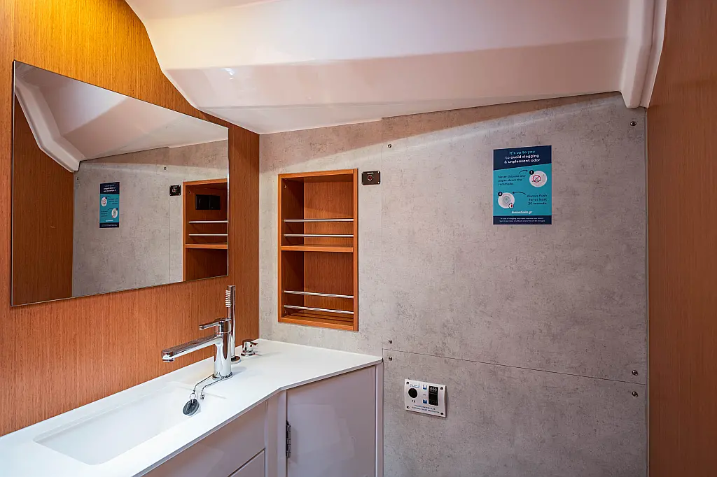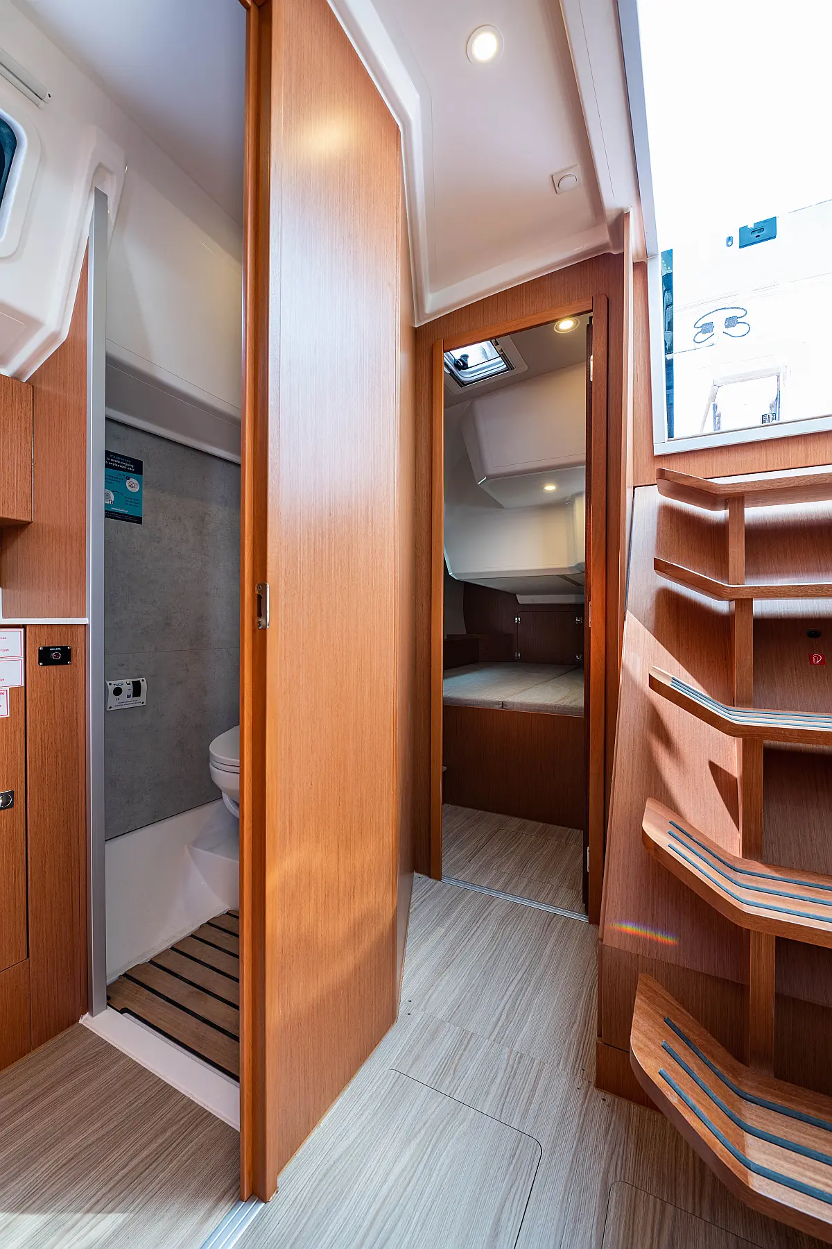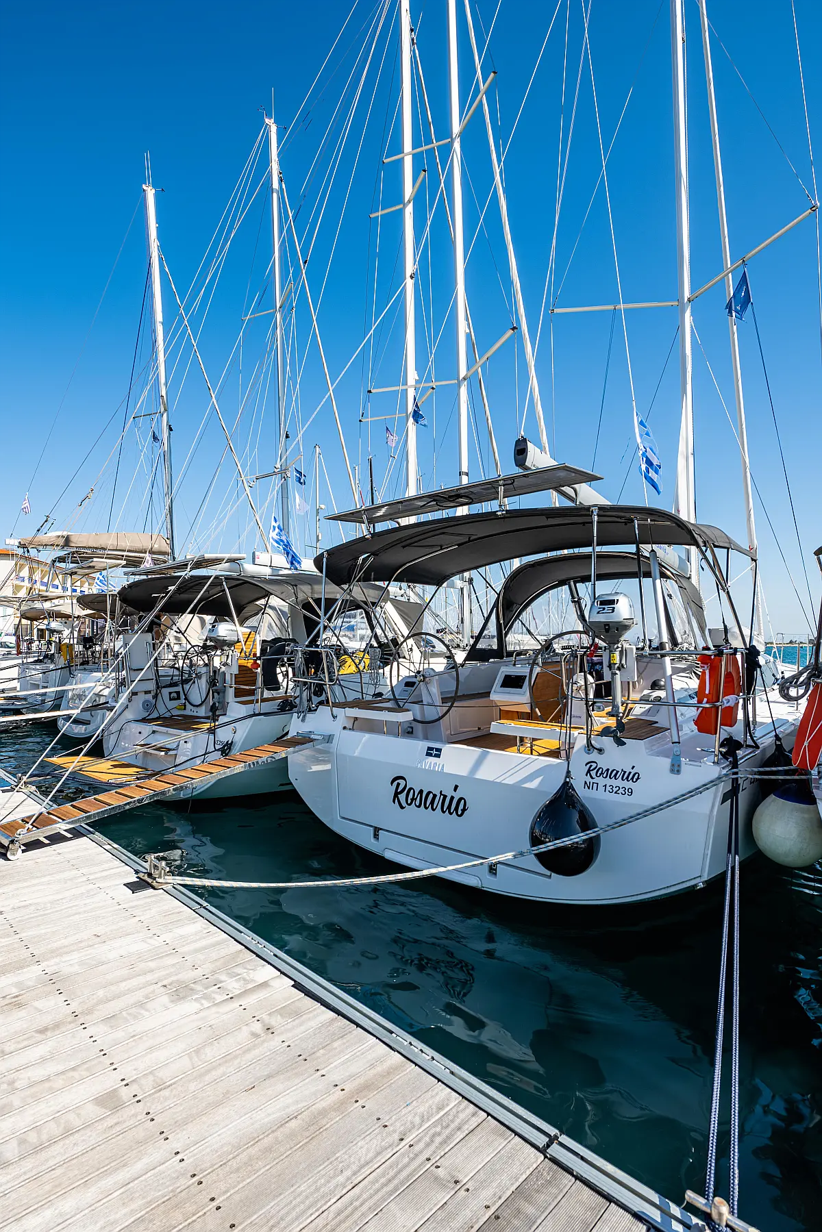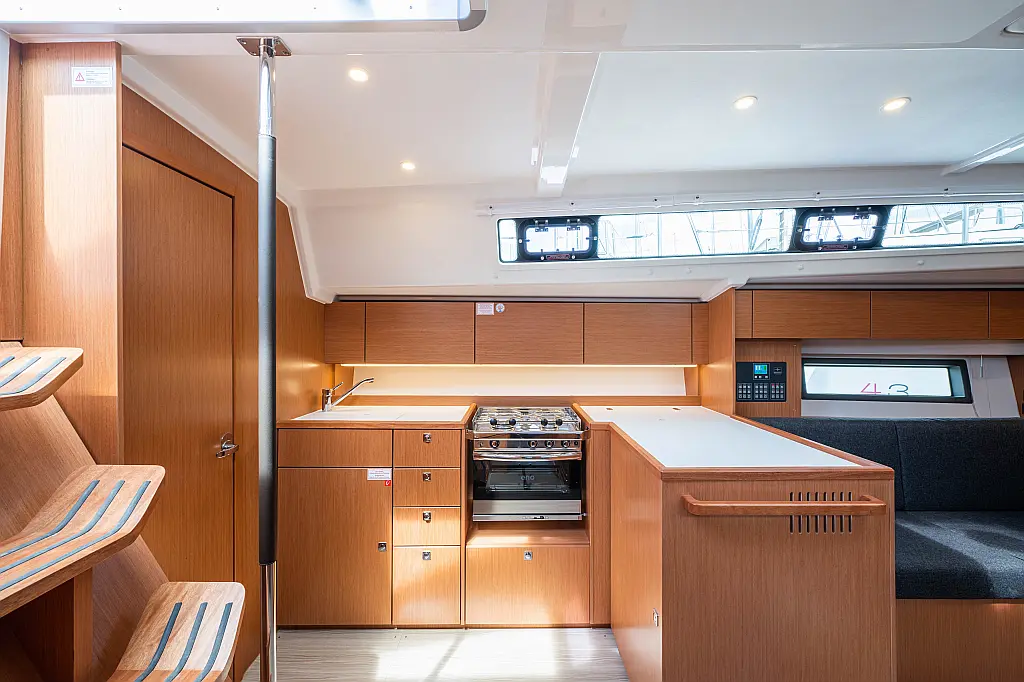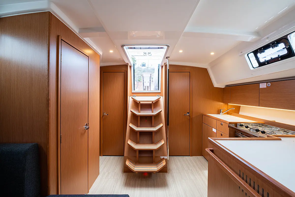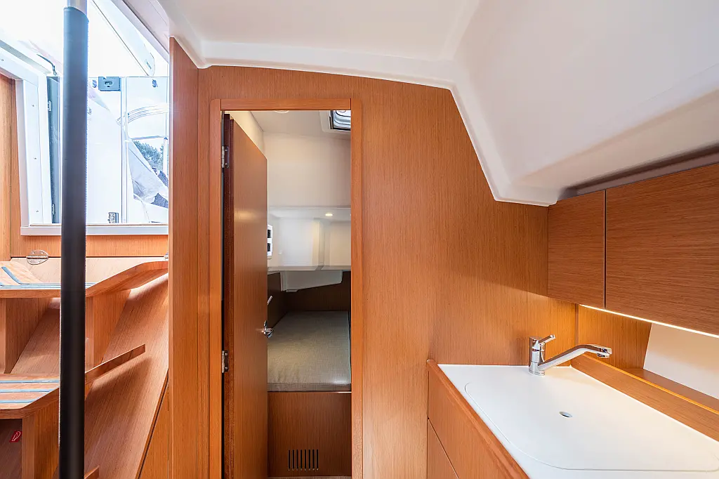 Sprayhood, Beiboot, Lautsprecher im Cockpit, Elektrische Winch (Segel), Elektrische Toilette, Solar-Panele, Cockpit-Kissen, Teak Cockpit