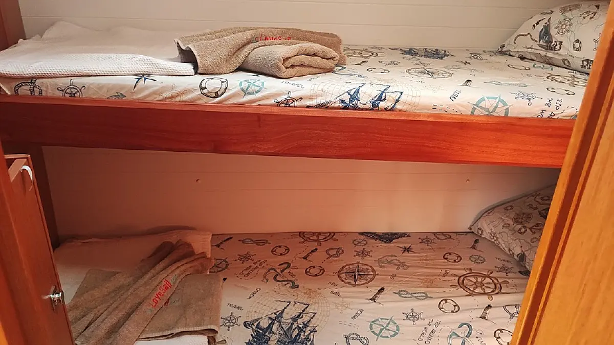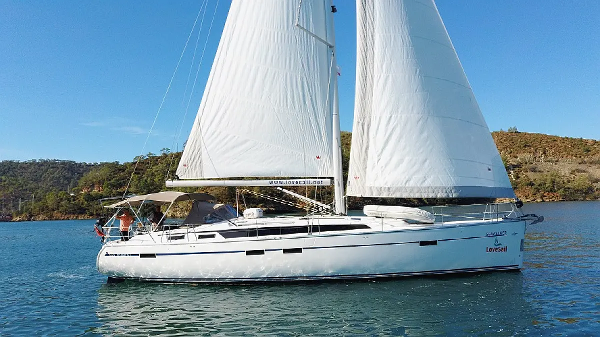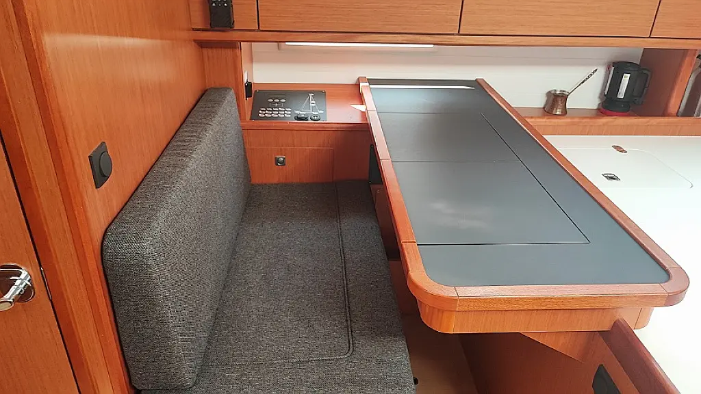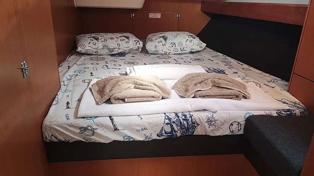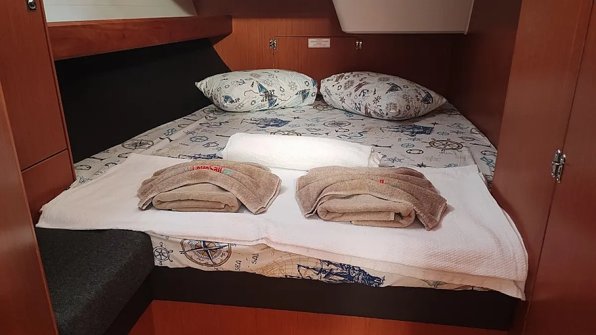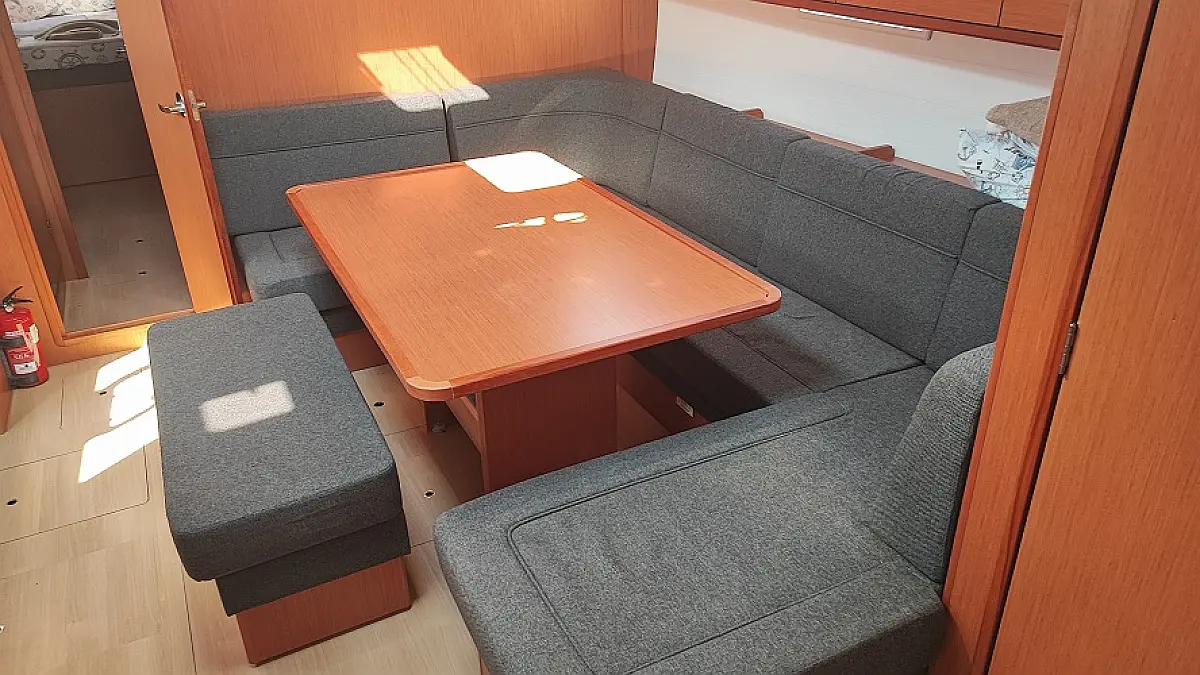 Kühlschrank, Bimini, Cockpit-Kissen, Sprayhood, Außenbordmotor, Solar-Panele, Inverter, Beiboot, Heizung