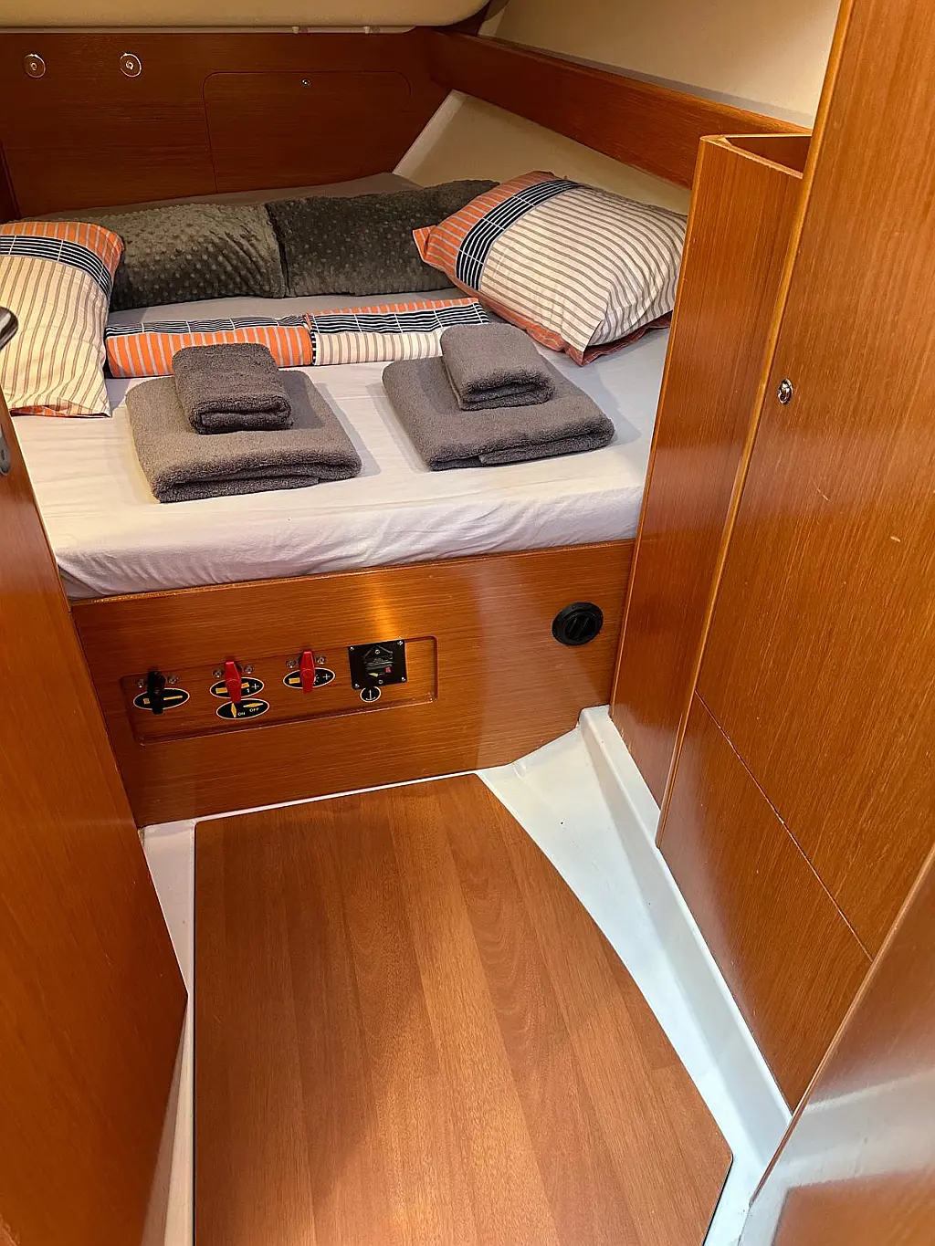 Klimaanlage, Bimini, Lautsprecher im Cockpit, Kühlschrank, Heizung, Solar-Panele, Sprayhood