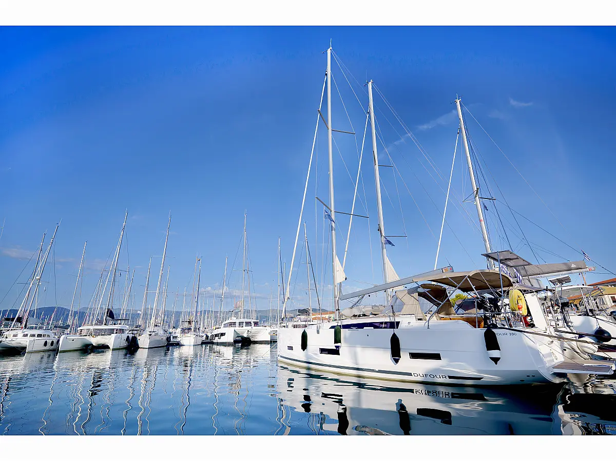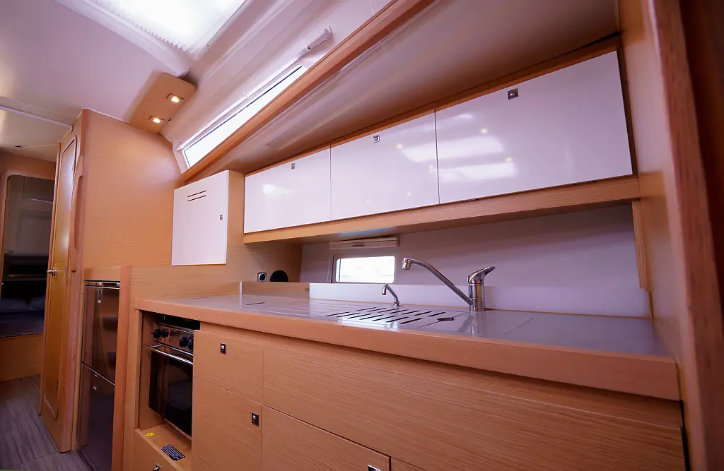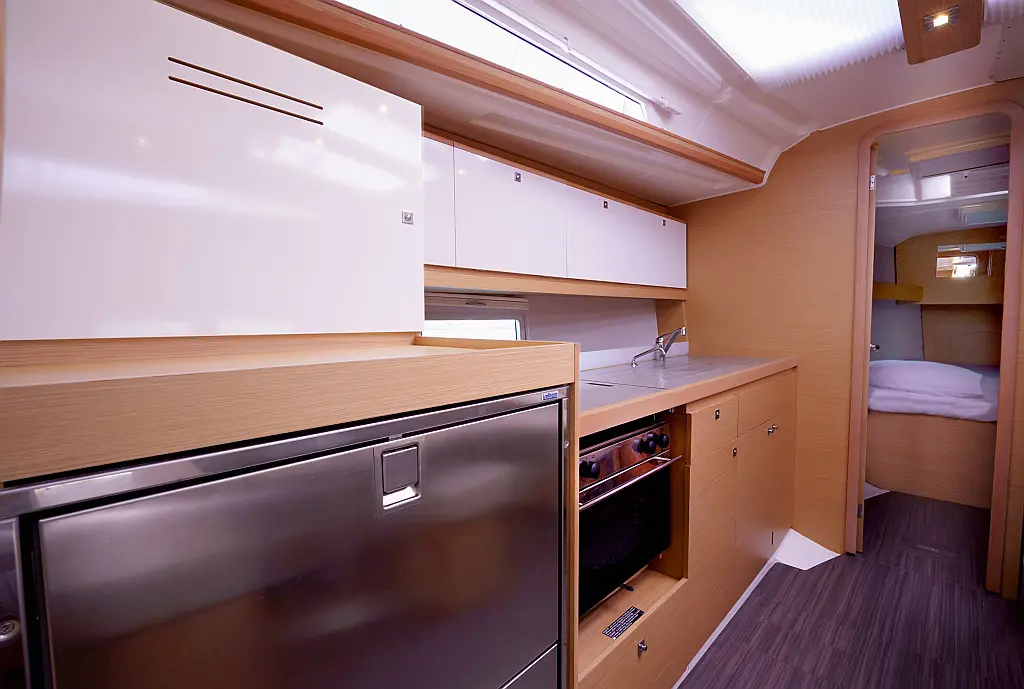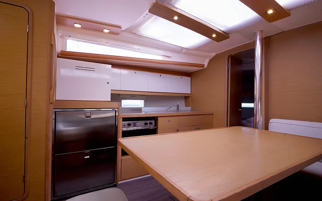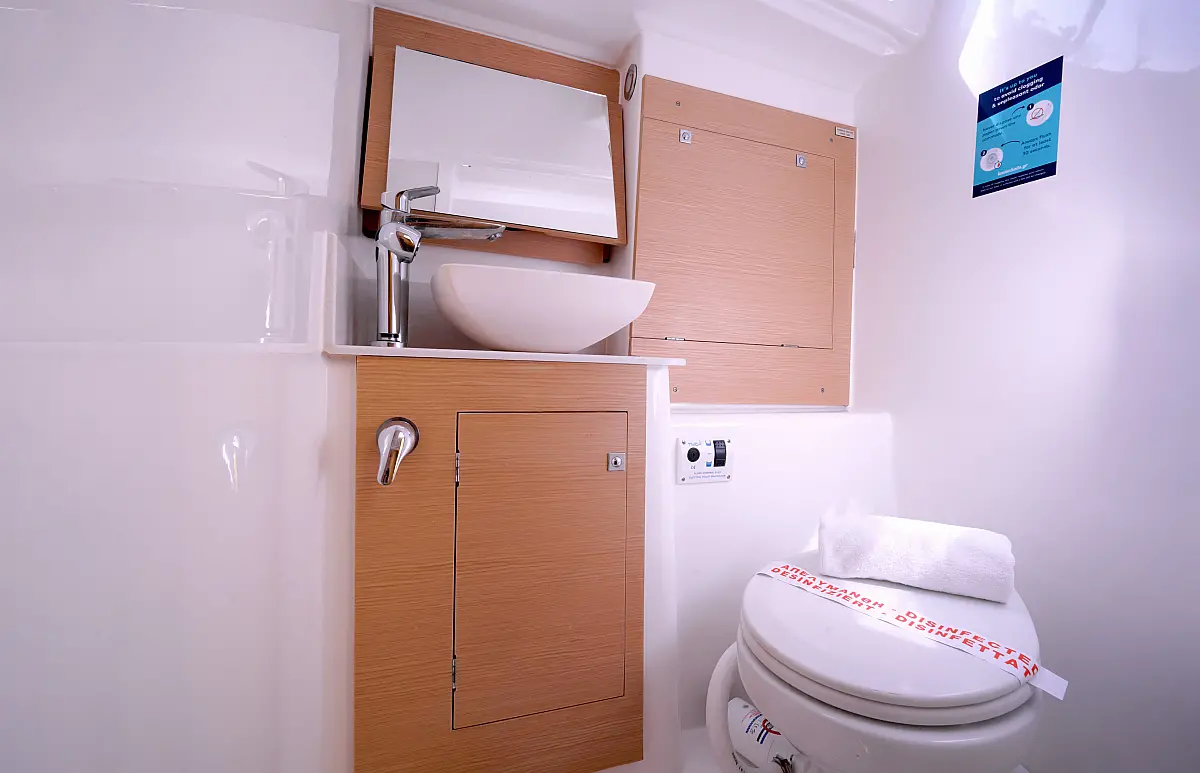Klimaanlage, Umwandelbarer Tisch, Sprayhood, Fäkalientank, Bimini, Beiboot, Lautsprecher im Cockpit, Elektrische Toilette, Solar-Panele, Cockpit-Kissen, Teak Cockpit, Grill im Cockpit