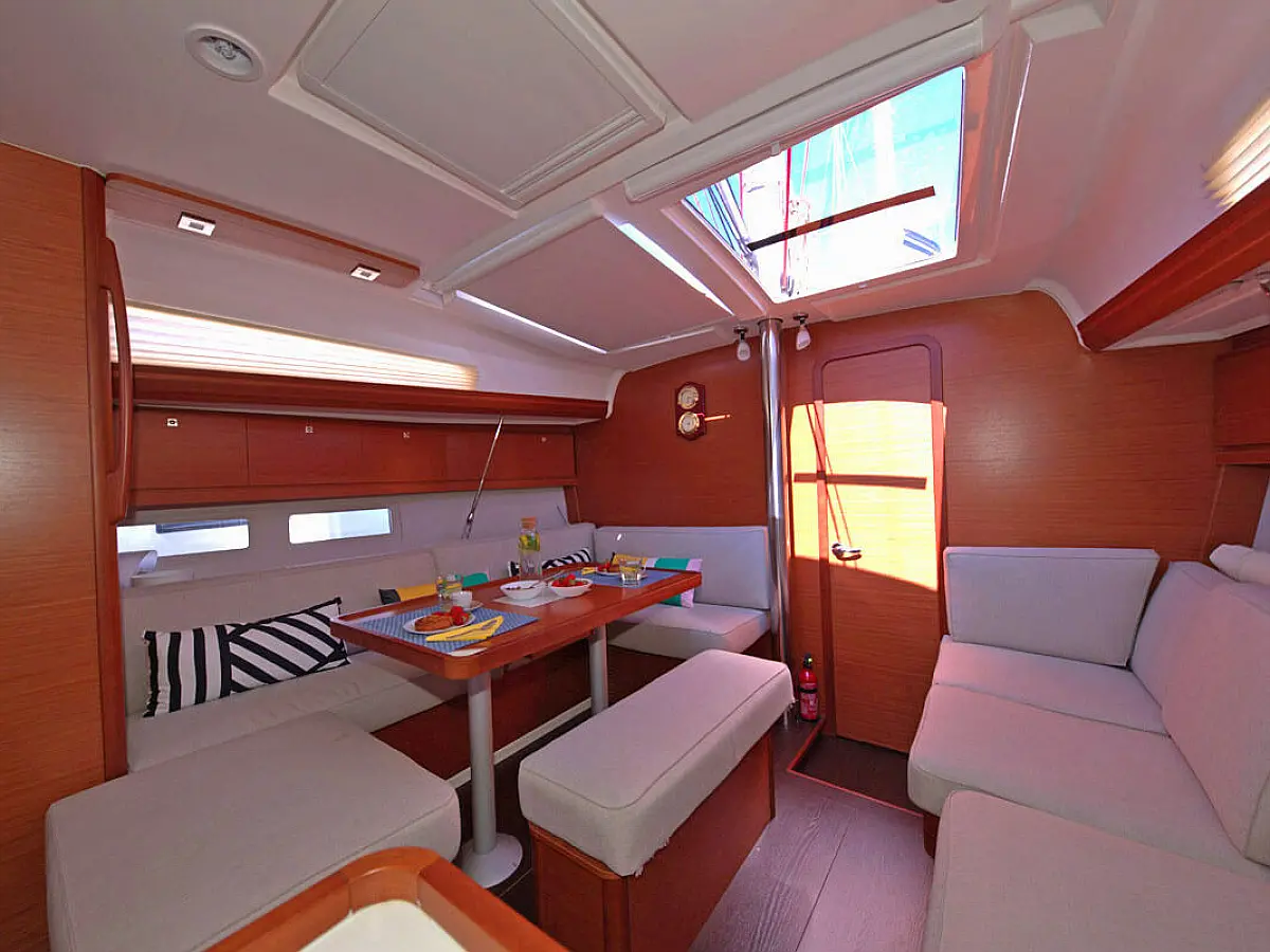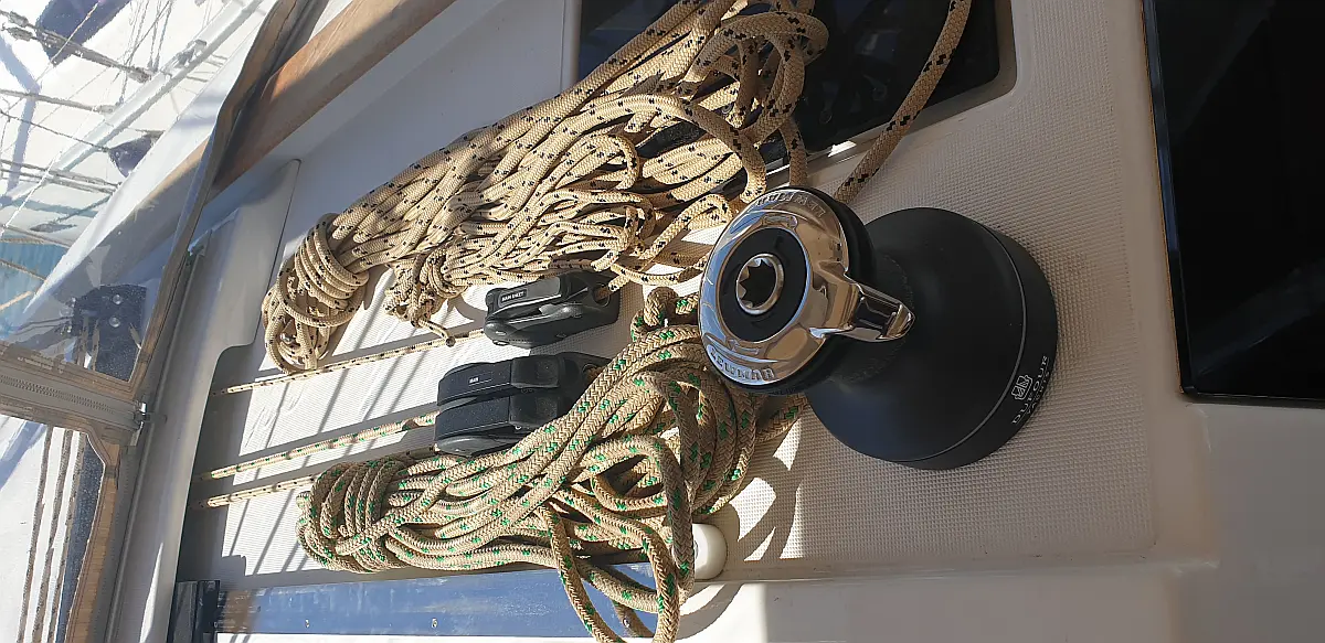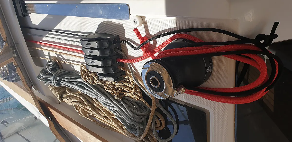 Bimini, Sprayhood, Außenbordmotor, Kühlschrank, Teak Cockpit, Elektrische Toilette, Heizung, Solar-Panele, Cockpit-Kissen