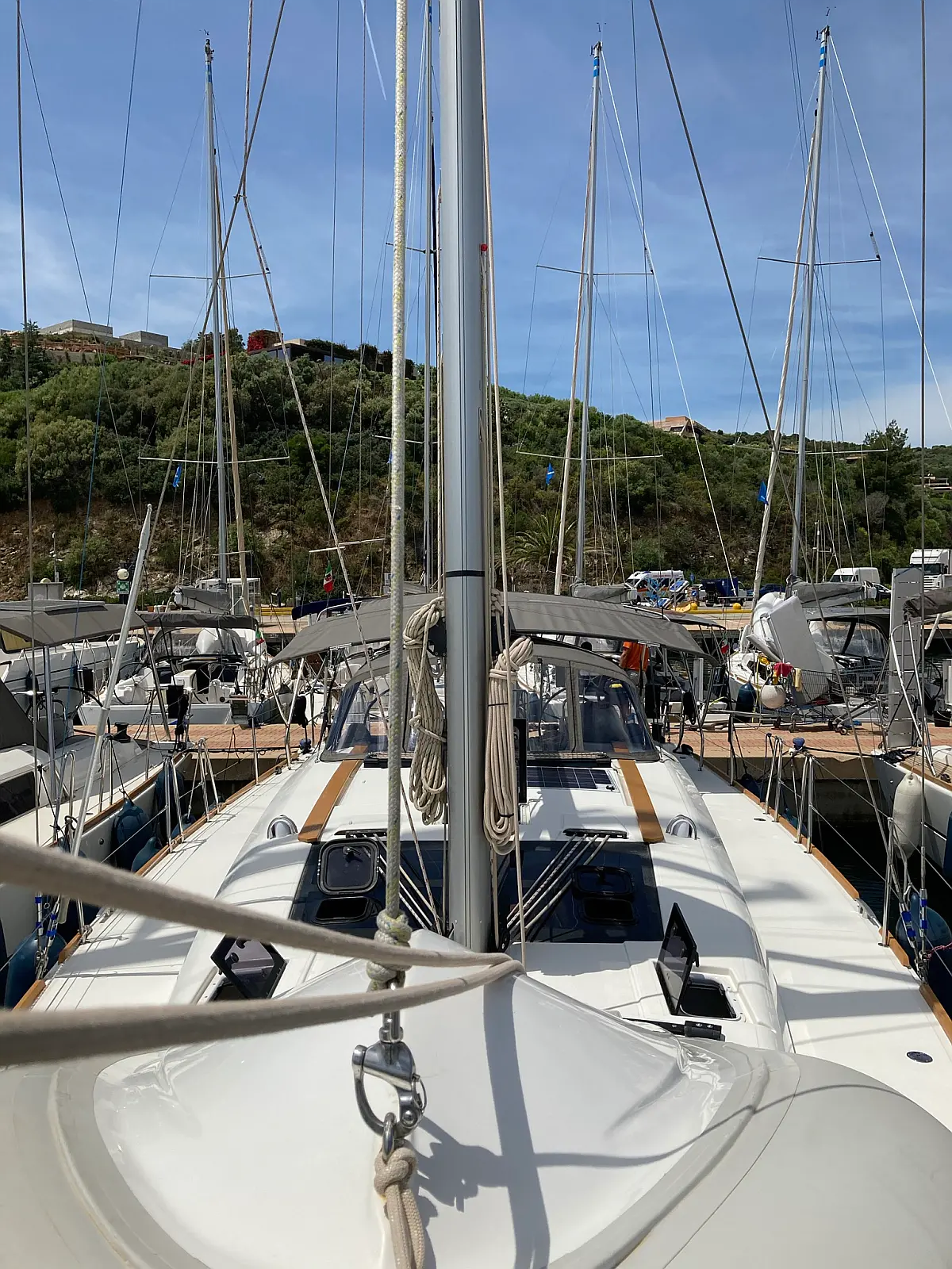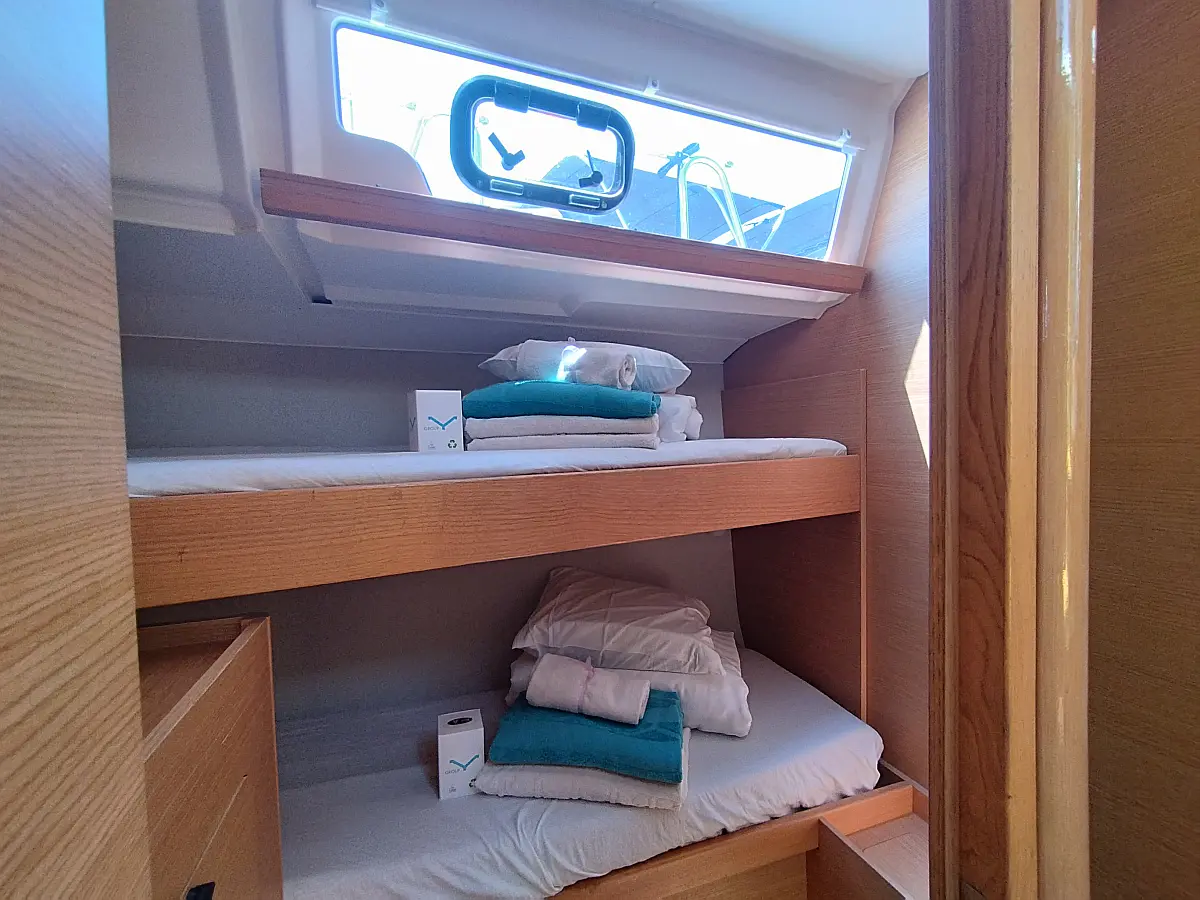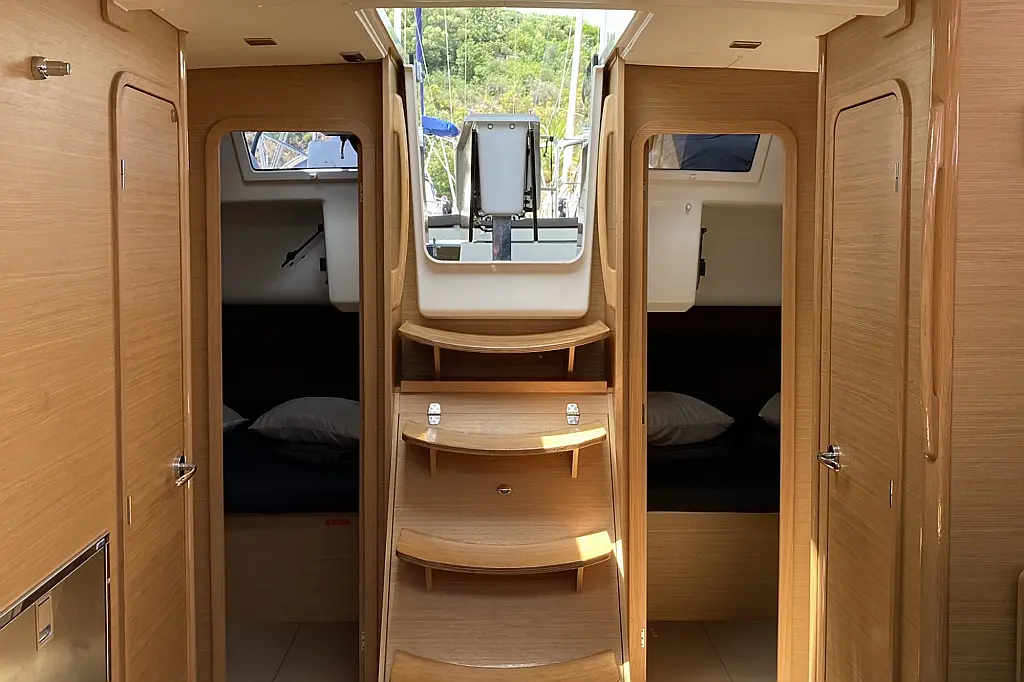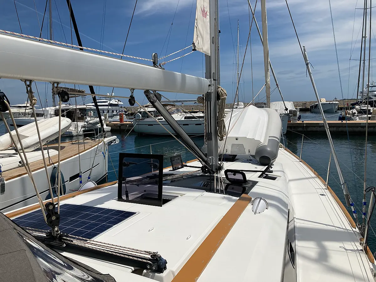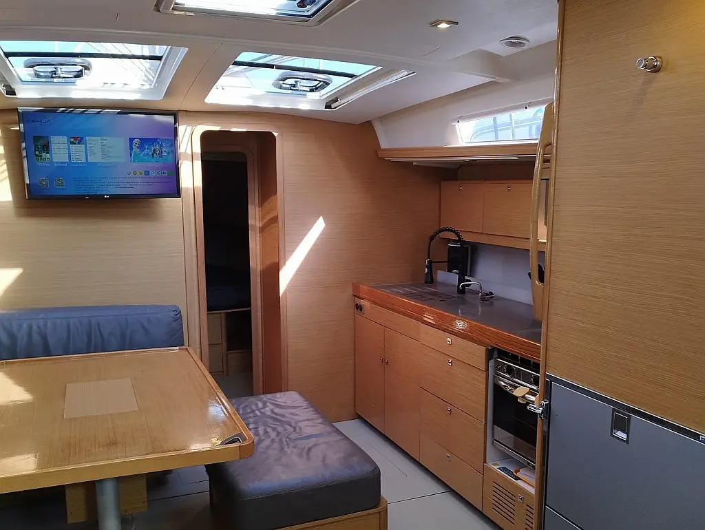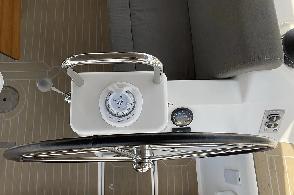 Teak Cockpit, Cockpit-Kissen, Grill im Cockpit, Kühlschrank, Elektrische Toilette, Elektrische Winch (Segel), Hydraulische Gangway, Inverter, Badeplattform, Solar-Panele