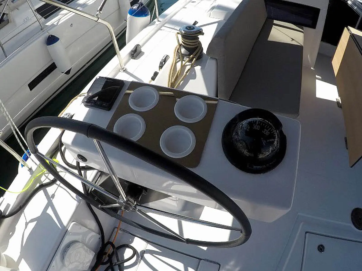 Heizung, Grill im Cockpit, Kühlschrank, Cockpit-Kissen, Sprayhood, Außenbordmotor, Beiboot, Wi-Fi und Internet