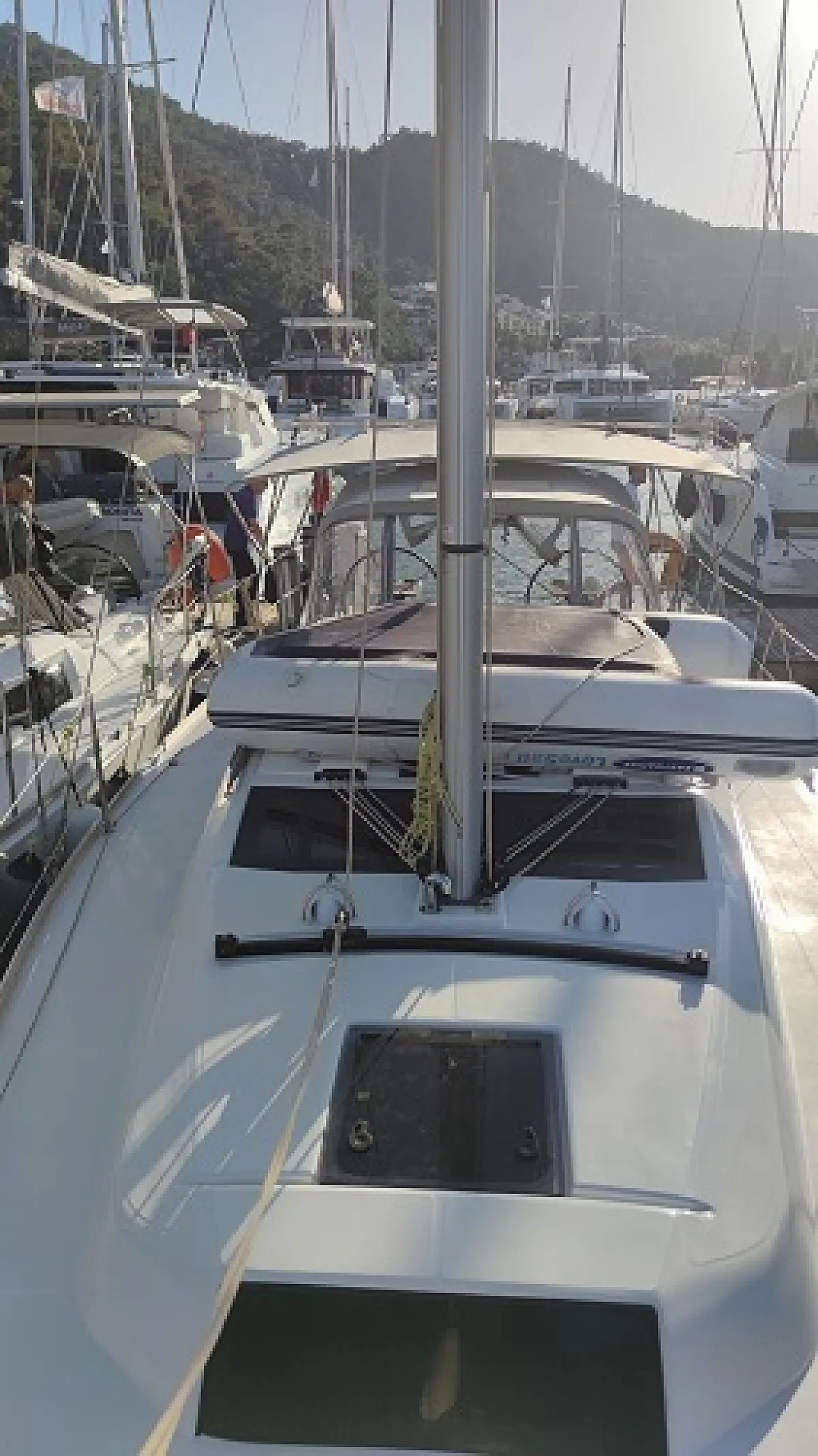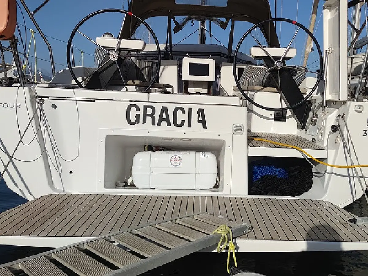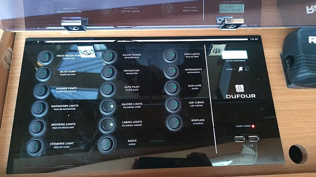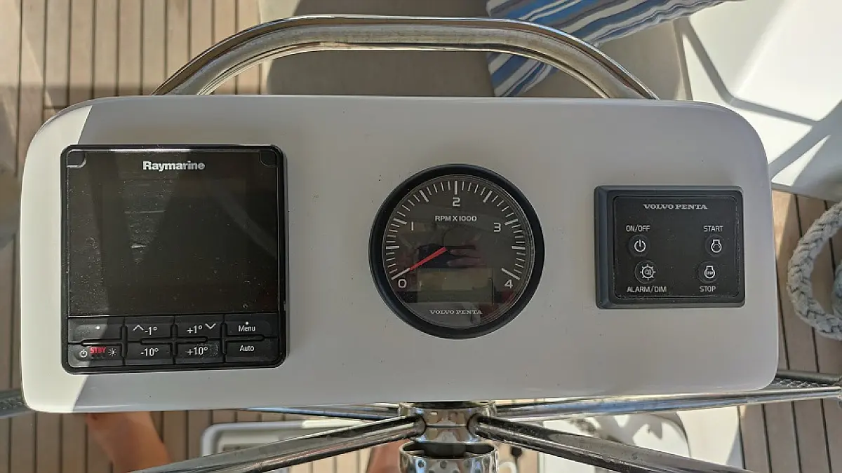 Kühlschrank, Bimini, Cockpit-Kissen, Solar-Panele, Inverter, Beiboot, Außenbordmotor, Heizung