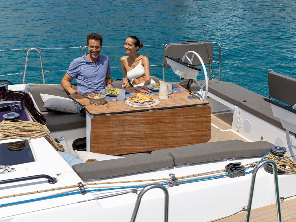 Kühlschrank, Bimini, Cockpit-Kissen, Sprayhood, Inverter, Wassermacher, Beiboot