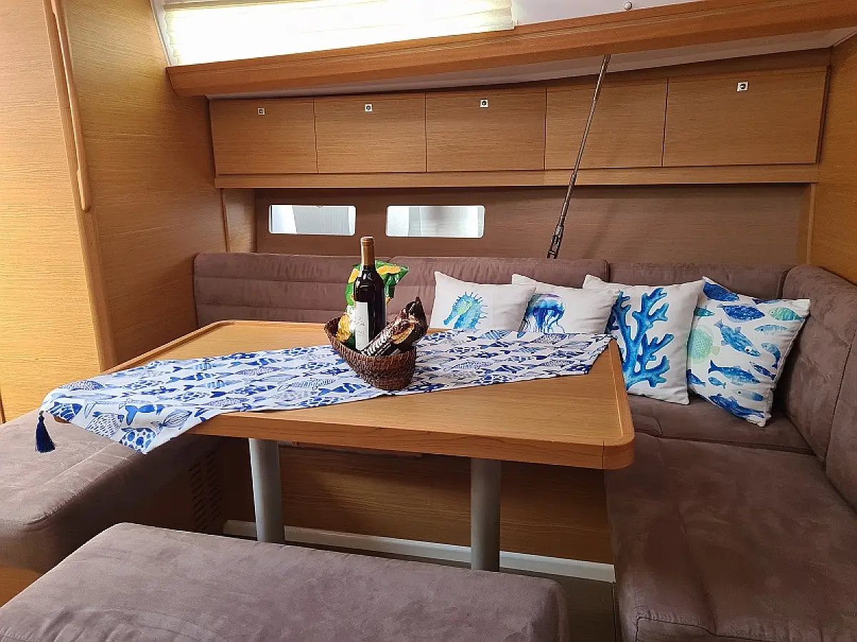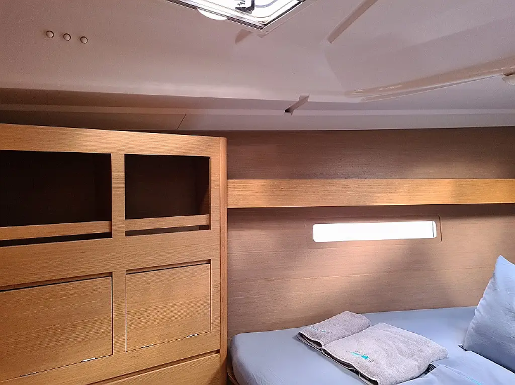 Bimini, Elektrische Winch (Segel), Kühlschrank, Lautsprecher im Cockpit, Inverter, Beiboot, Teak Cockpit, Sprayhood, Solar-Panele