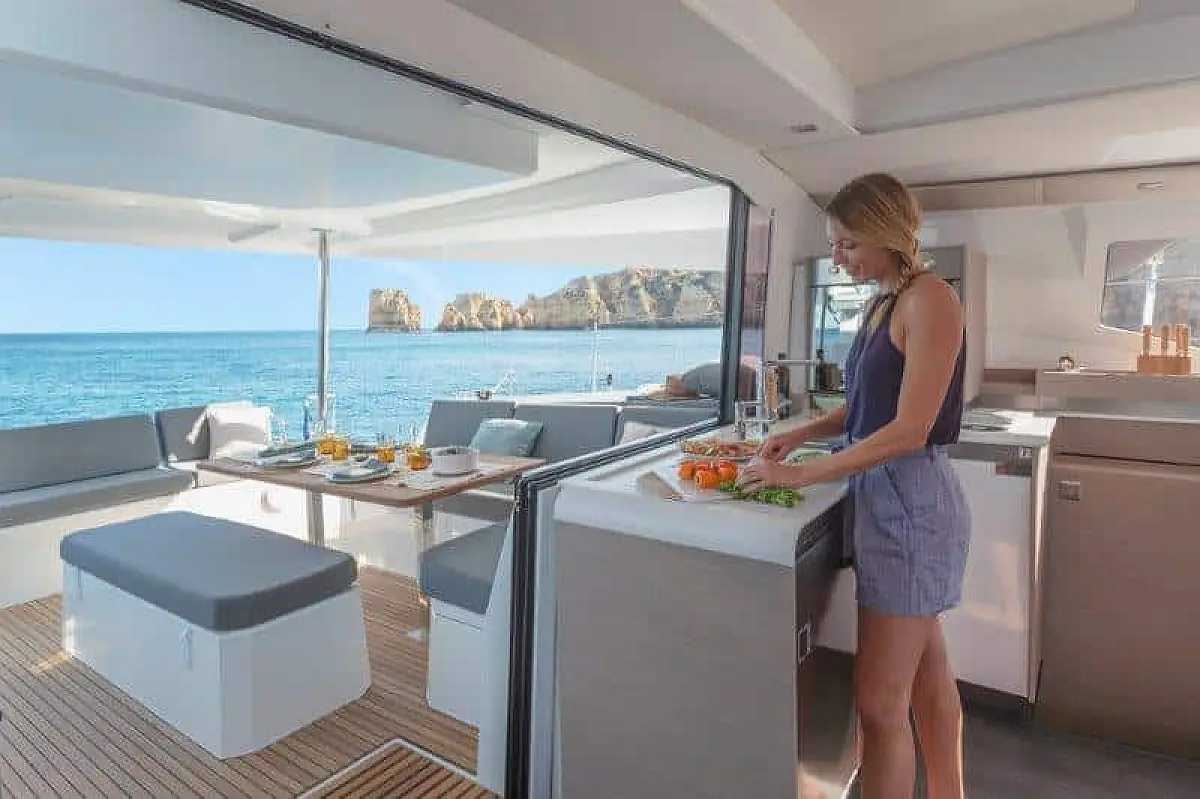 Kühlschrank, Bimini, Cockpit-Kissen, Teak Cockpit, Inverter, Solar-Panele, Beiboot