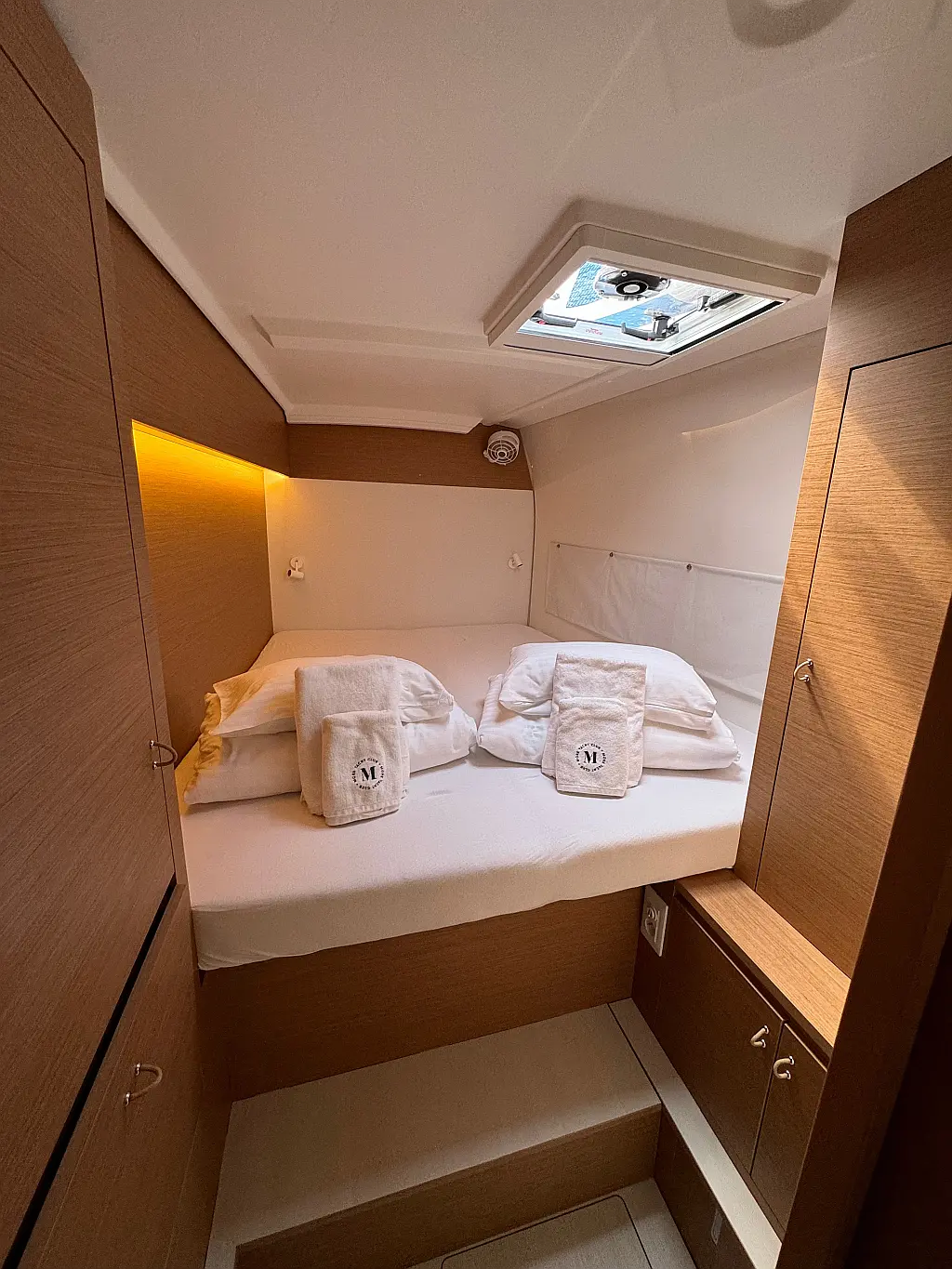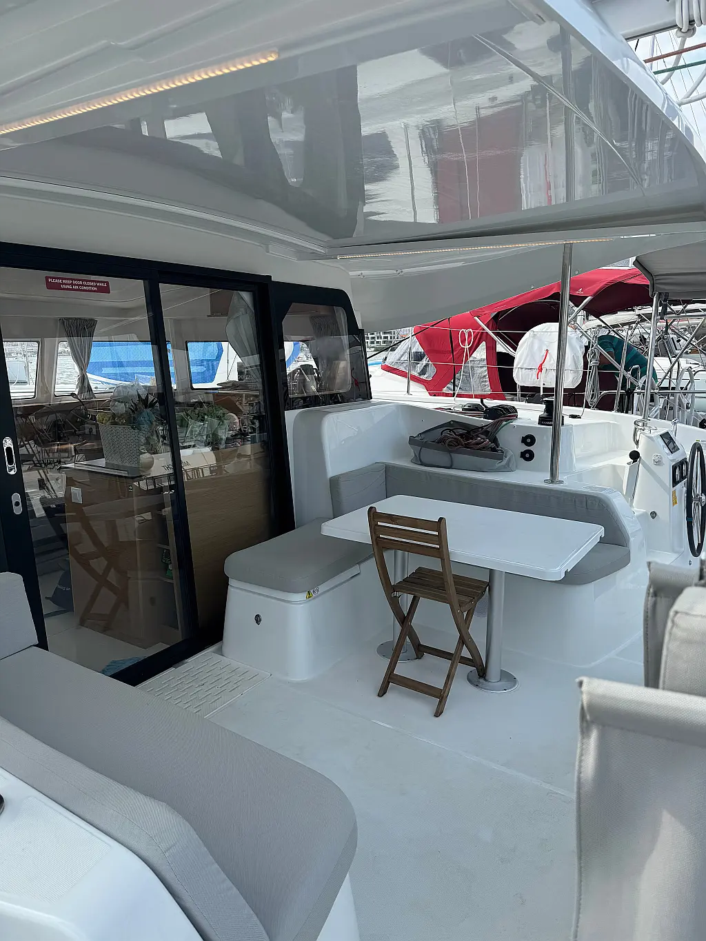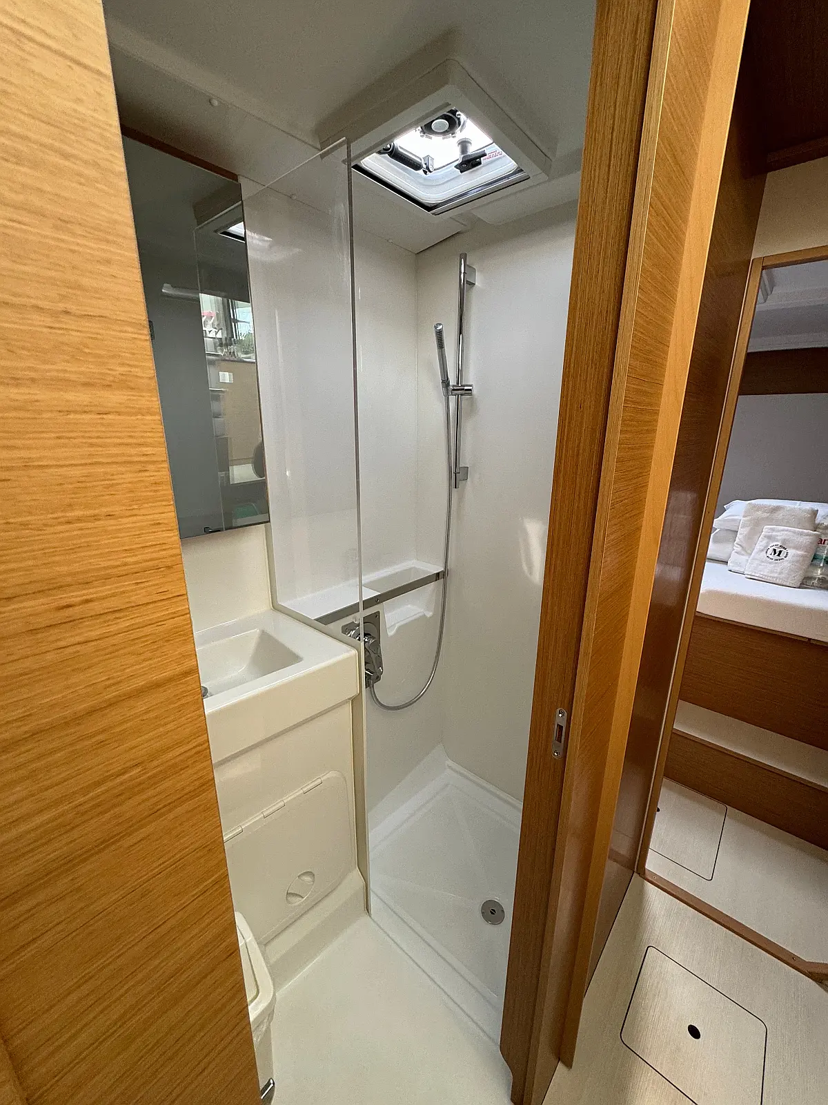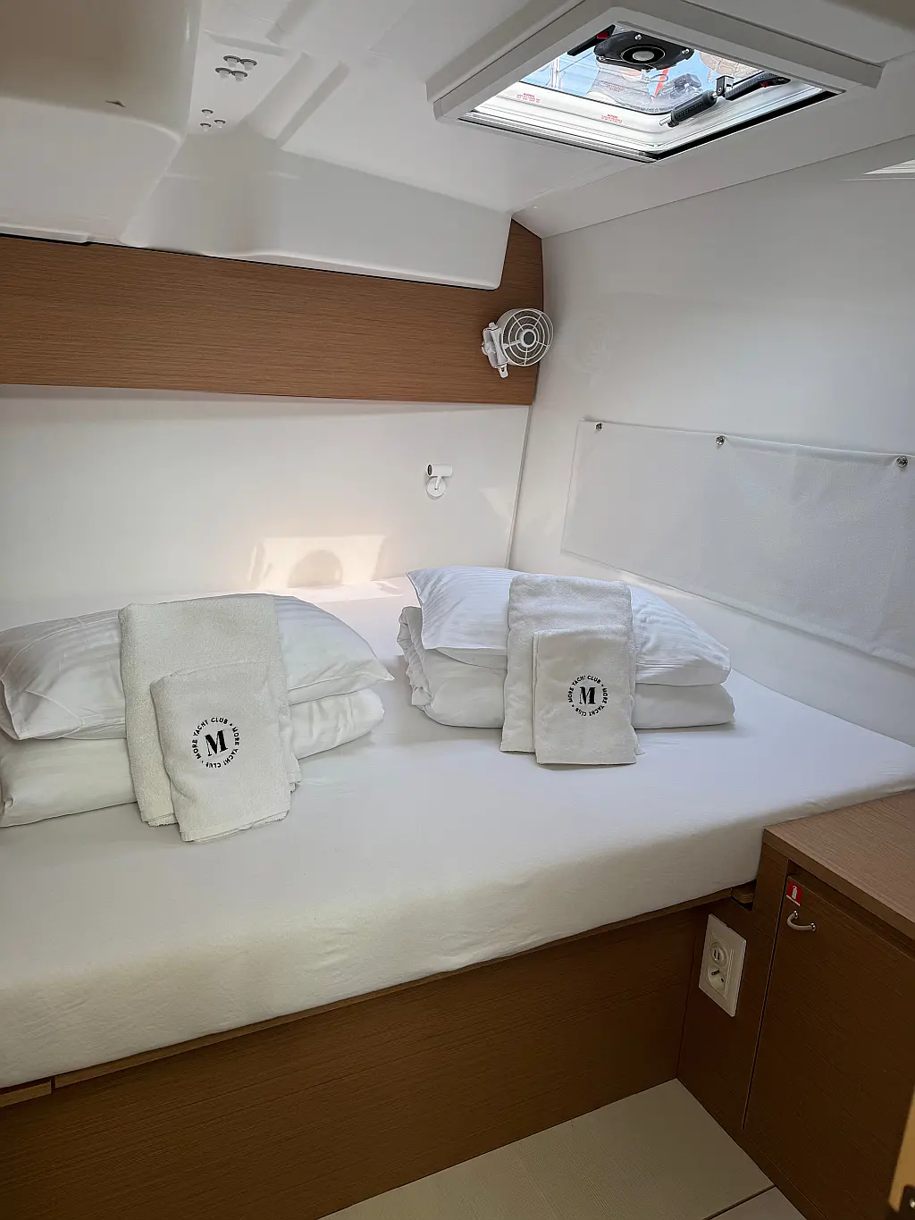 Klimaanlage, Cockpit-Kissen, Elektrische Toilette, Bimini, Kühlschrank, Generator, Beiboot, Solar-Panele, Wi-Fi und Internet, Elektrische Winch (Segel)