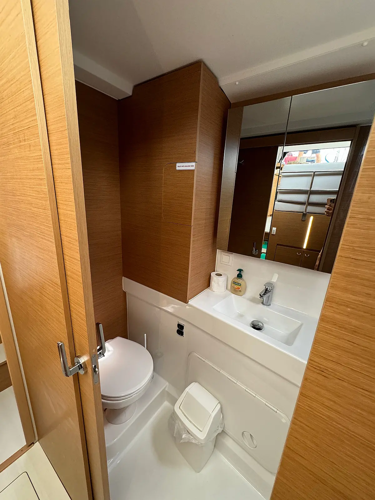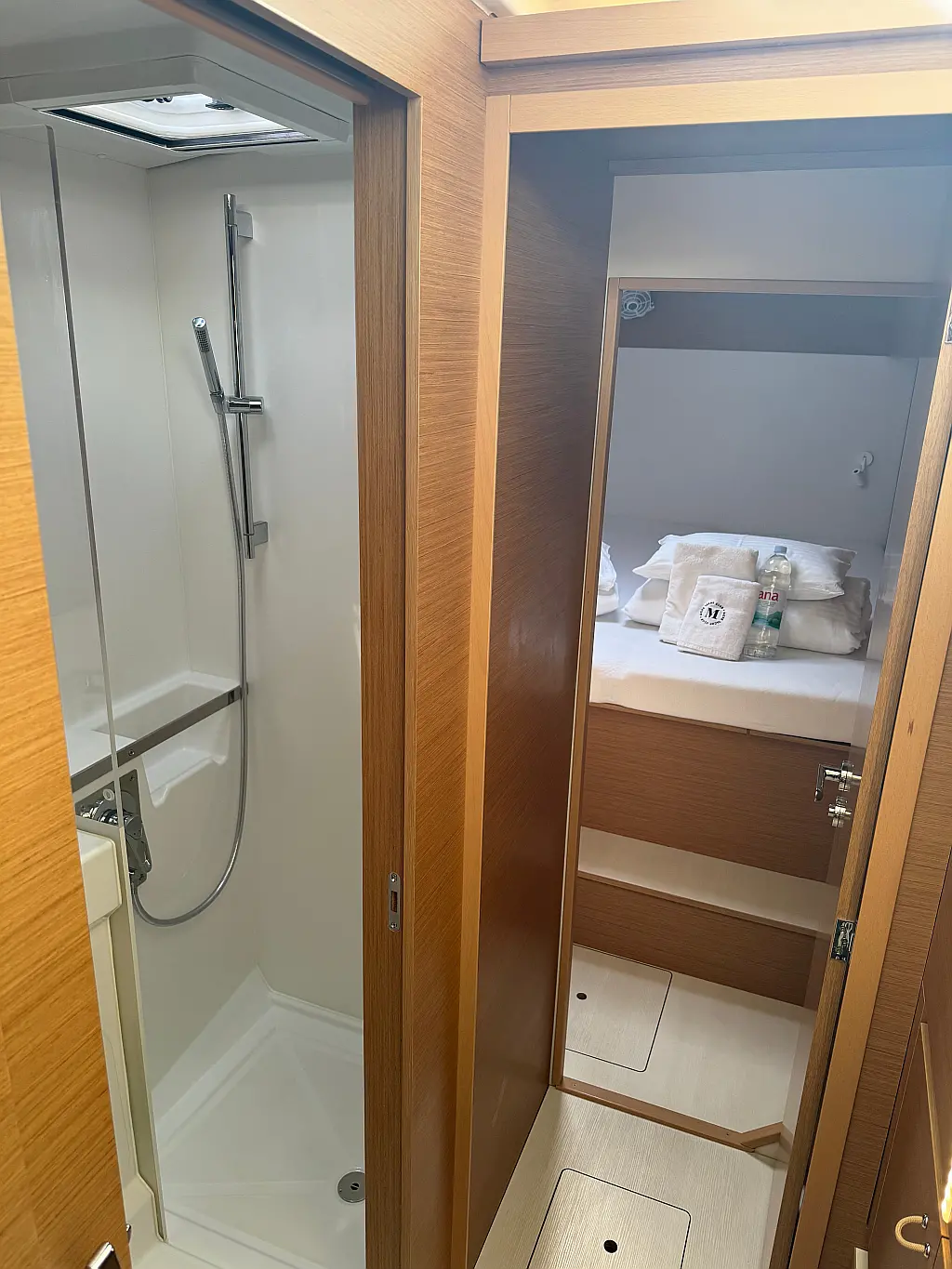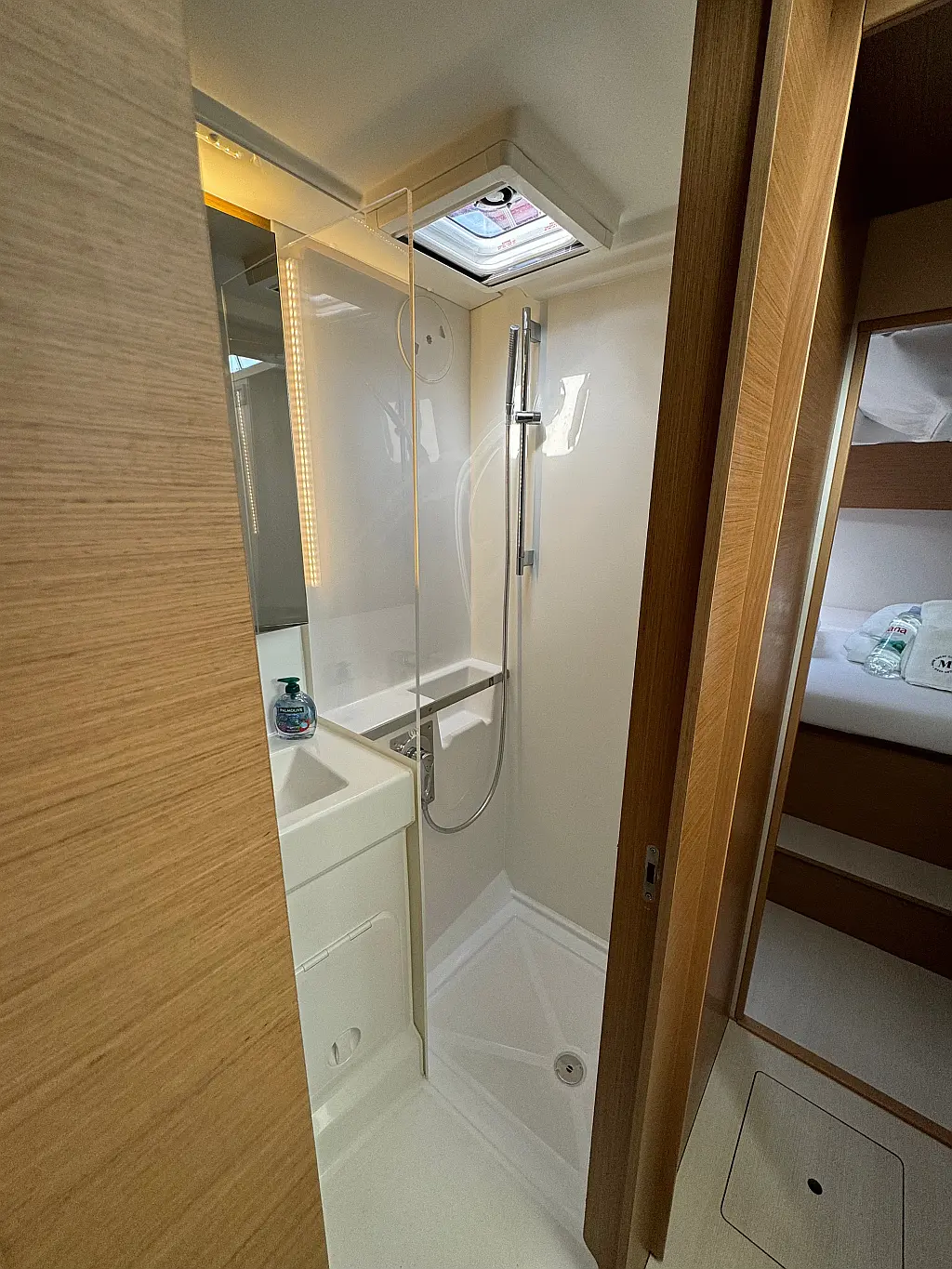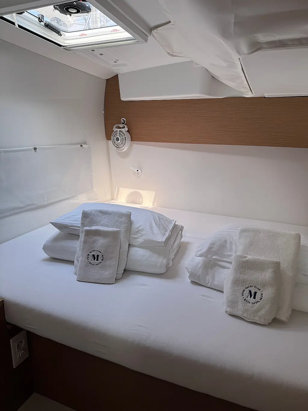 Klimaanlage, Cockpit-Kissen, Elektrische Toilette, Bimini, Kühlschrank, Generator, Beiboot, Solar-Panele, Wi-Fi und Internet, Elektrische Winch (Segel)
