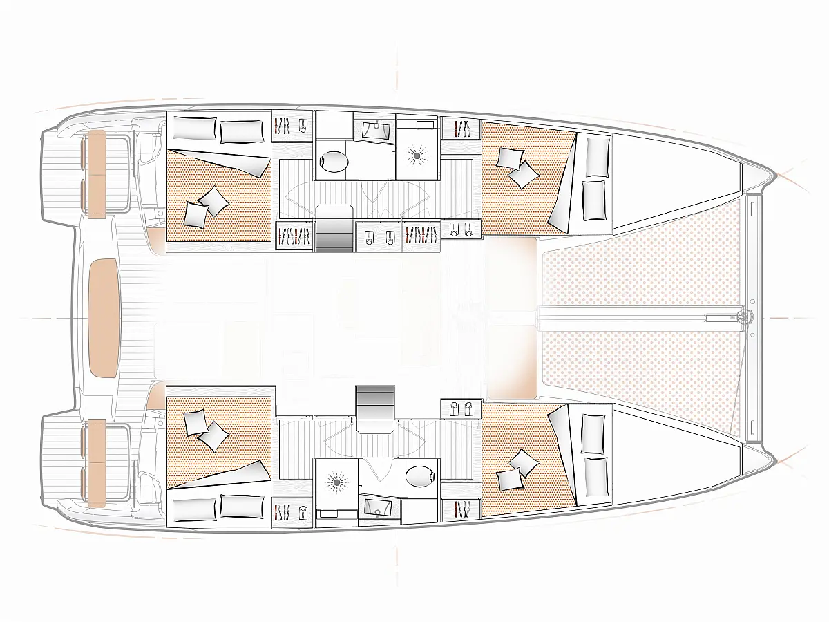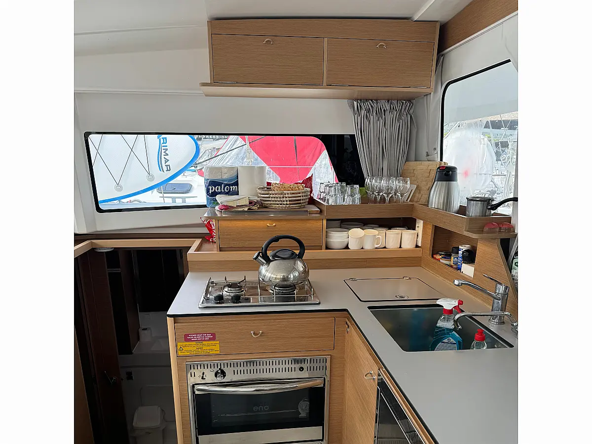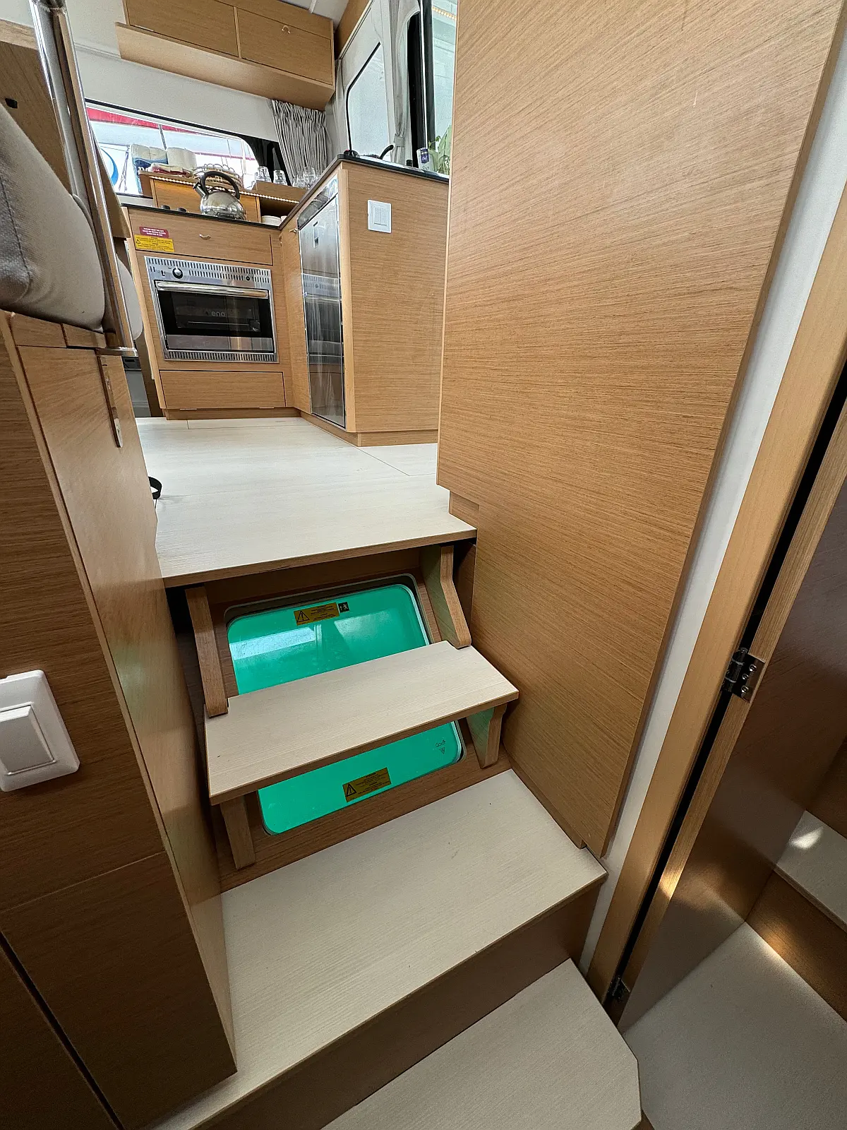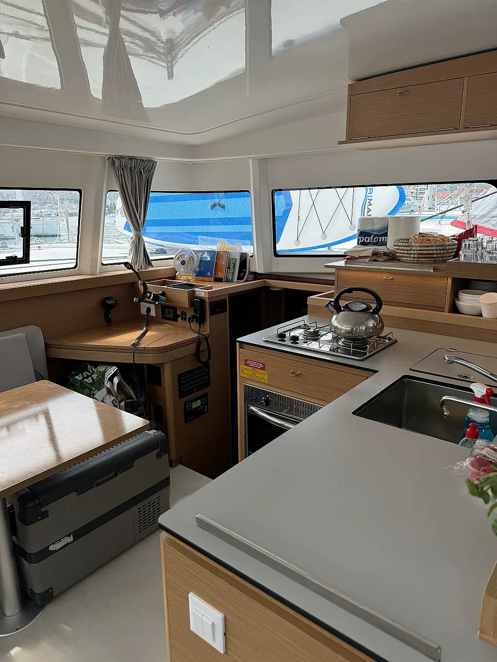 Klimaanlage, Cockpit-Kissen, Elektrische Toilette, Bimini, Kühlschrank, Generator, Beiboot, Solar-Panele, Wi-Fi und Internet, Elektrische Winch (Segel)