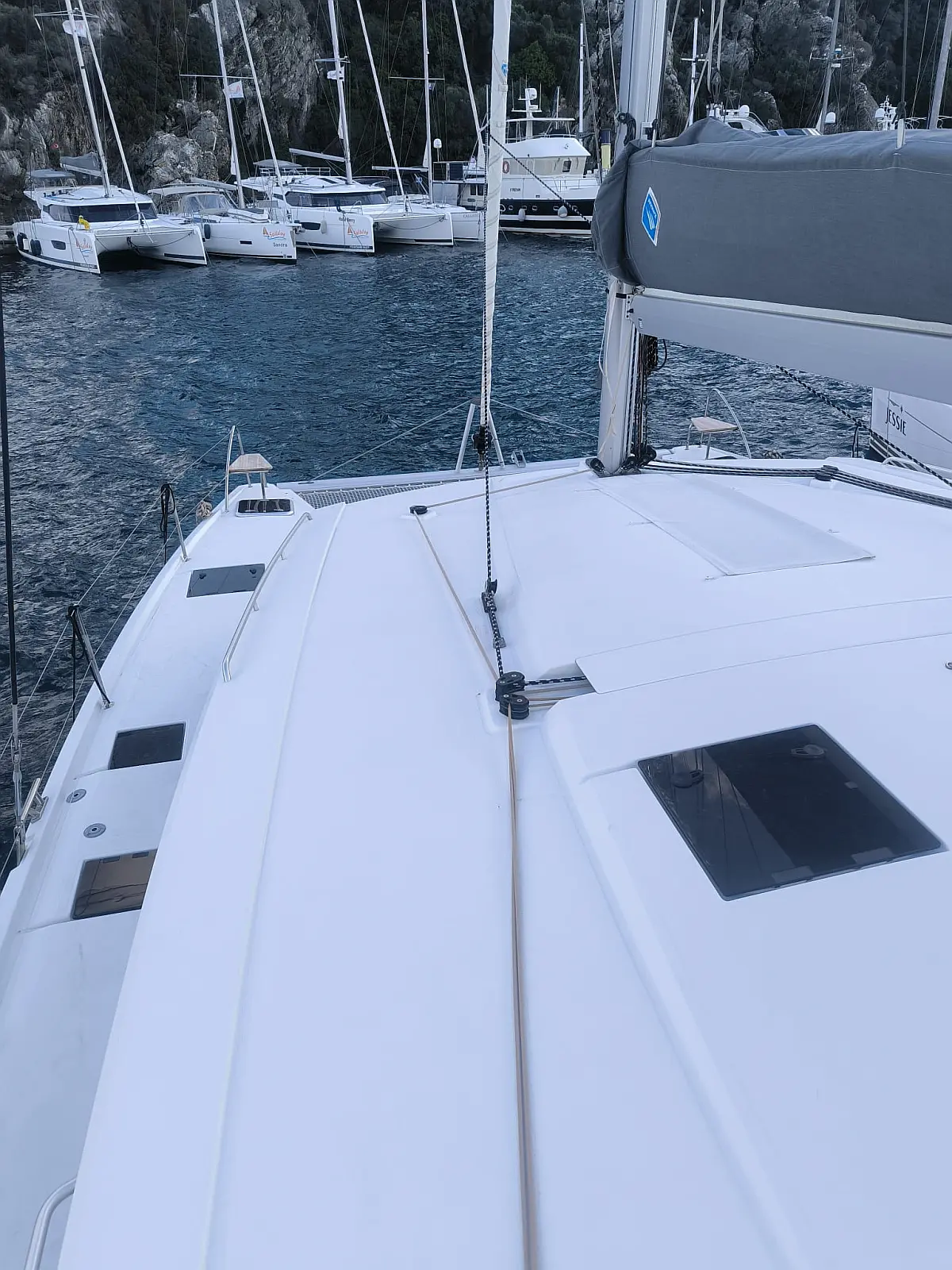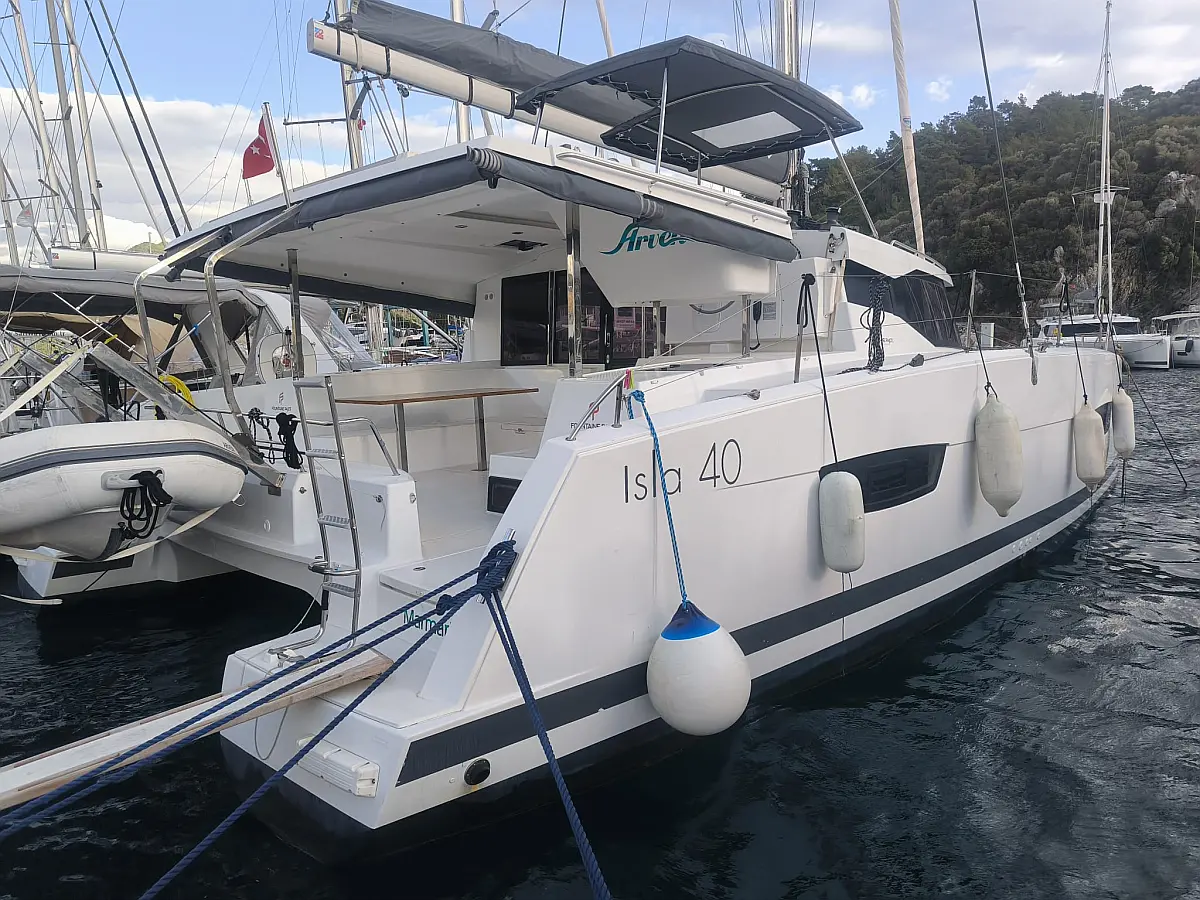 Solar-Panele, Außenbordmotor, Kühlschrank, Beiboot, Inverter, Elektrische Toilette, Heizung, Elektrische Winch (Segel), Bimini