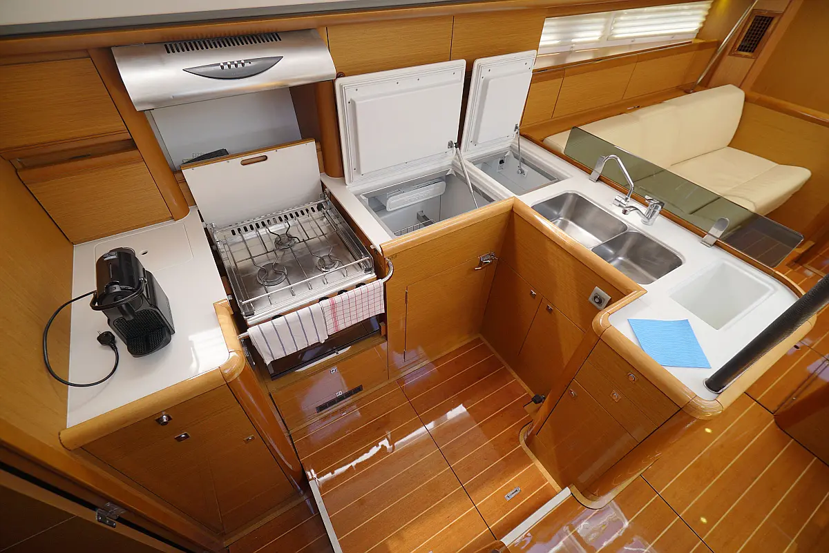 Beiboot, Elektrische Winch (Segel), Kühlschrank, Inverter, Generator, Heizung, Kaffeemaschine, Klimaanlage, Elektrische Toilette, Eismaschine, Sprayhood, Bimini, Solar-Panele