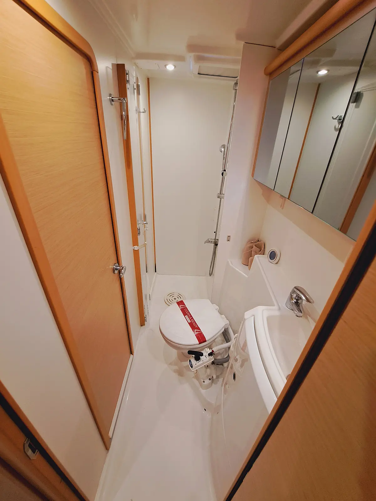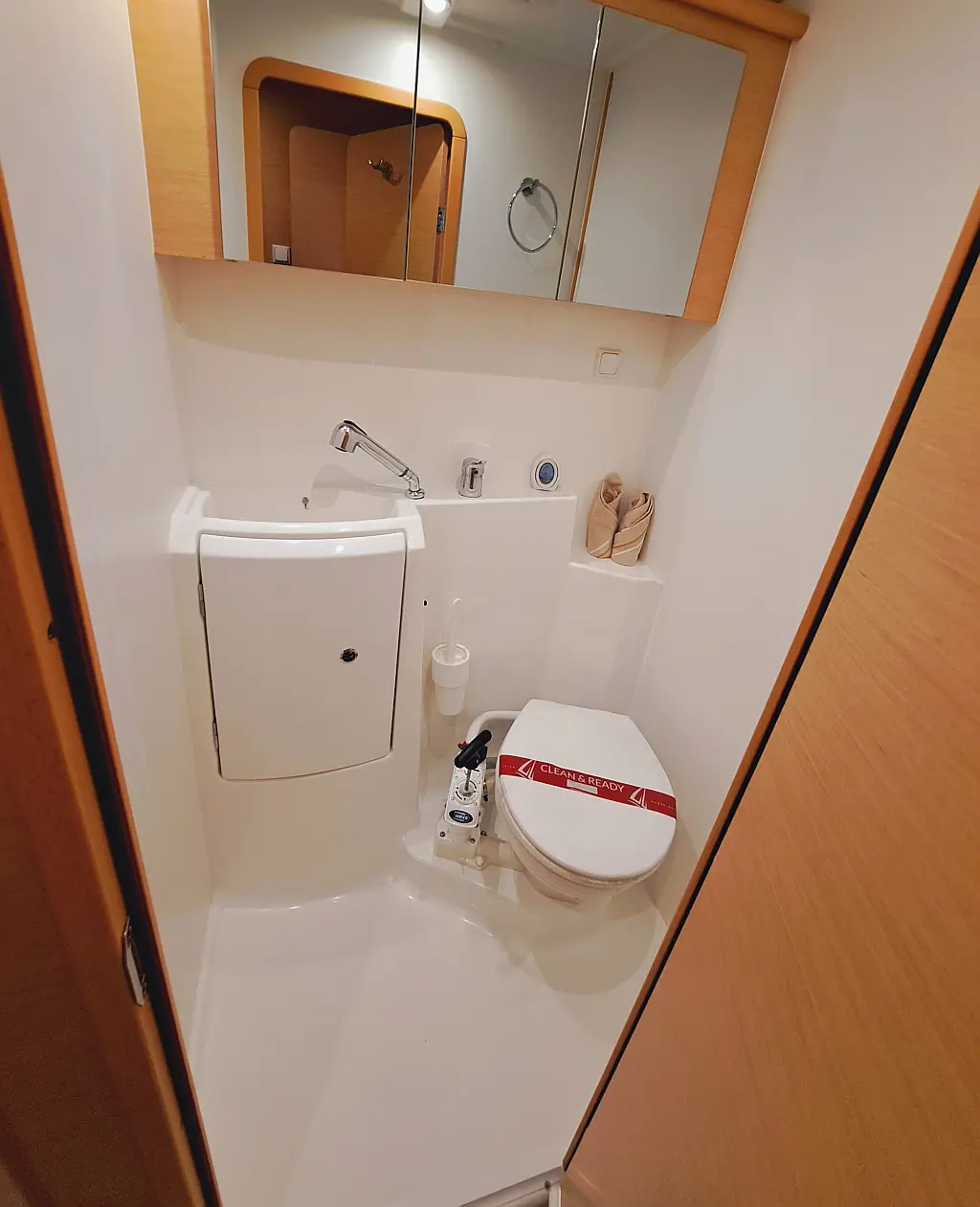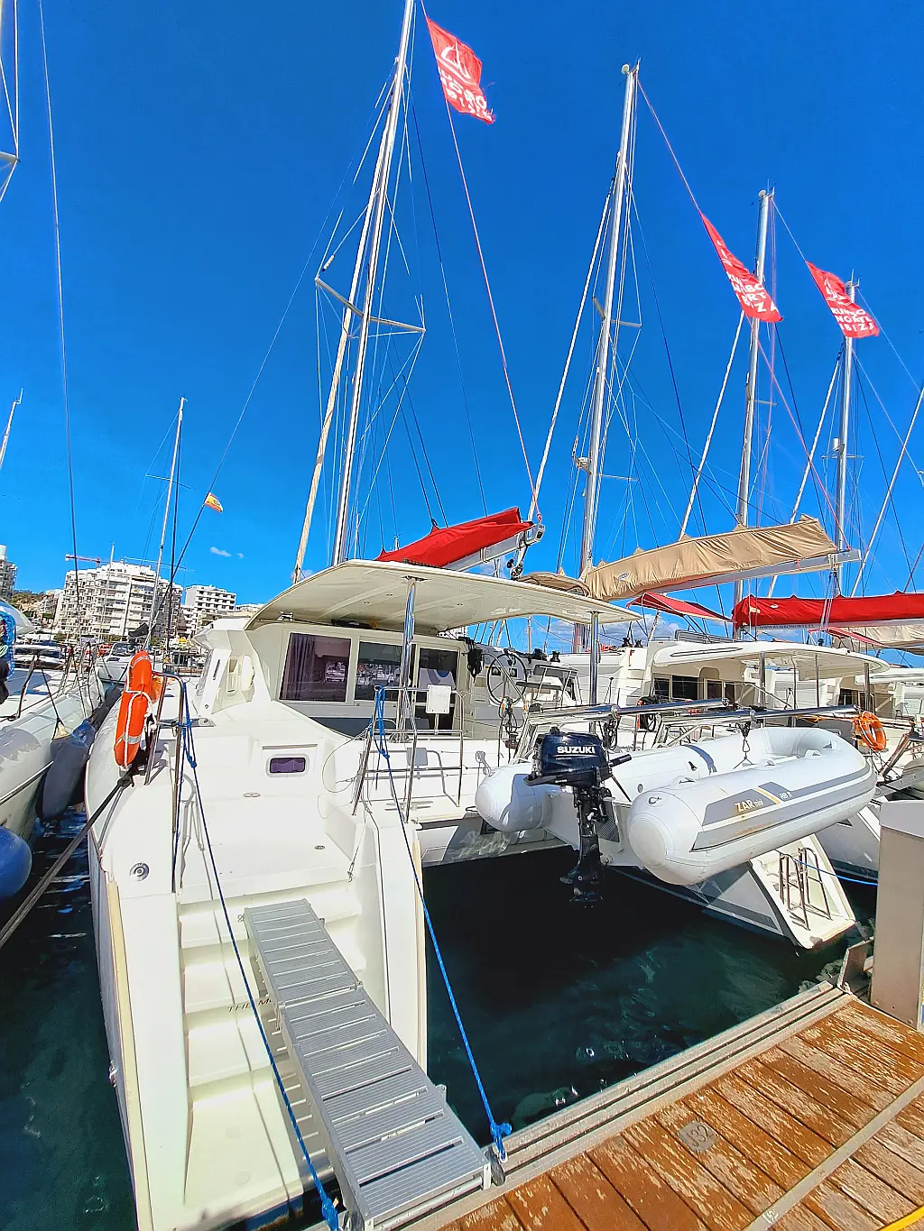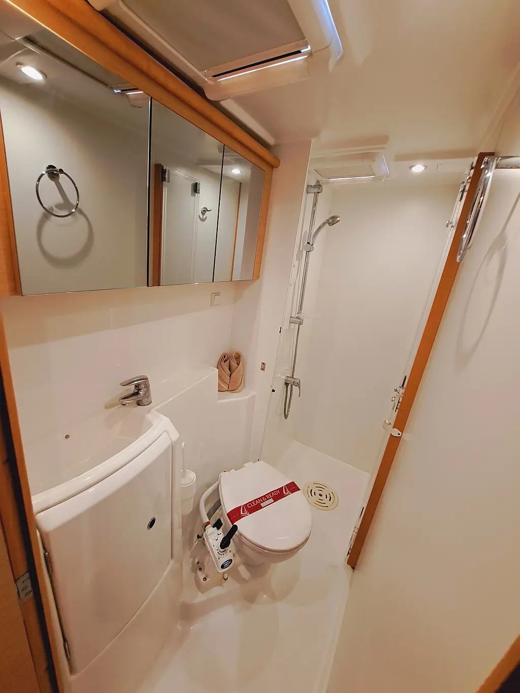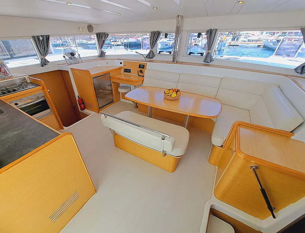 Elektrische Winch (Segel), Inverter, Lautsprecher im Cockpit, Cockpit-Kissen, Beiboot, Kühlschrank
