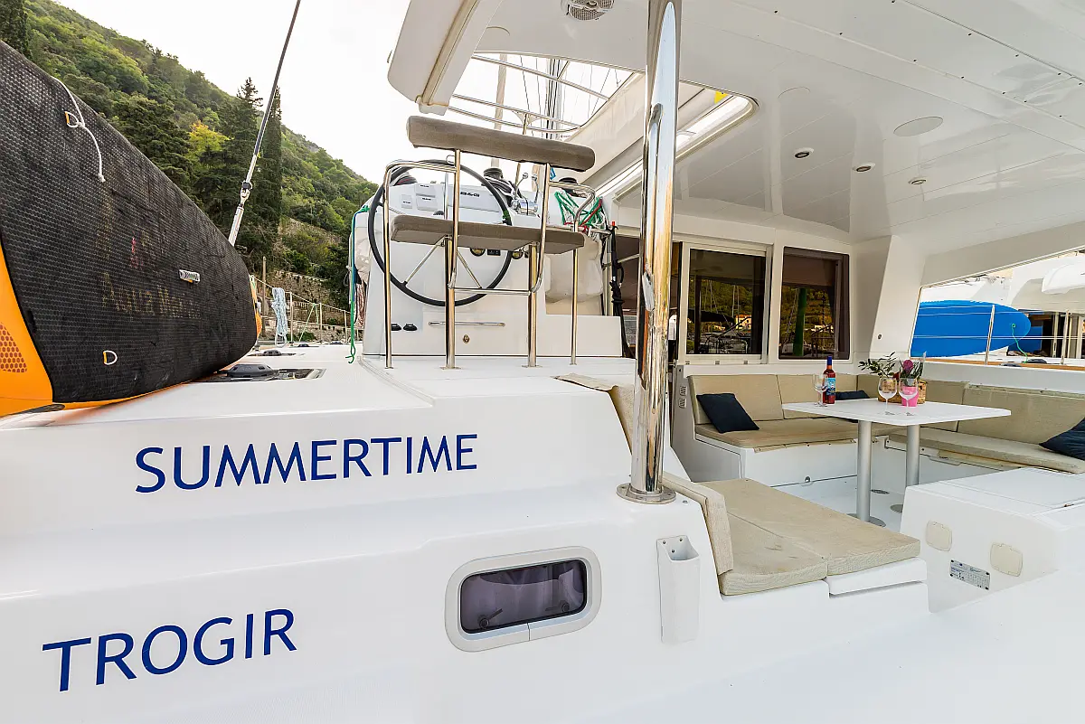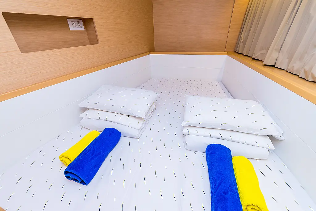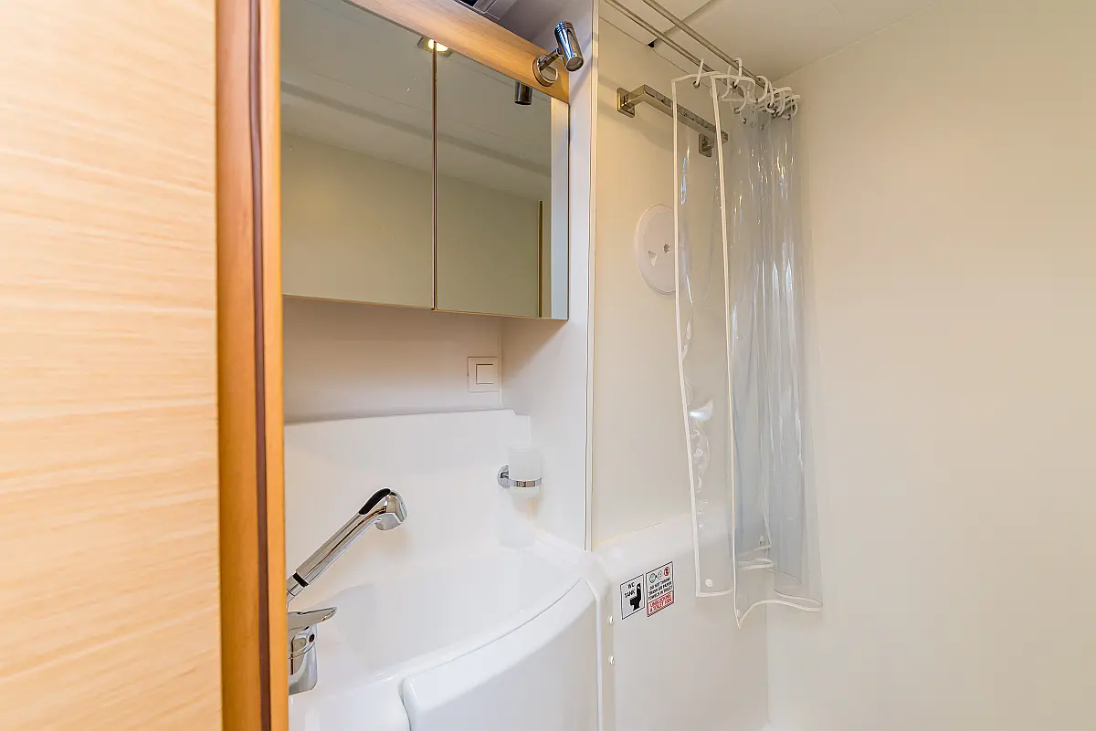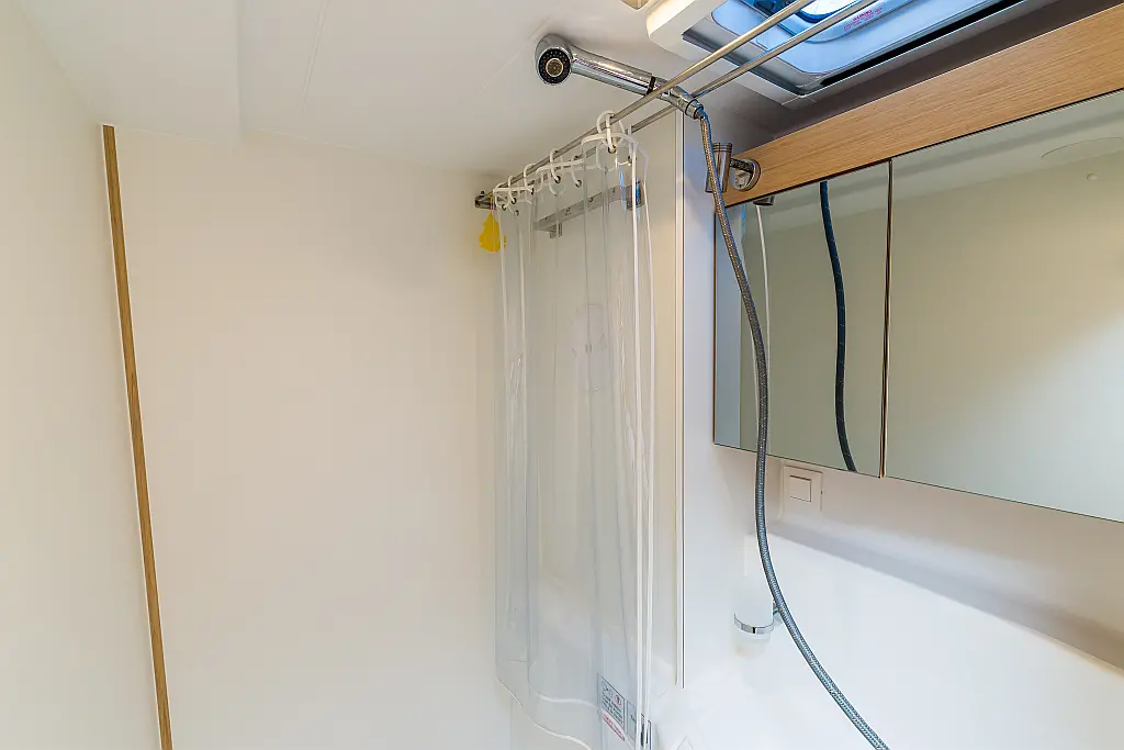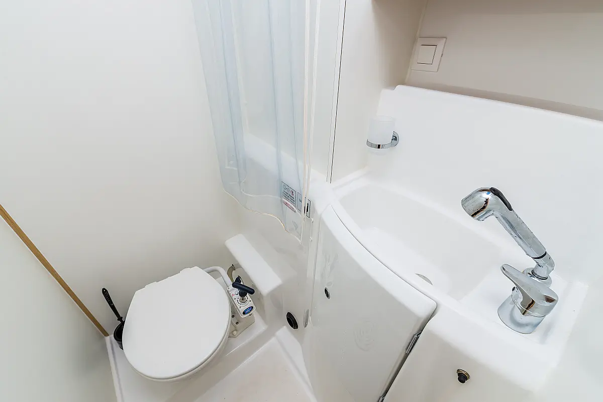 Bimini, Sprayhood, Außenbordmotor, Elektrische Winch (Segel), Heizung, Kühlschrank, Solar-Panele