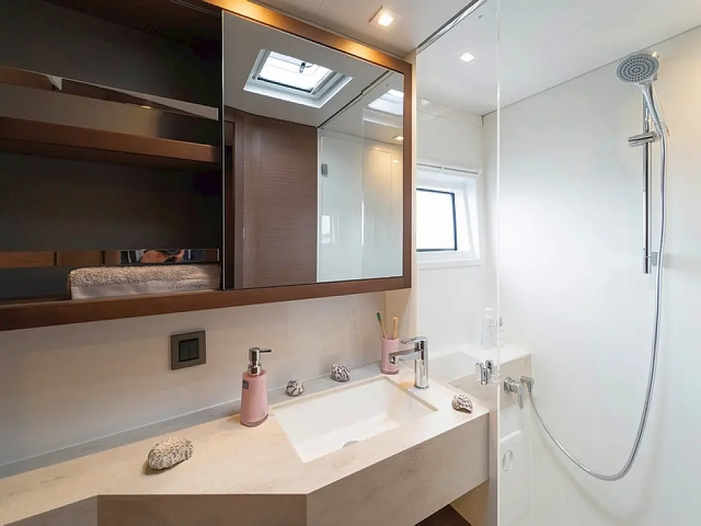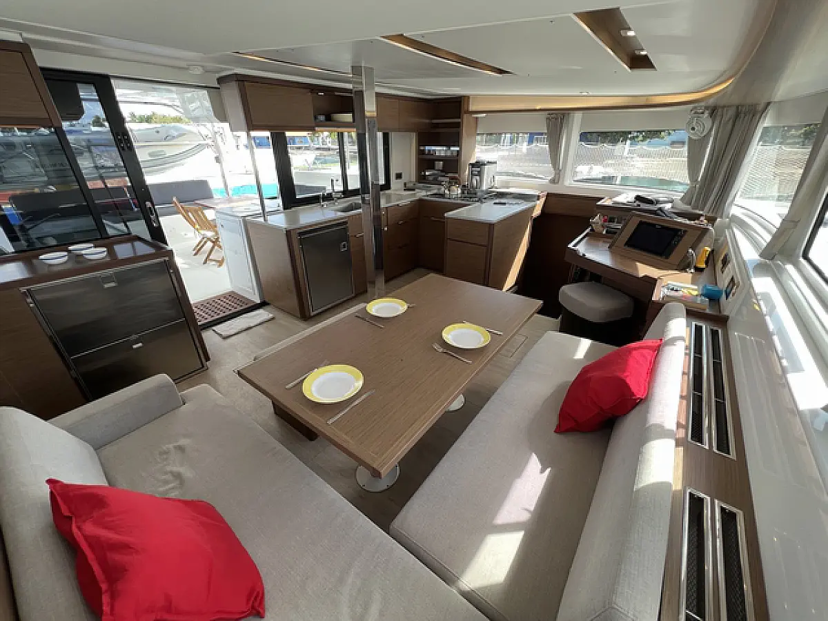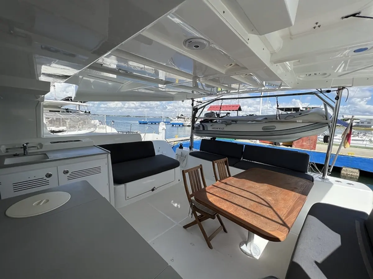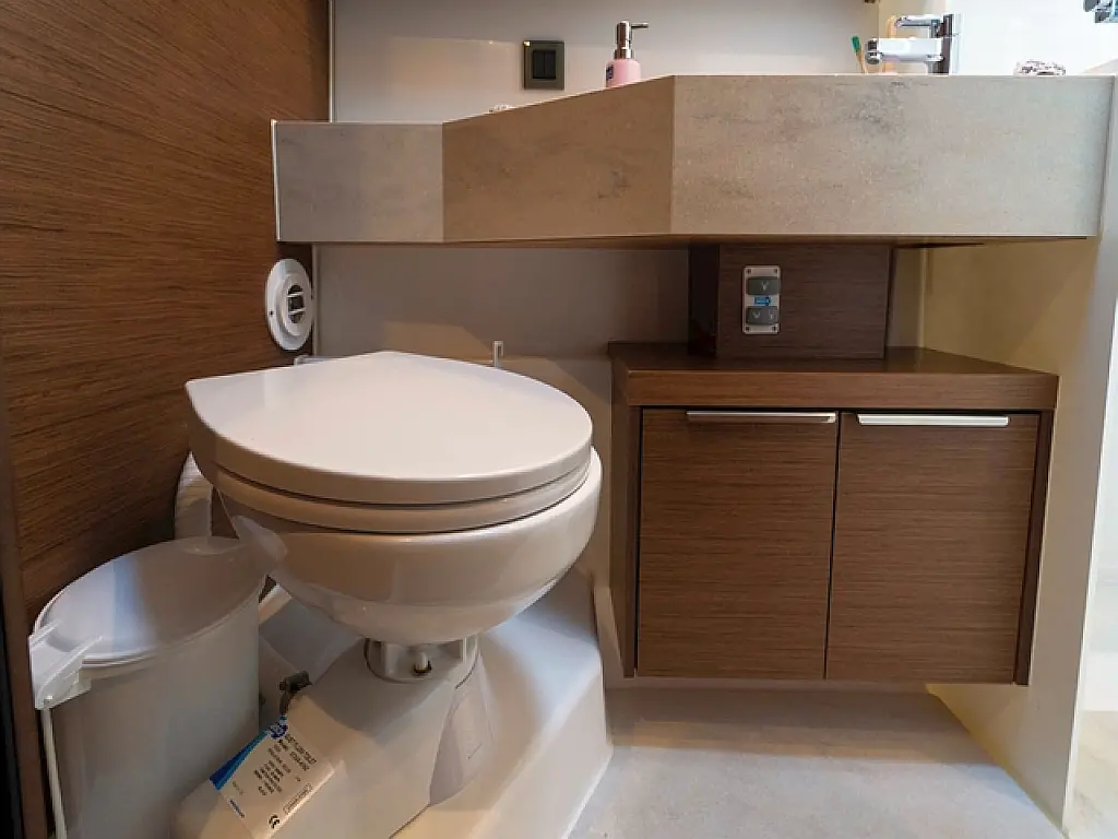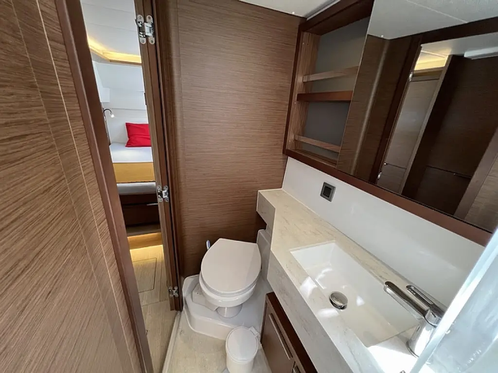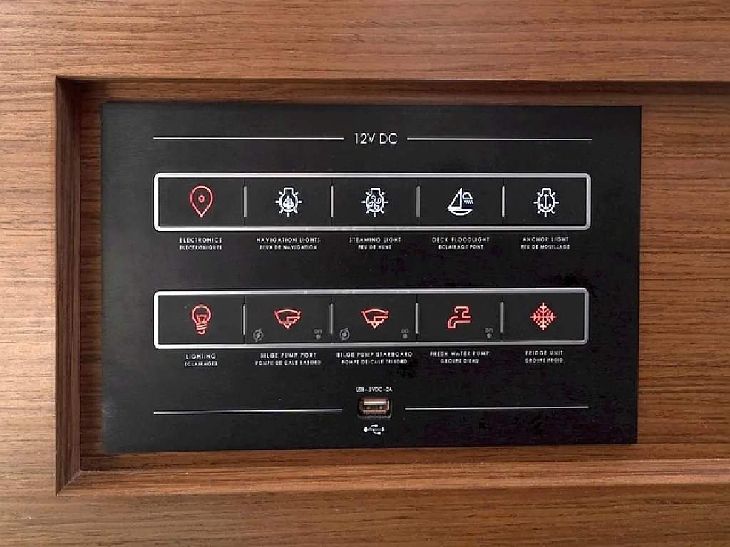 Elektrische Toilette, Klimaanlage, Bimini, Lautsprecher im Cockpit, Beiboot, Elektrische Winch (Segel), Generator, Wassermacher, Kühlschrank