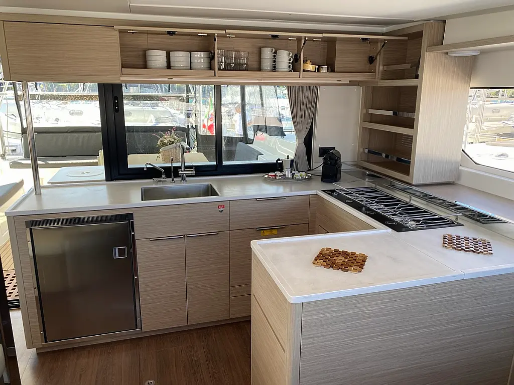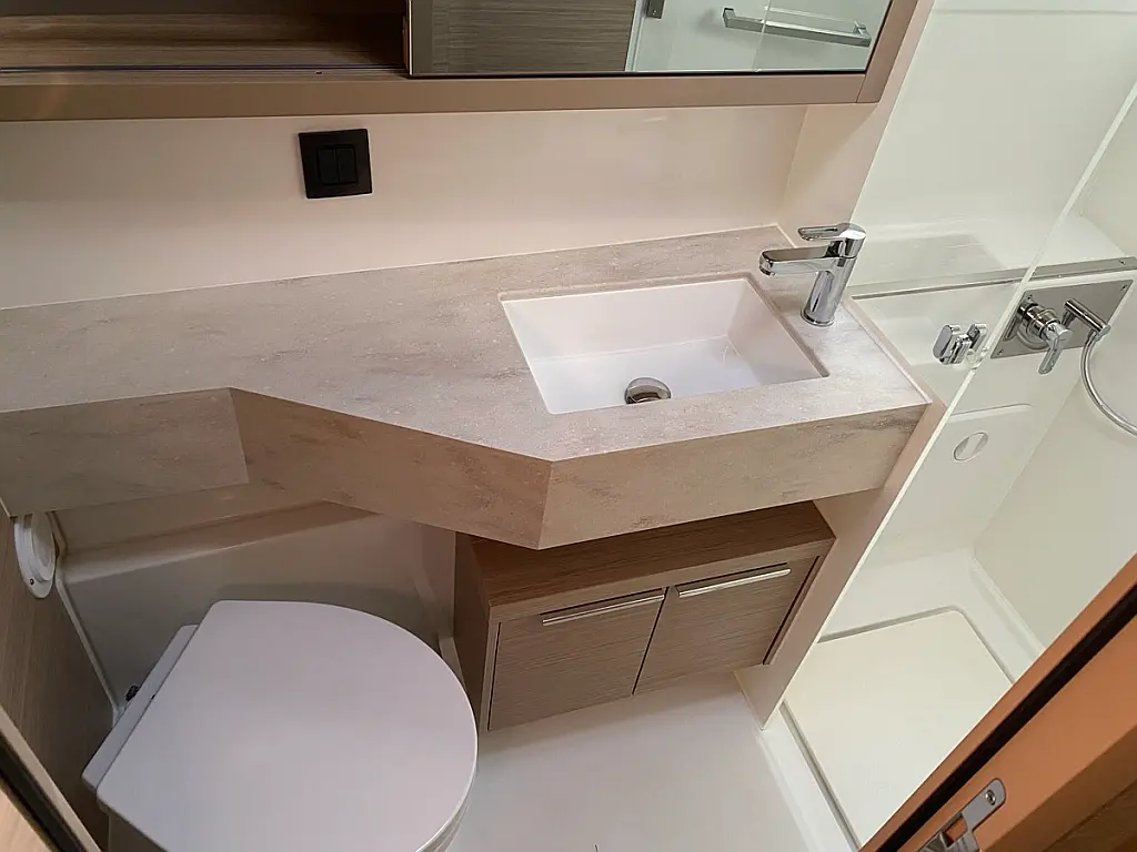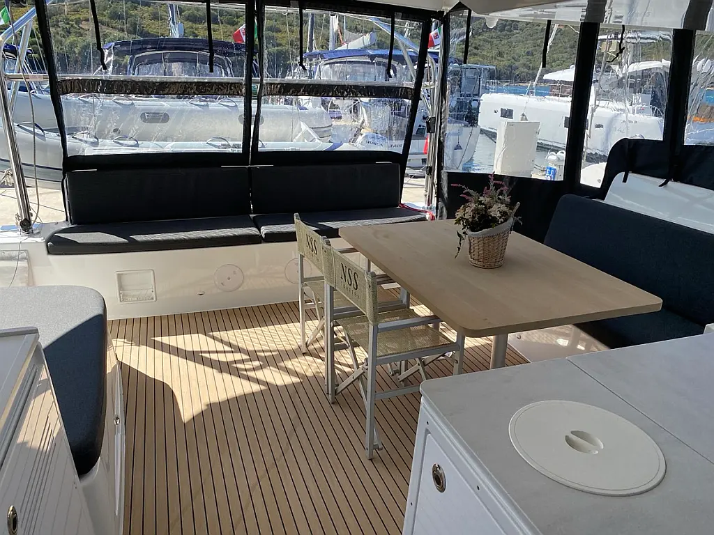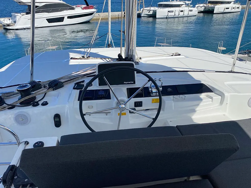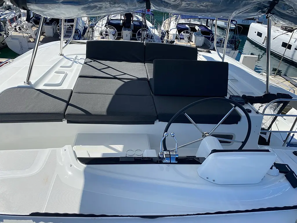 Cockpit-Kissen, Lautsprecher im Cockpit, Kaffeemaschine, Generator, Elektrische Toilette, Teak Cockpit, Beiboot, Bimini, Klimaanlage, Wassermacher