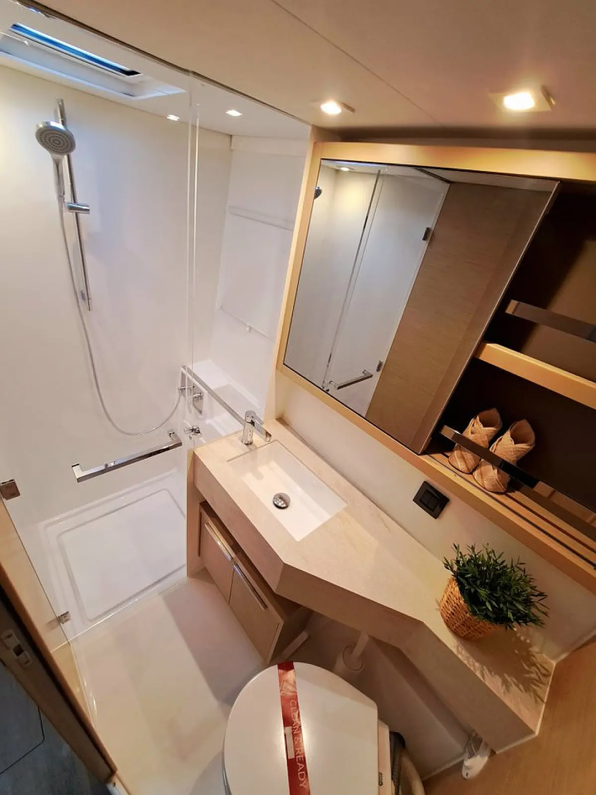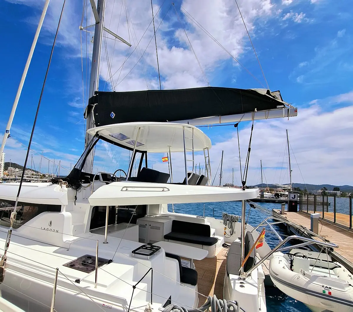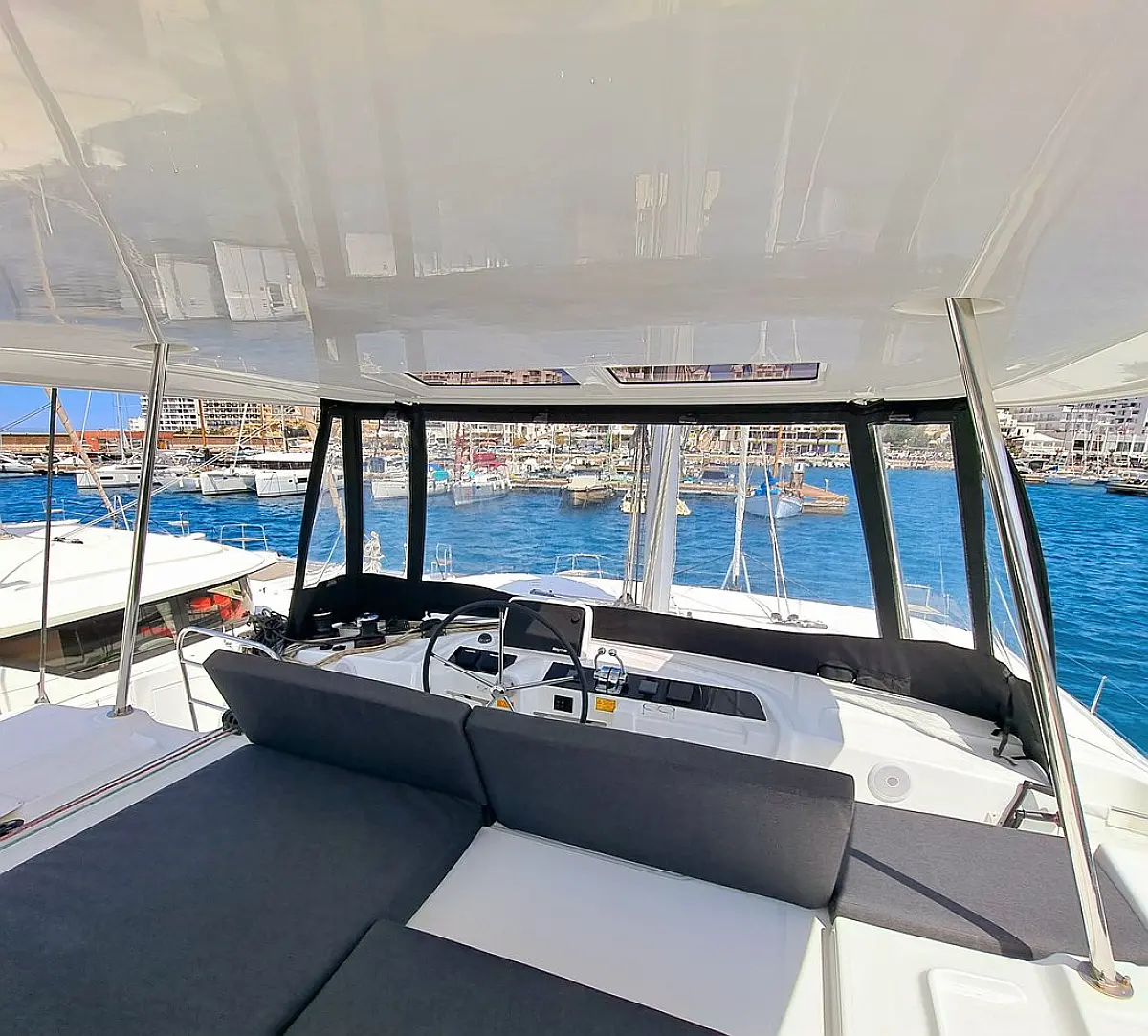 Beiboot, Inverter, Solar-Panele, Generator, Wassermacher, Klimaanlage, Lautsprecher im Cockpit, Elektrische Winch (Segel), Bimini, Cockpit-Kissen, Flybridge