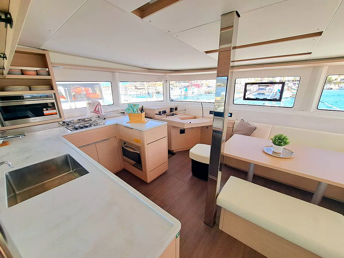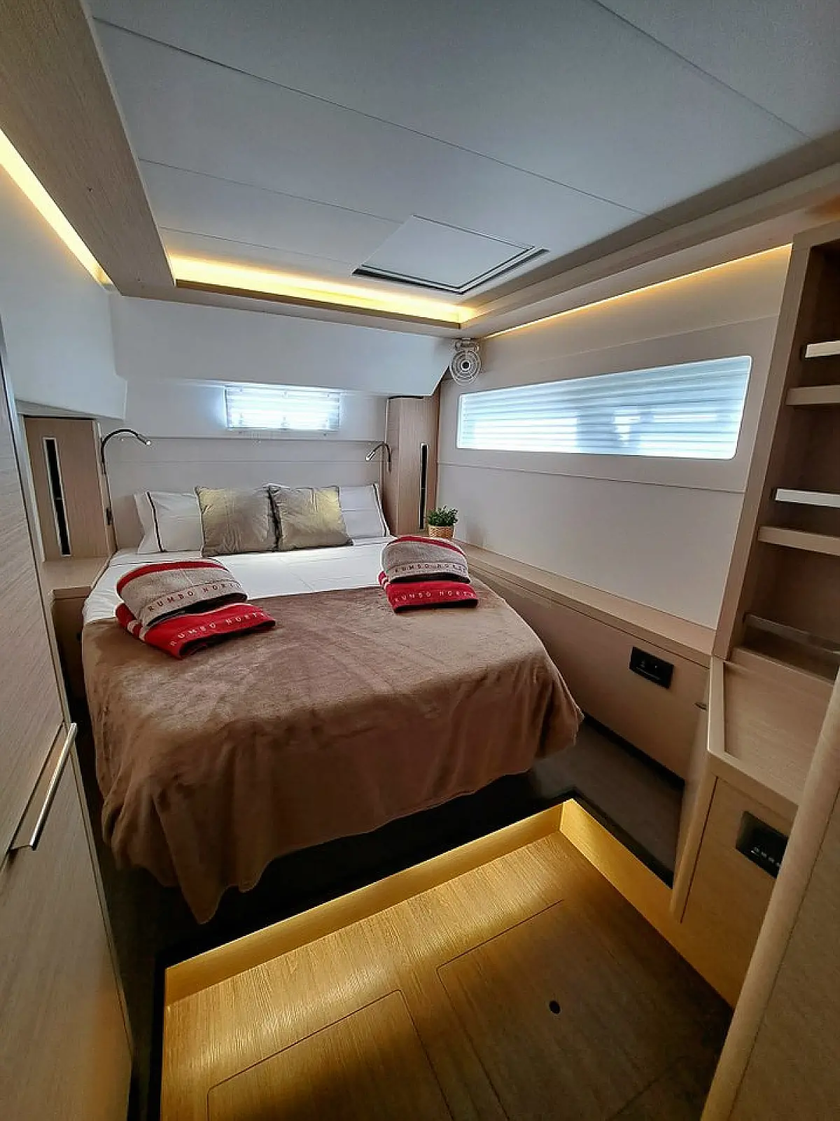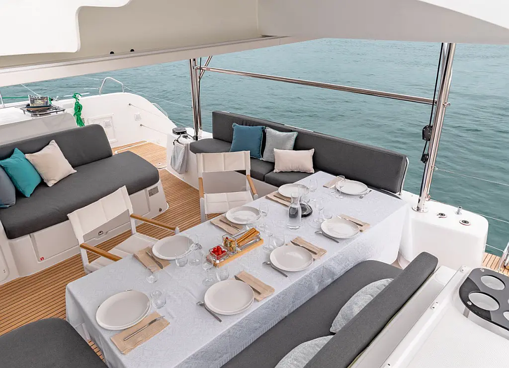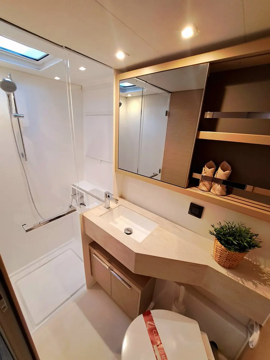 Beiboot, Inverter, Solar-Panele, Generator, Wassermacher, Klimaanlage, Lautsprecher im Cockpit, Elektrische Winch (Segel), Bimini, Cockpit-Kissen, Flybridge