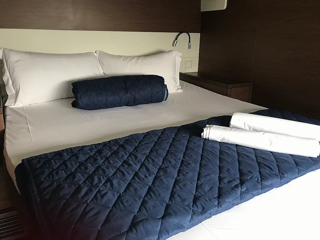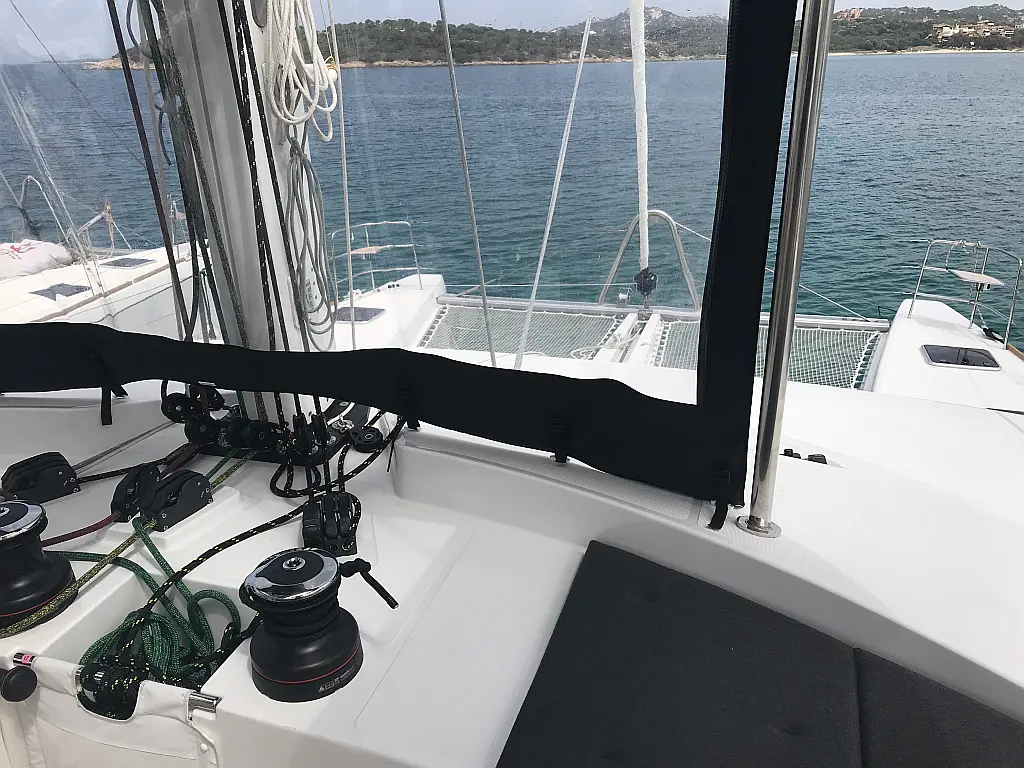 Lautsprecher im Cockpit, Außenbordmotor, Generator, Teak Cockpit, Beiboot, Kühlschrank, Bimini, Elektrische Toilette, Klimaanlage, Wassermacher, Sprayhood
