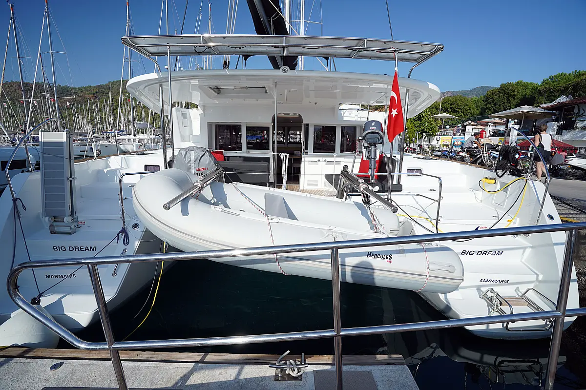 Beiboot, Elektrische Winch (Segel), Kühlschrank, Inverter, Generator, Heizung, Kaffeemaschine, Klimaanlage, Wassermacher, Elektrische Toilette, Eismaschine, Bimini, Solar-Panele