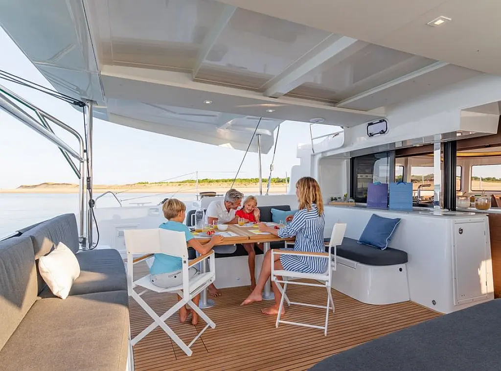 Elektrische Toilette, Lautsprecher im Cockpit, Heizung, Cockpit-Kissen, Kühlschrank, Klimaanlage, Wassermacher, Generator, Flybridge, Solar-Panele, Wi-Fi und Internet, Beiboot, Elektrische Winch (Segel), Bimini, Kaffeemaschine, Inverter