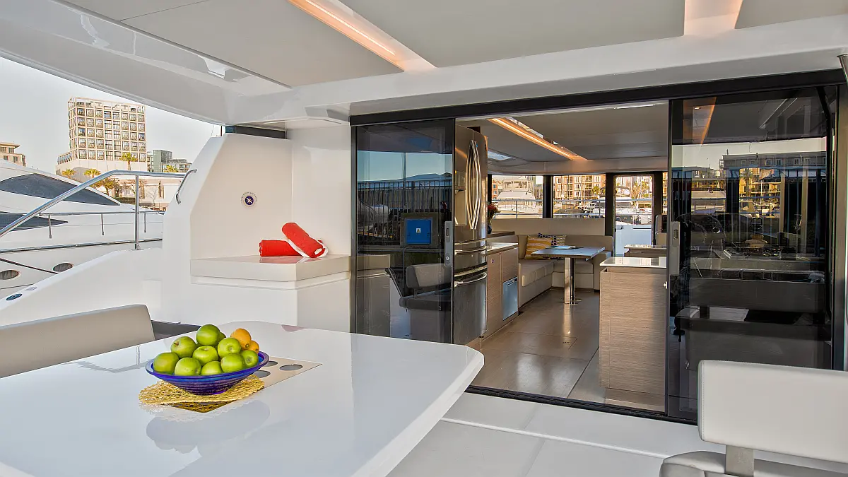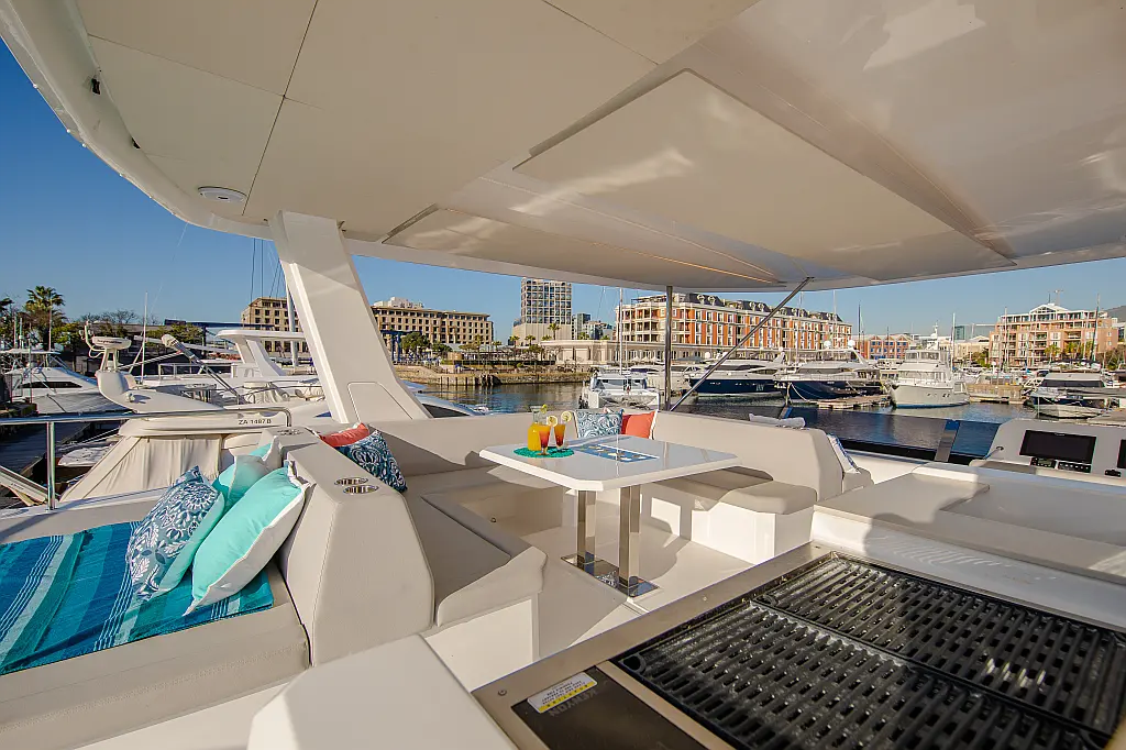 Bimini, Grill im Cockpit, Lautsprecher im Cockpit, Solar-Panele, Kühlschrank
