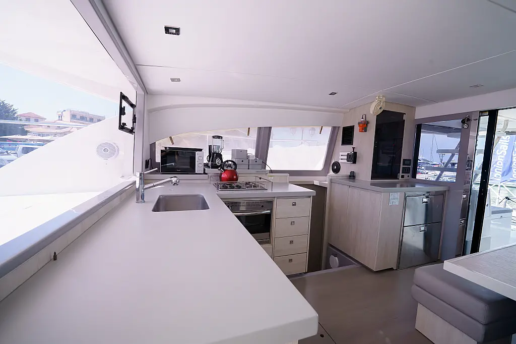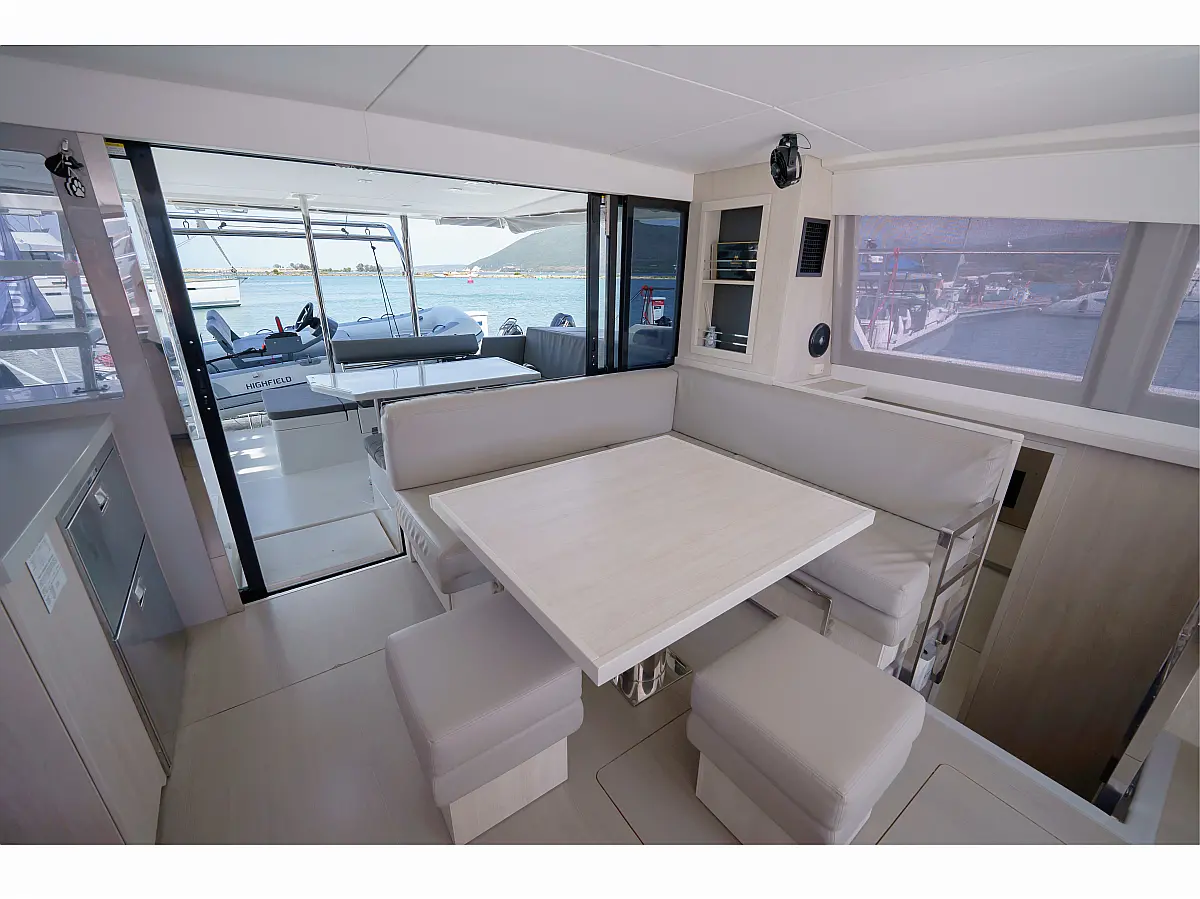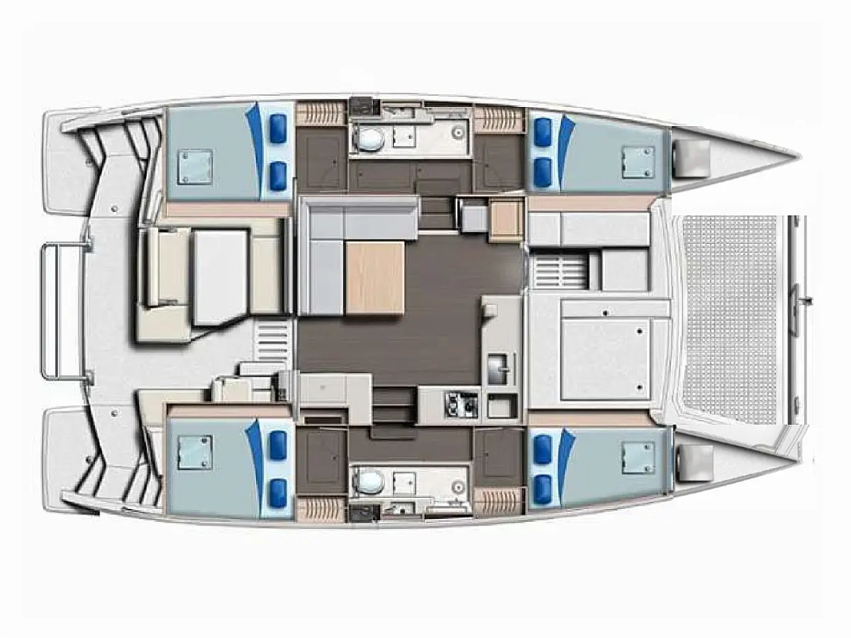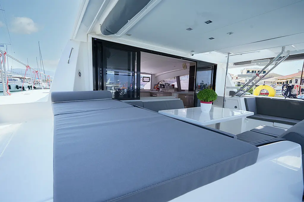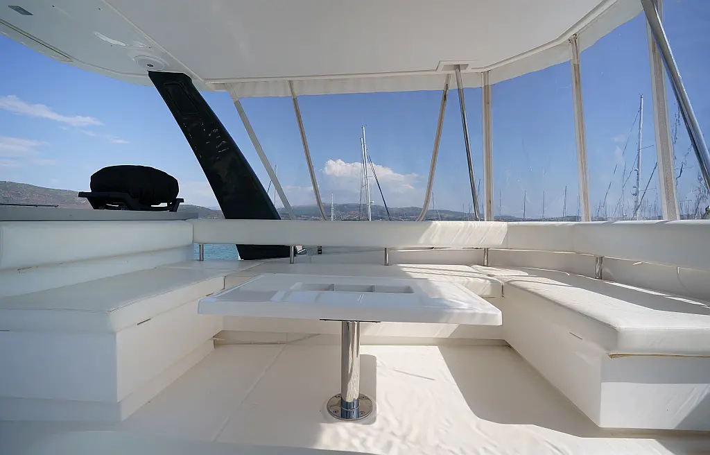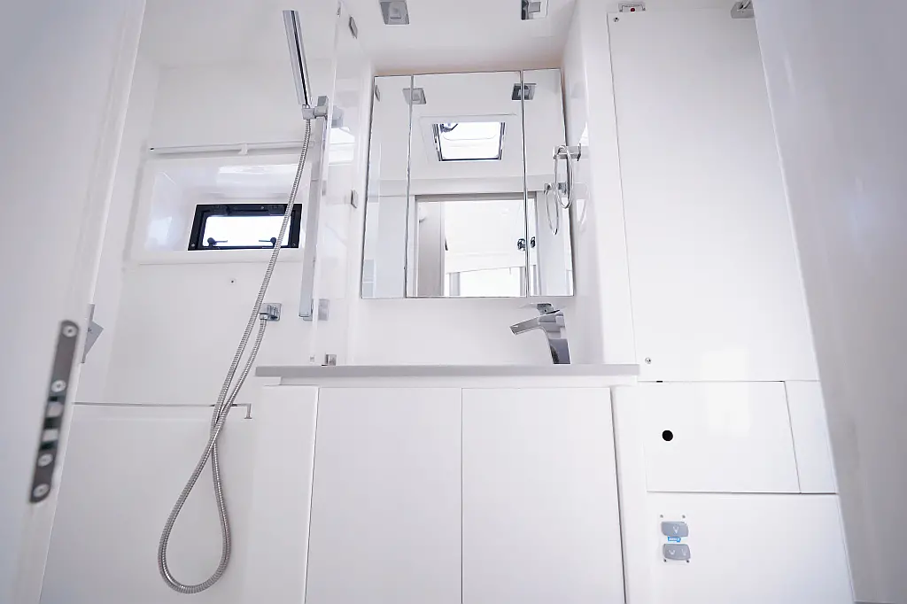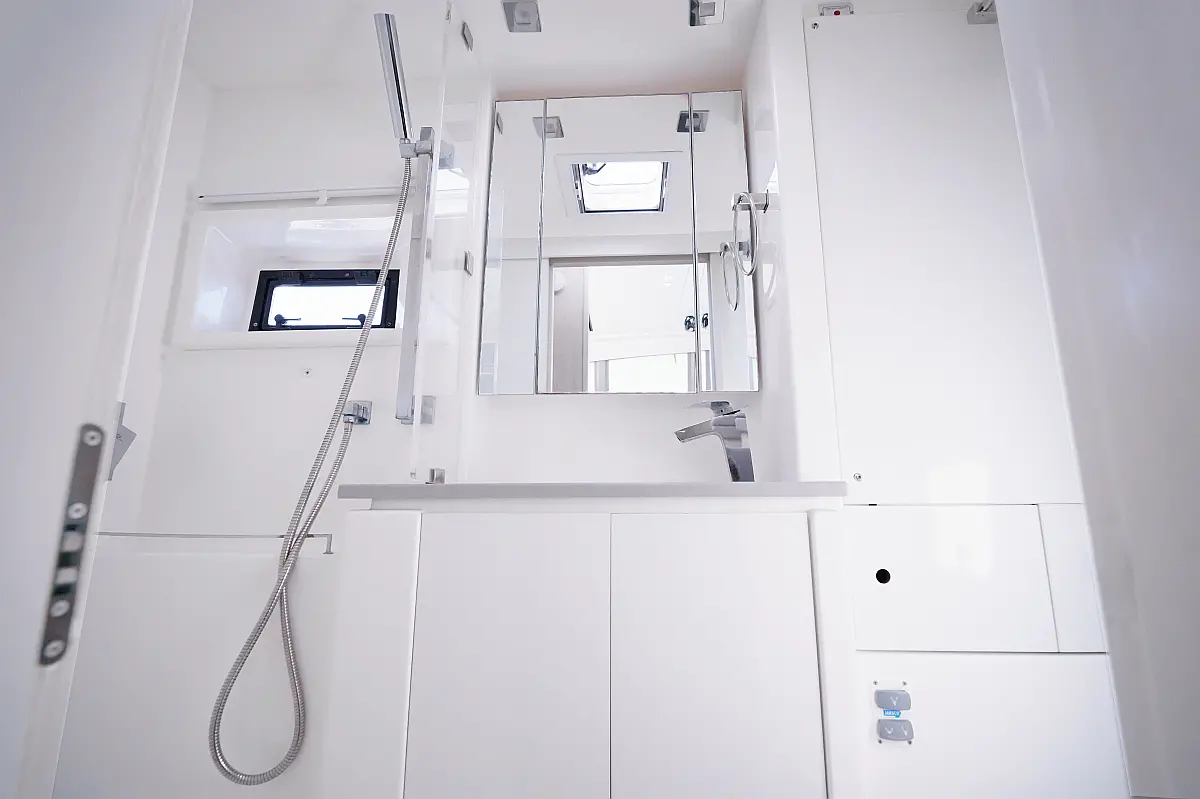 Fäkalientank, Bimini, Generator, Elektrische Toilette, Klimaanlage, Wassermacher, Cockpit-Kissen, Beiboot, Sprayhood, Badeplattform, Teak Cockpit, Solar-Panele