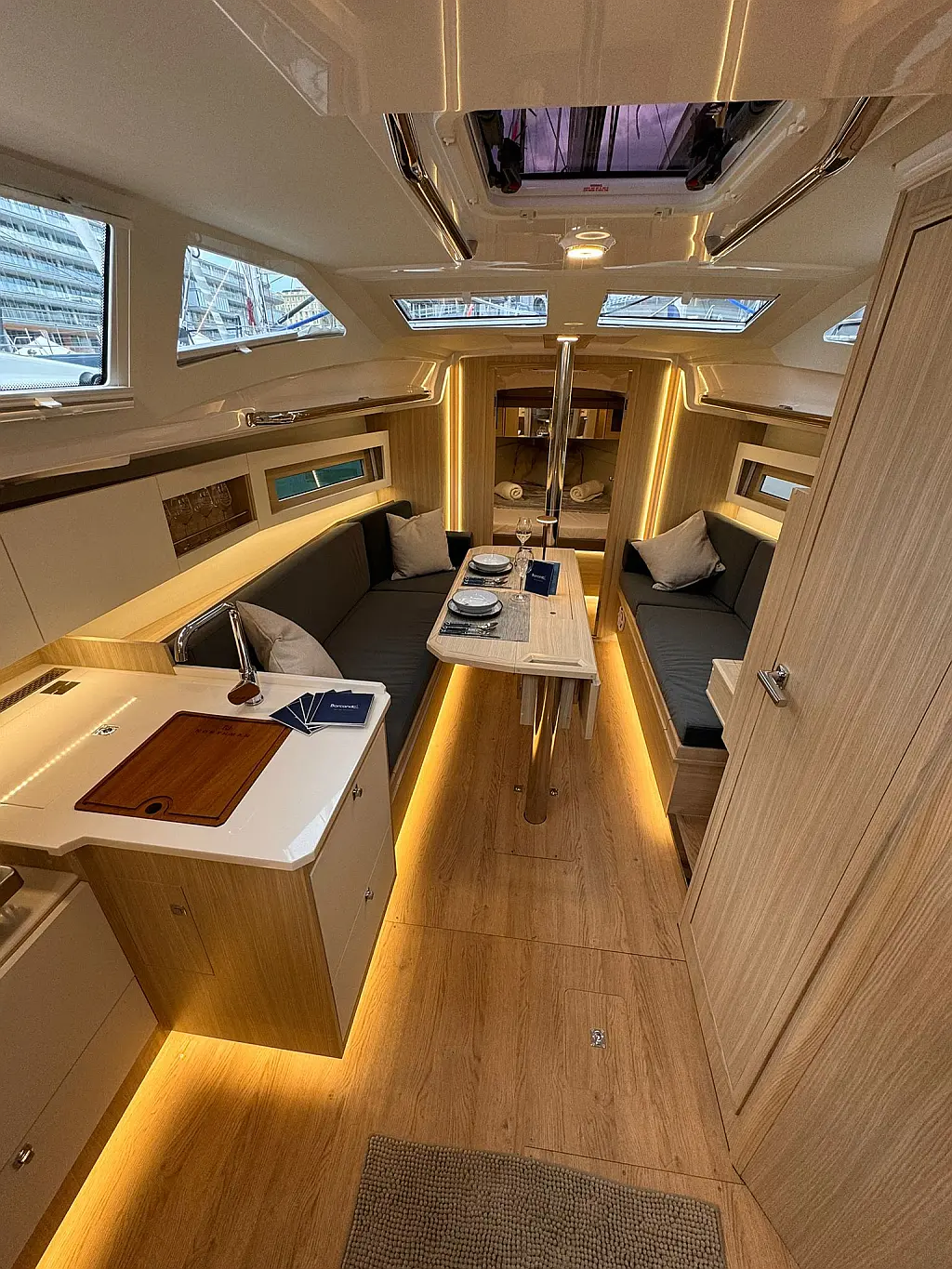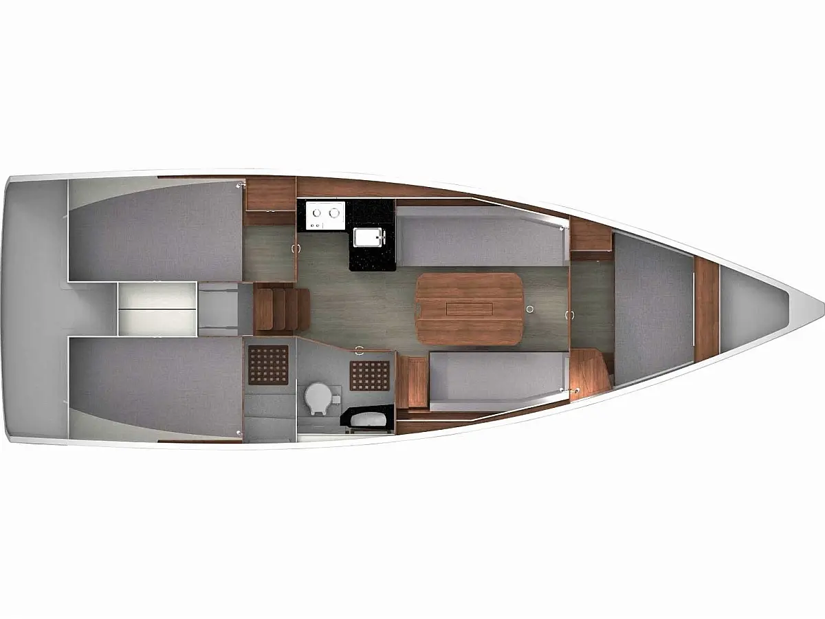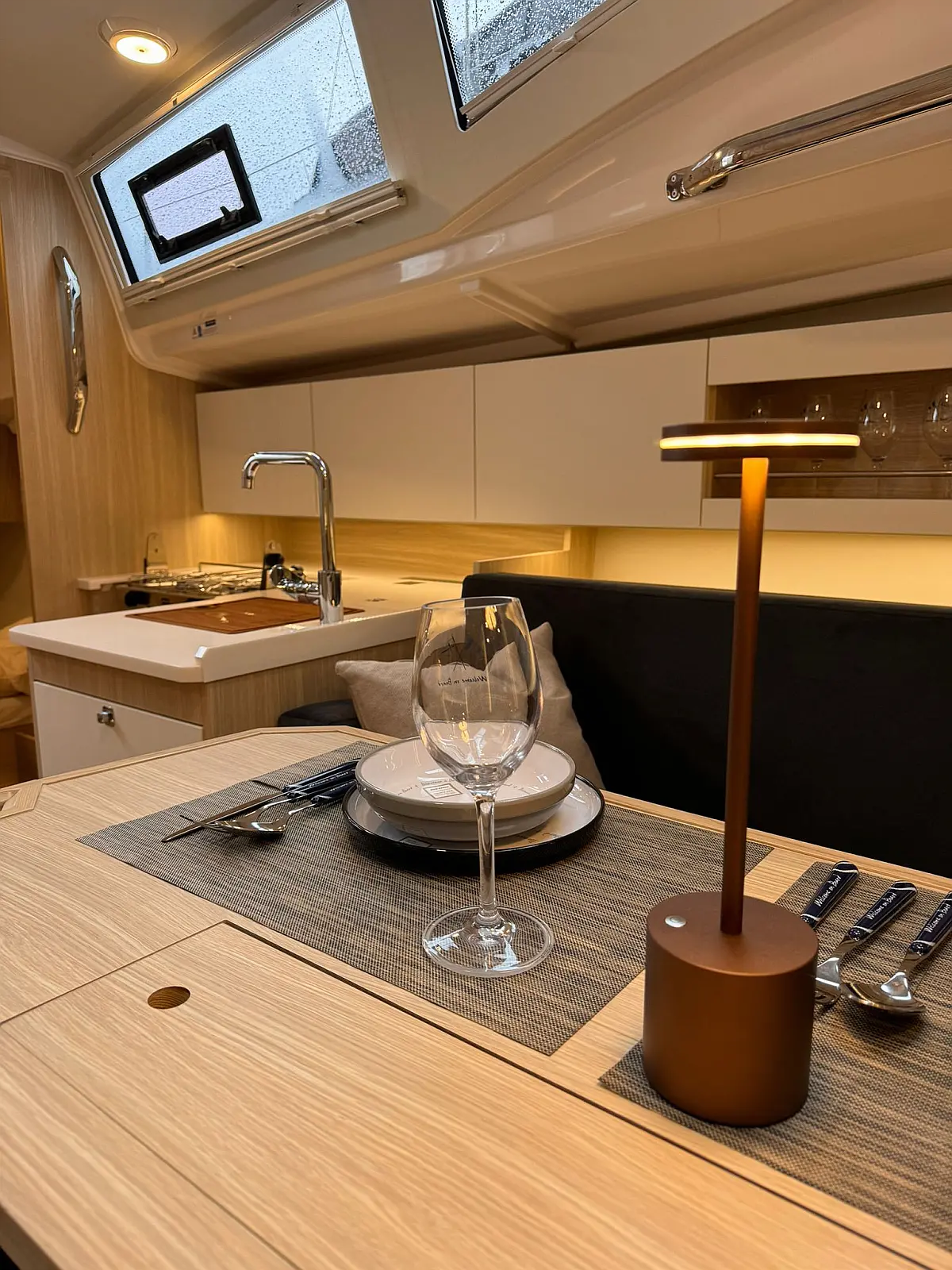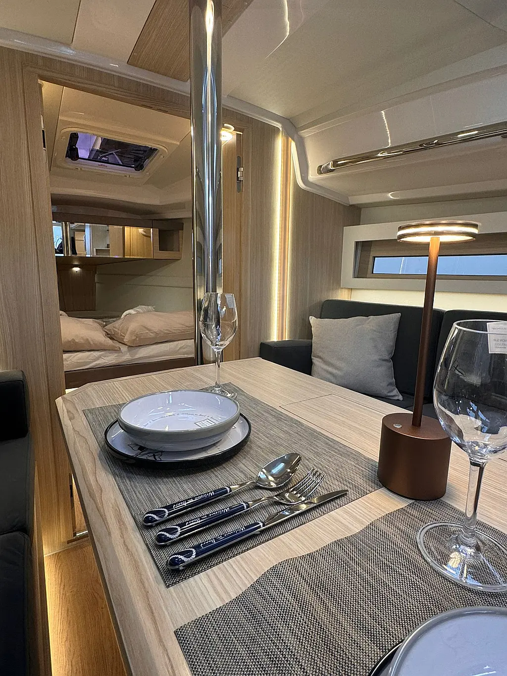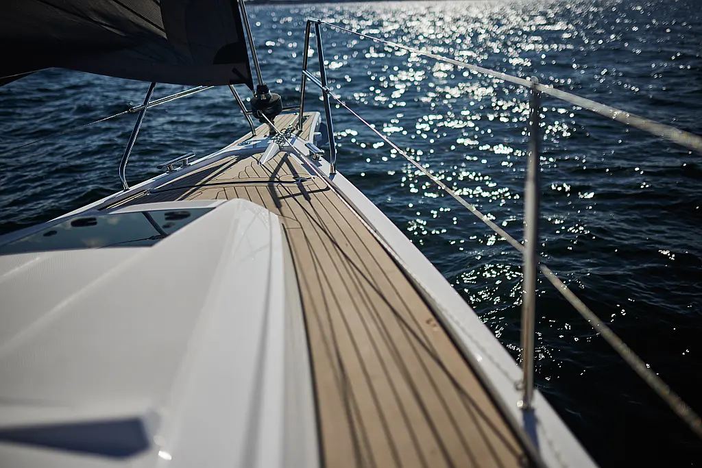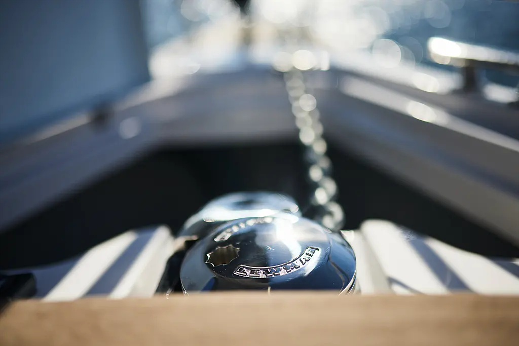 Teakdeck, Badeplattform, Lautsprecher im Cockpit, Sprayhood, Cockpit-Kissen, Elektrische Toilette, Beiboot, Teak Cockpit, Kühlschrank, Elektrische Winch (Segel), Inverter, Außenbordmotor