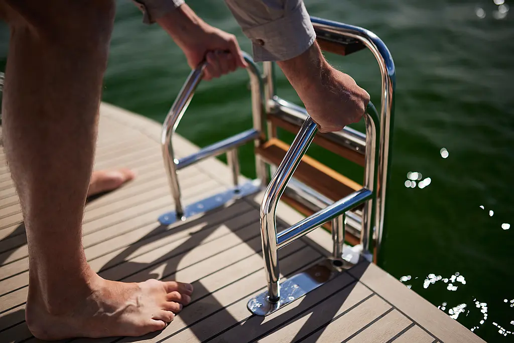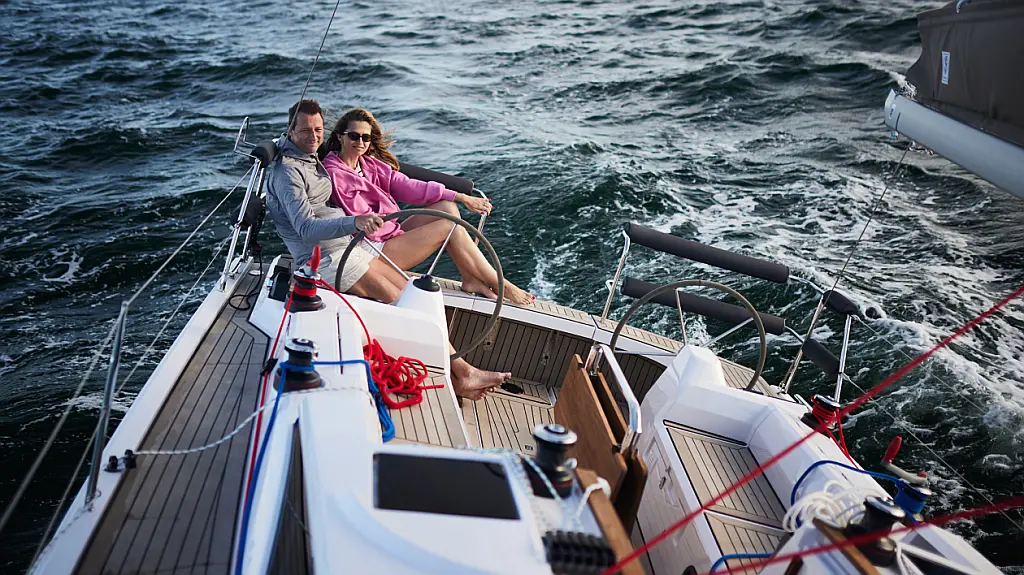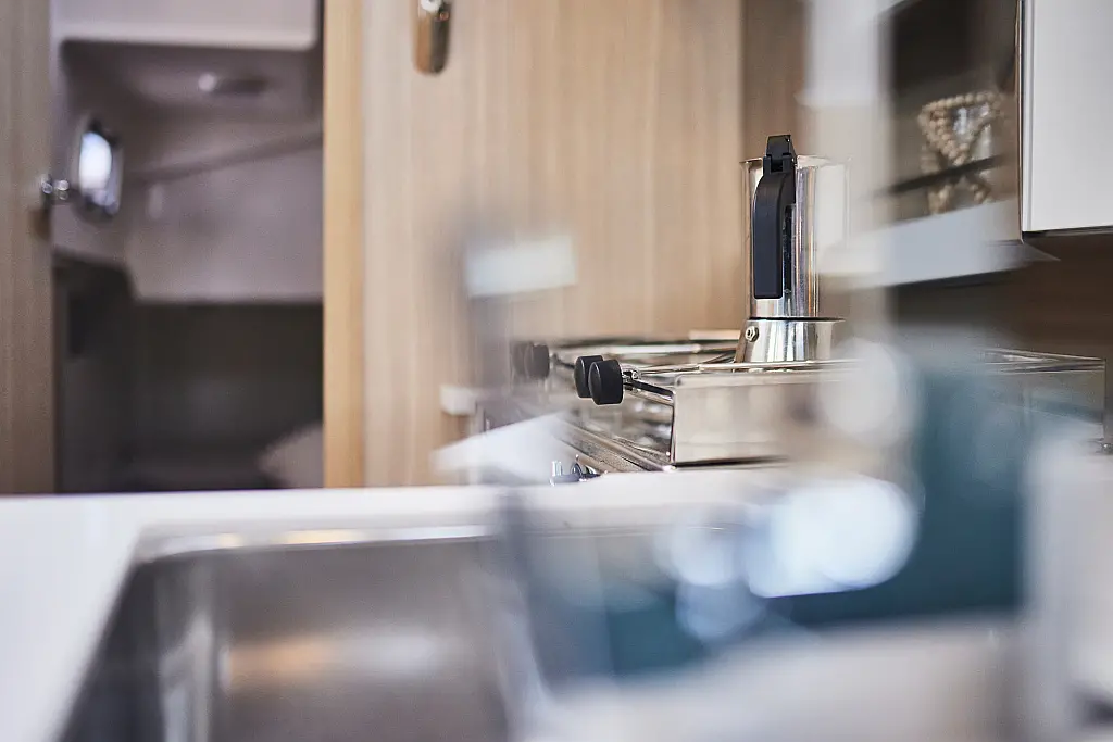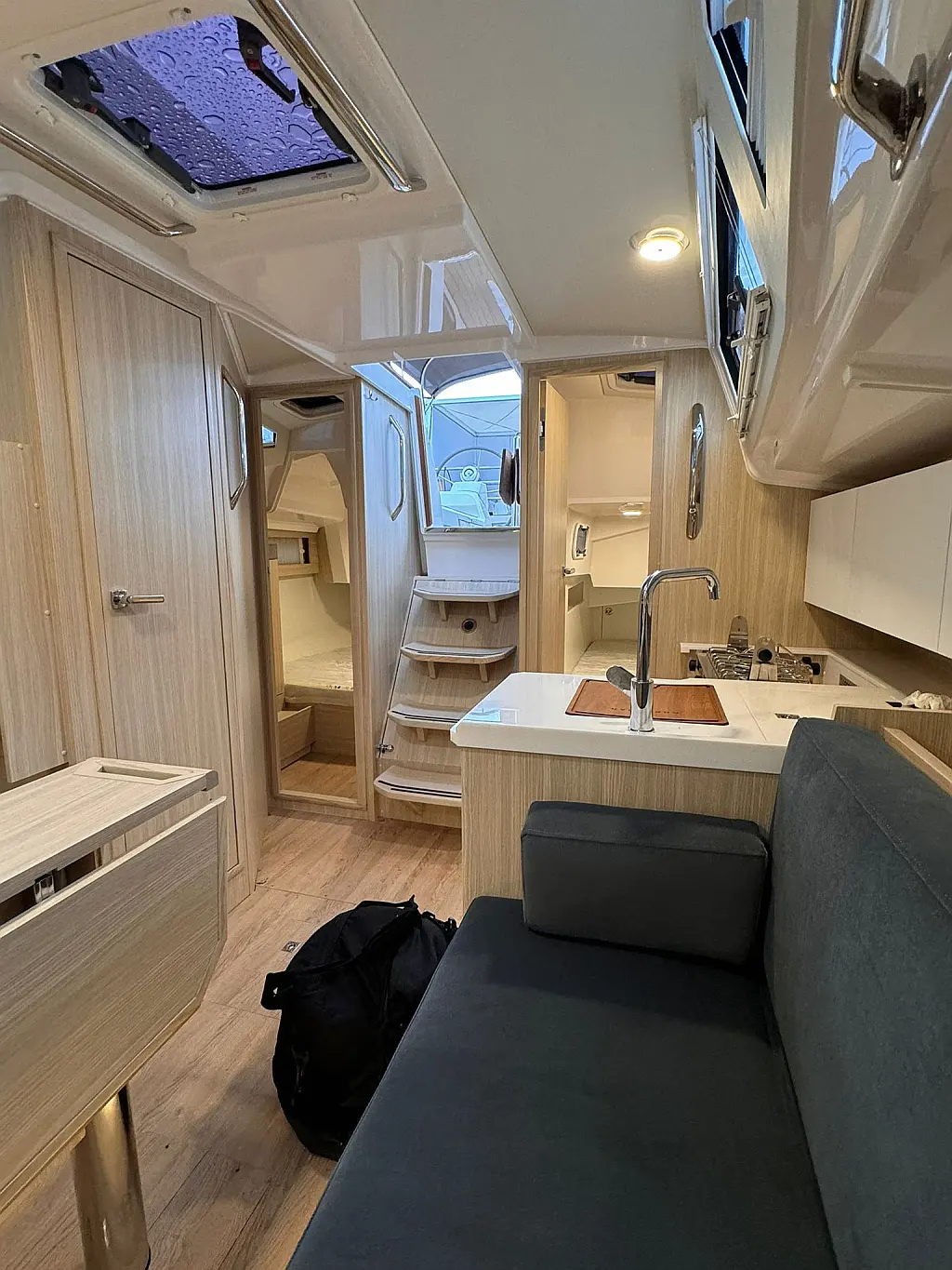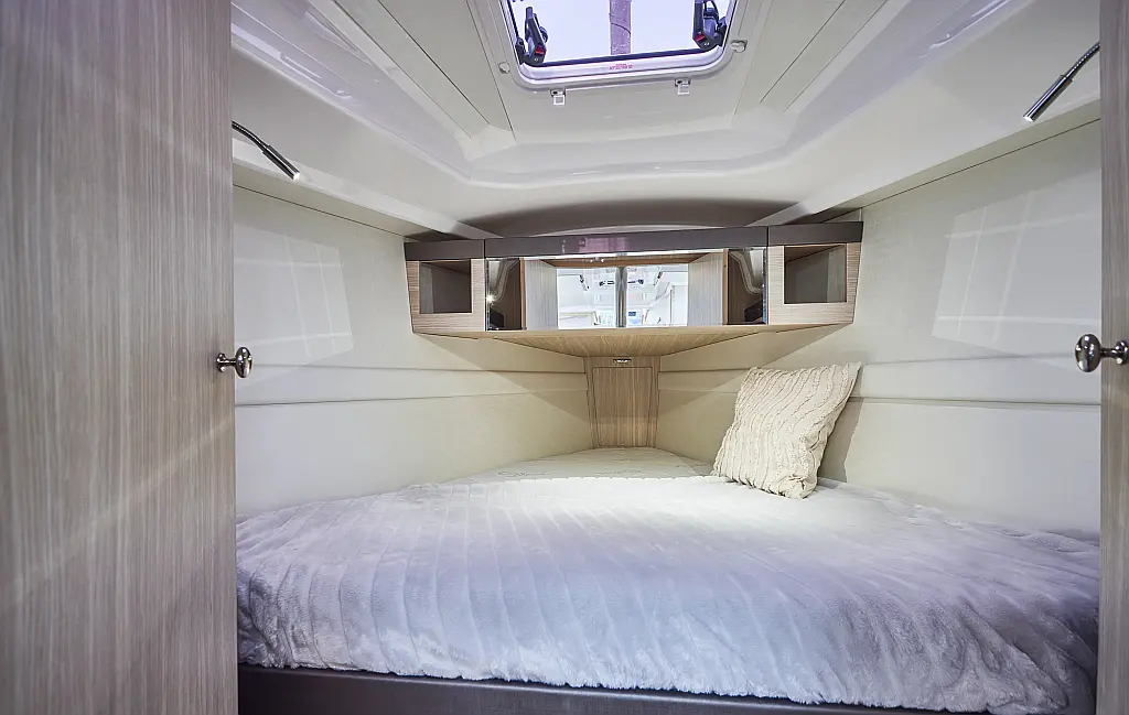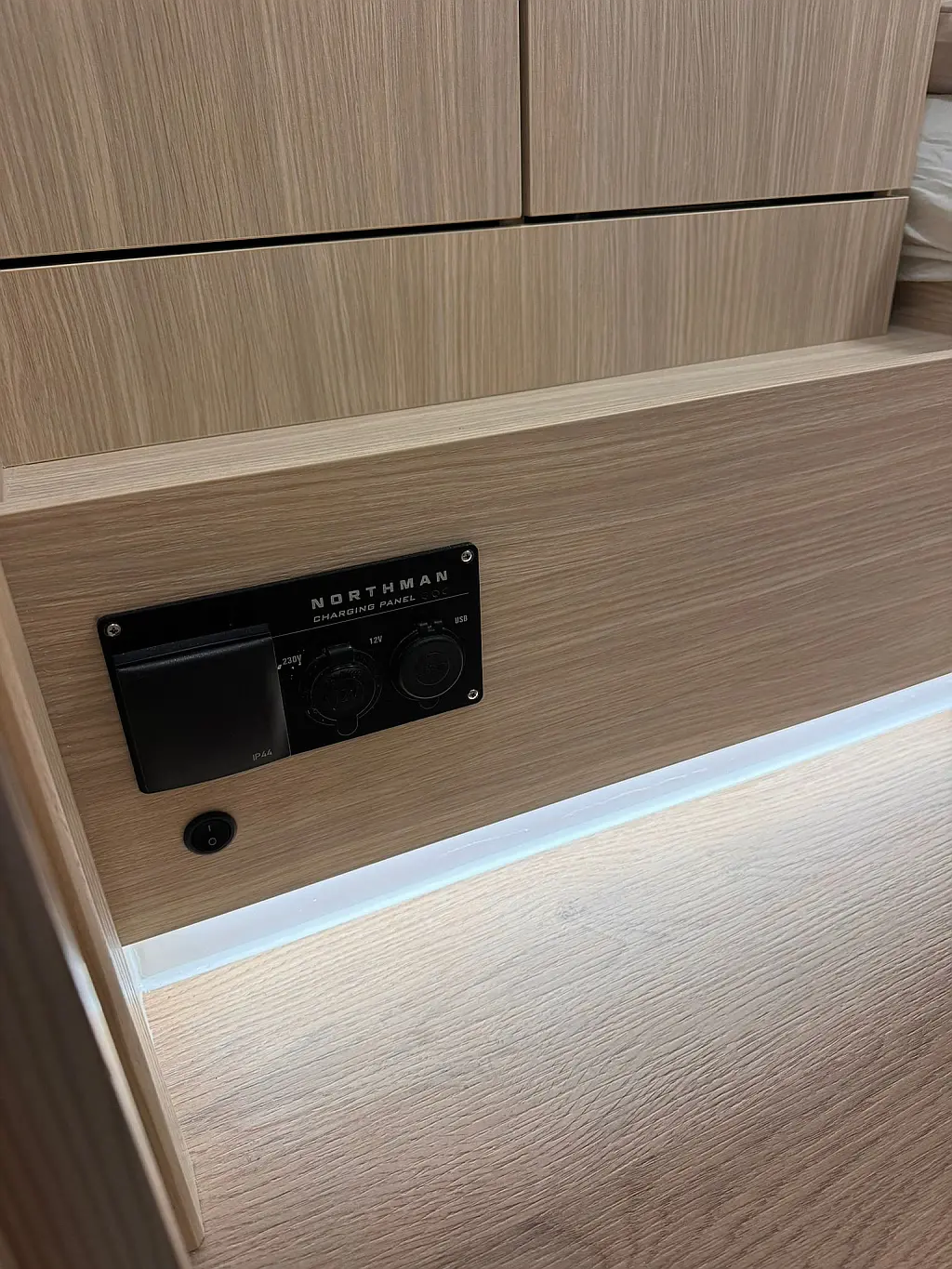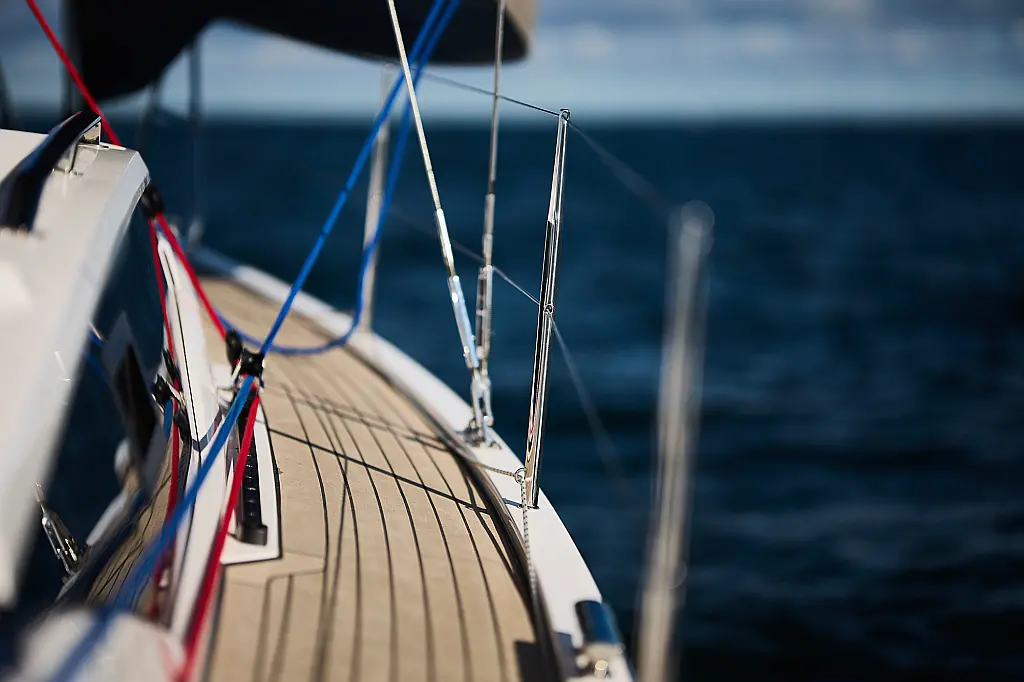 Teakdeck, Badeplattform, Lautsprecher im Cockpit, Sprayhood, Cockpit-Kissen, Elektrische Toilette, Beiboot, Teak Cockpit, Kühlschrank, Elektrische Winch (Segel), Inverter, Außenbordmotor