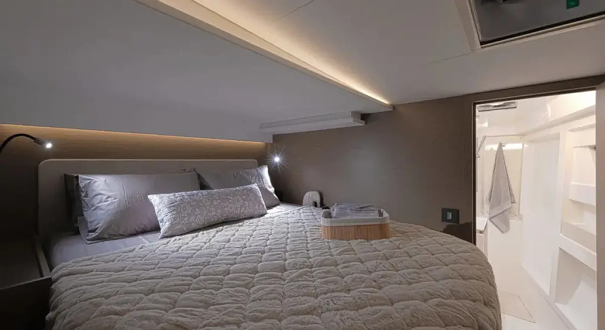Grill im Cockpit, Cockpit-Kissen, Elektrische Winch (Segel), Bimini, Inverter, Klimaanlage, Solar-Panele, Elektrische Toilette, Lautsprecher im Cockpit, Generator, Wassermacher, Kühlschrank