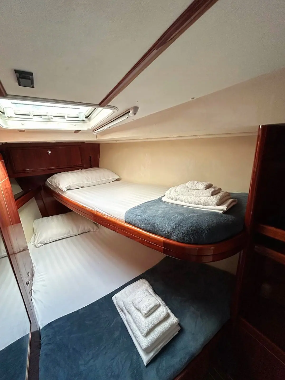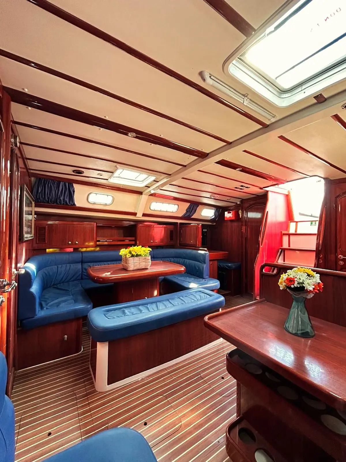Klimaanlage, Beiboot, Lautsprecher im Cockpit, Heizung, Bimini, Teakdeck, Kühlschrank