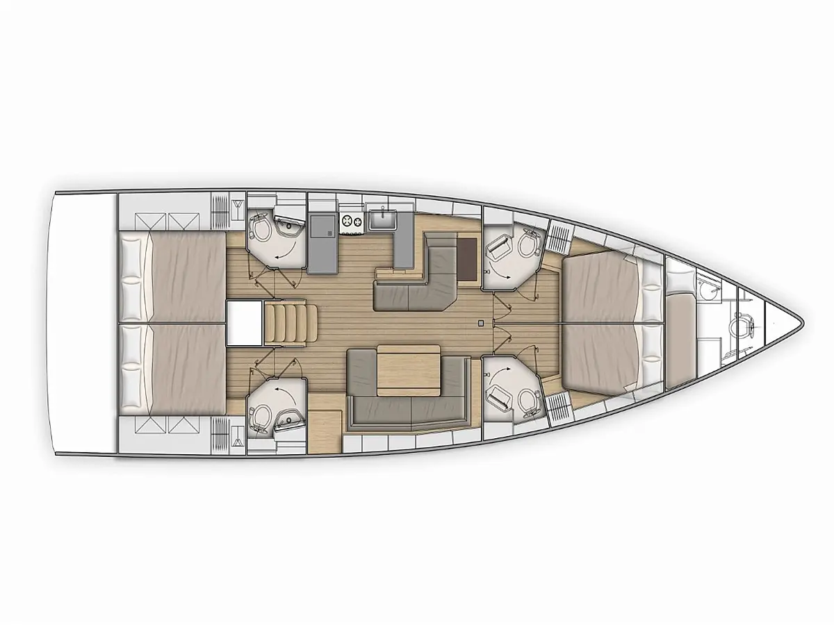 Kühlschrank, Wassermacher, Elektrische Toilette, Kaffeemaschine, Beiboot, Teak Cockpit, Elektrische Winch (Segel), Sprayhood, Klimaanlage, Generator, Solar-Panele