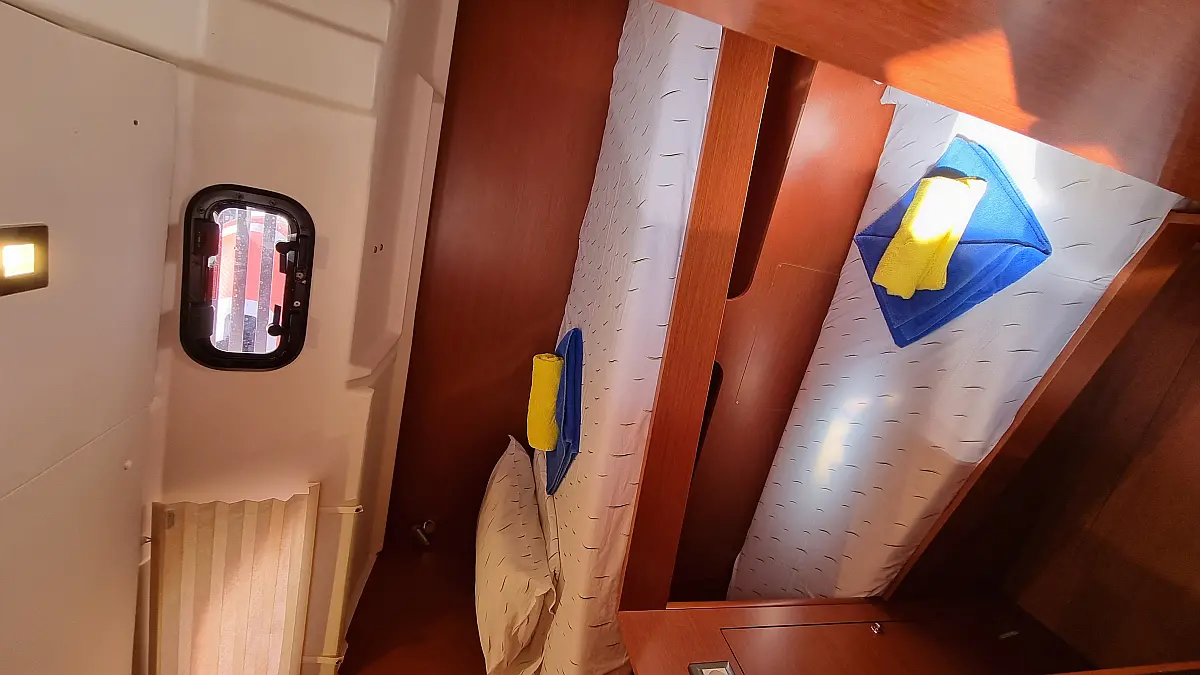 Eismaschine, Kühlschrank, Bimini, Sprayhood, Außenbordmotor, Elektrische Winch (Segel), Kaffeemaschine, Generator, Teak Cockpit, Klimaanlage, Heizung, Cockpit-Kissen